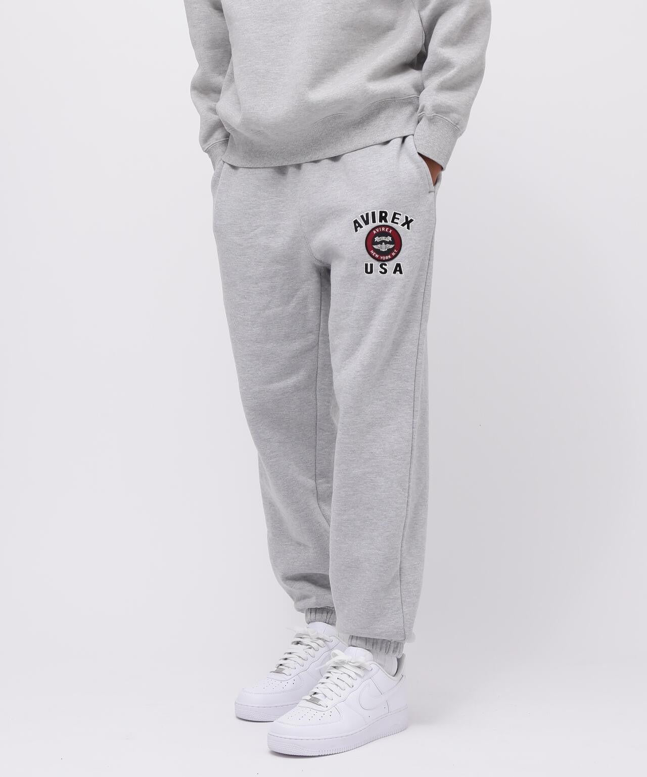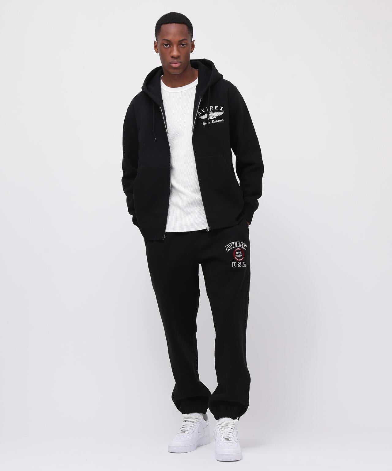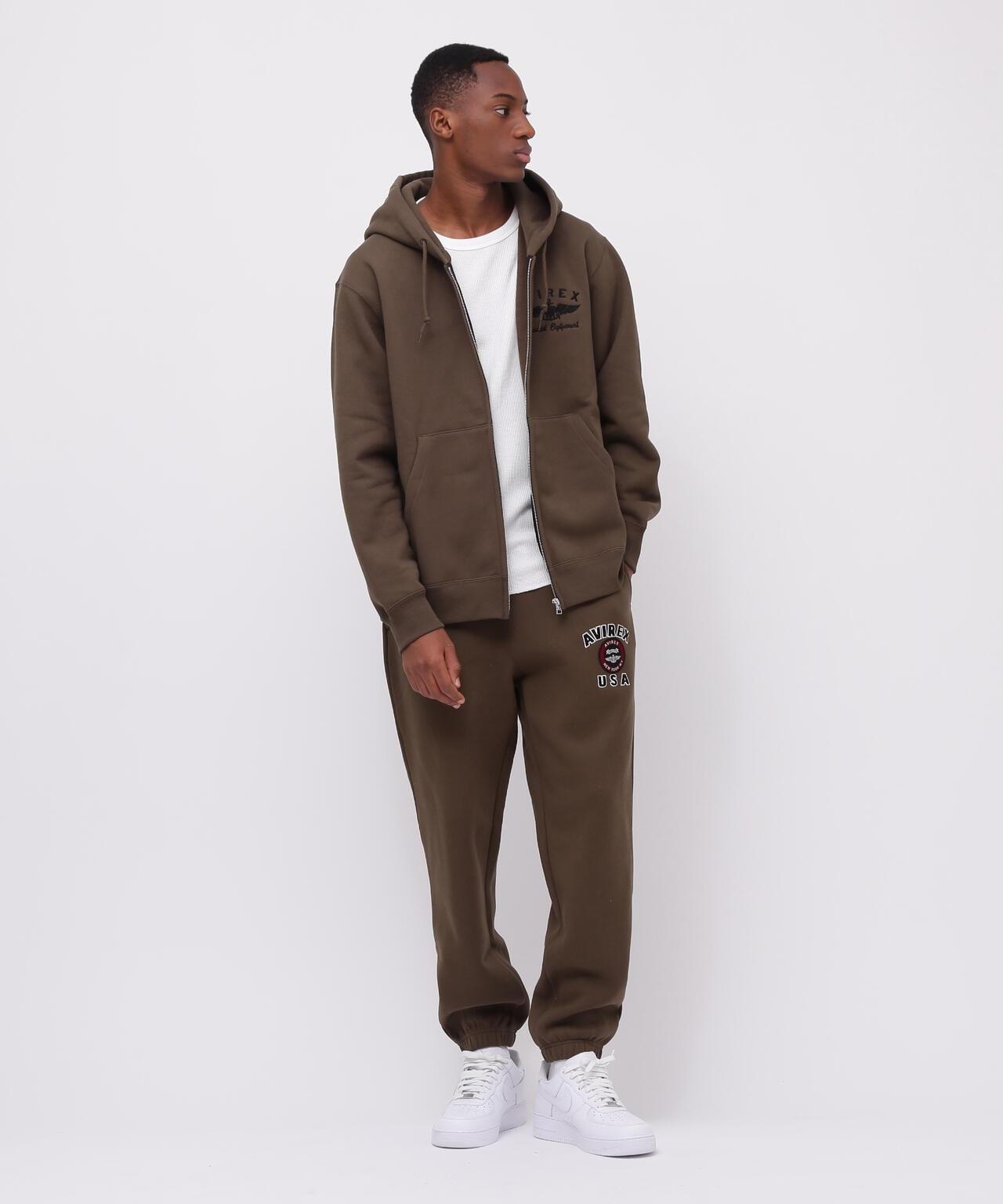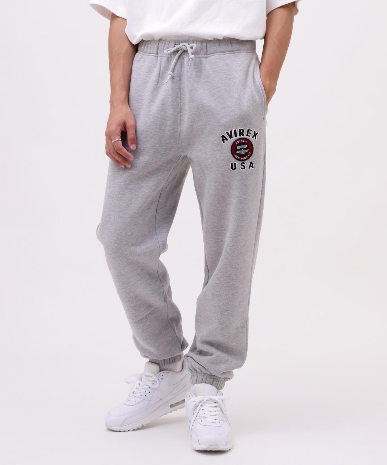 AVIREX VARSITY "是一個以 "美好的老美 "為主題的運動系列,其獨特的色彩和原創的圖案設計受到以 HIPHOP 圈為主的當紅藝術家和運動員的青睞。在美國,它已發展成為年輕人的時尚品牌。AVIREX VARSITY 服裝經典而不褪色,不分性別和國籍,繼續受到所有崇尚美國英雄精神的人們的支持。<產品詳情> - 厚度適中,65% 棉,35% 滌綸面料運動褲,左前方繡有標誌性品牌徽標,黑色,駝色。