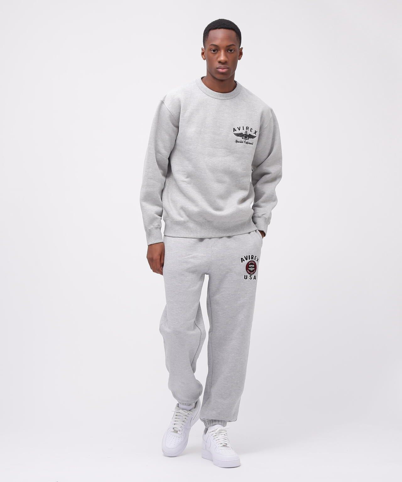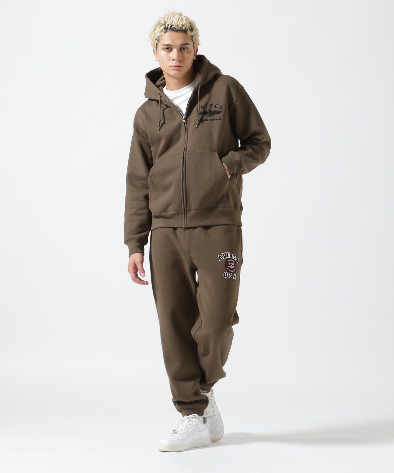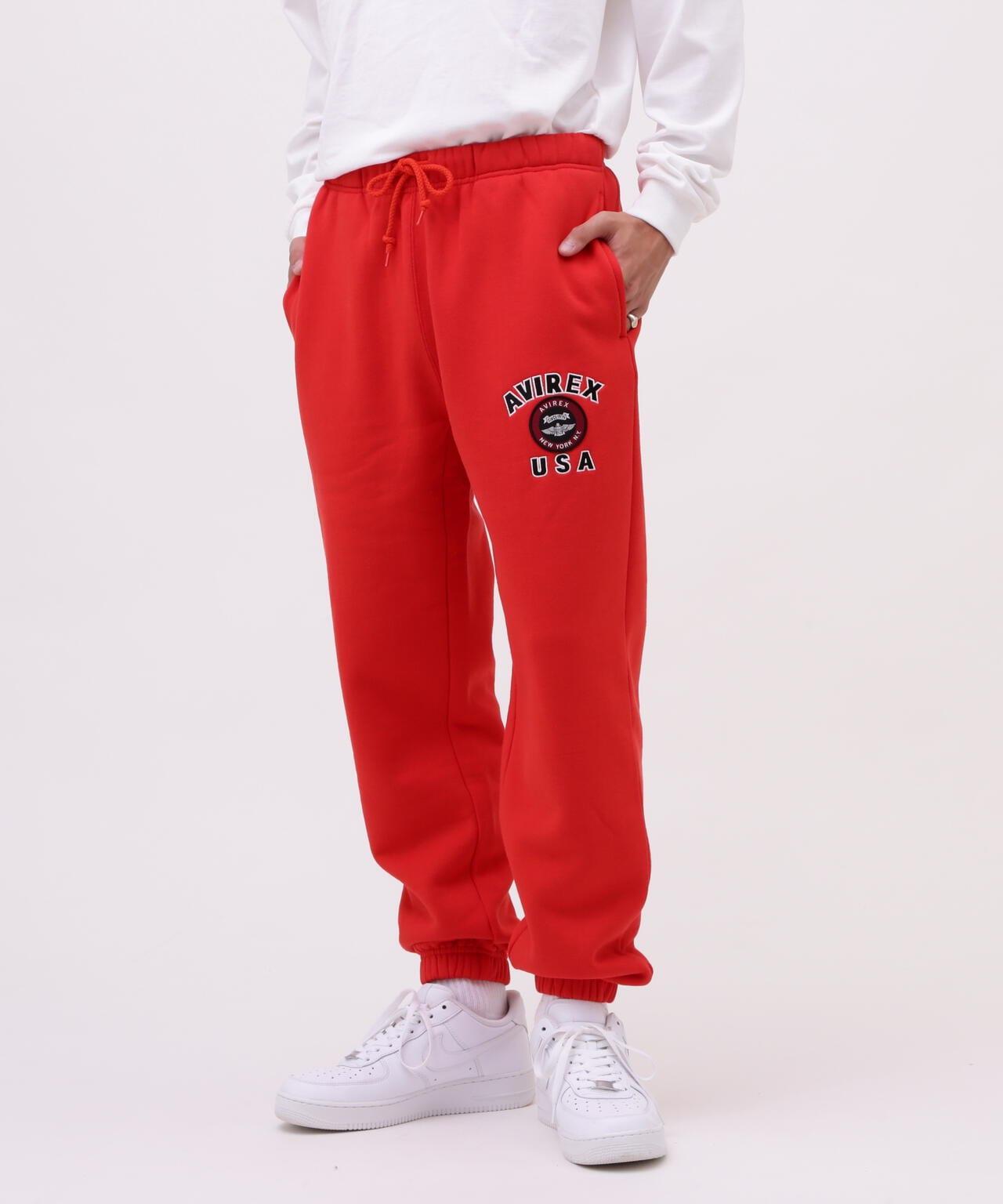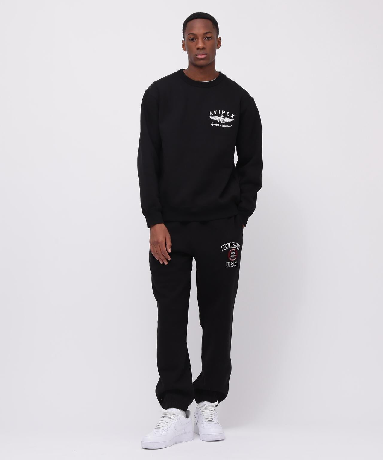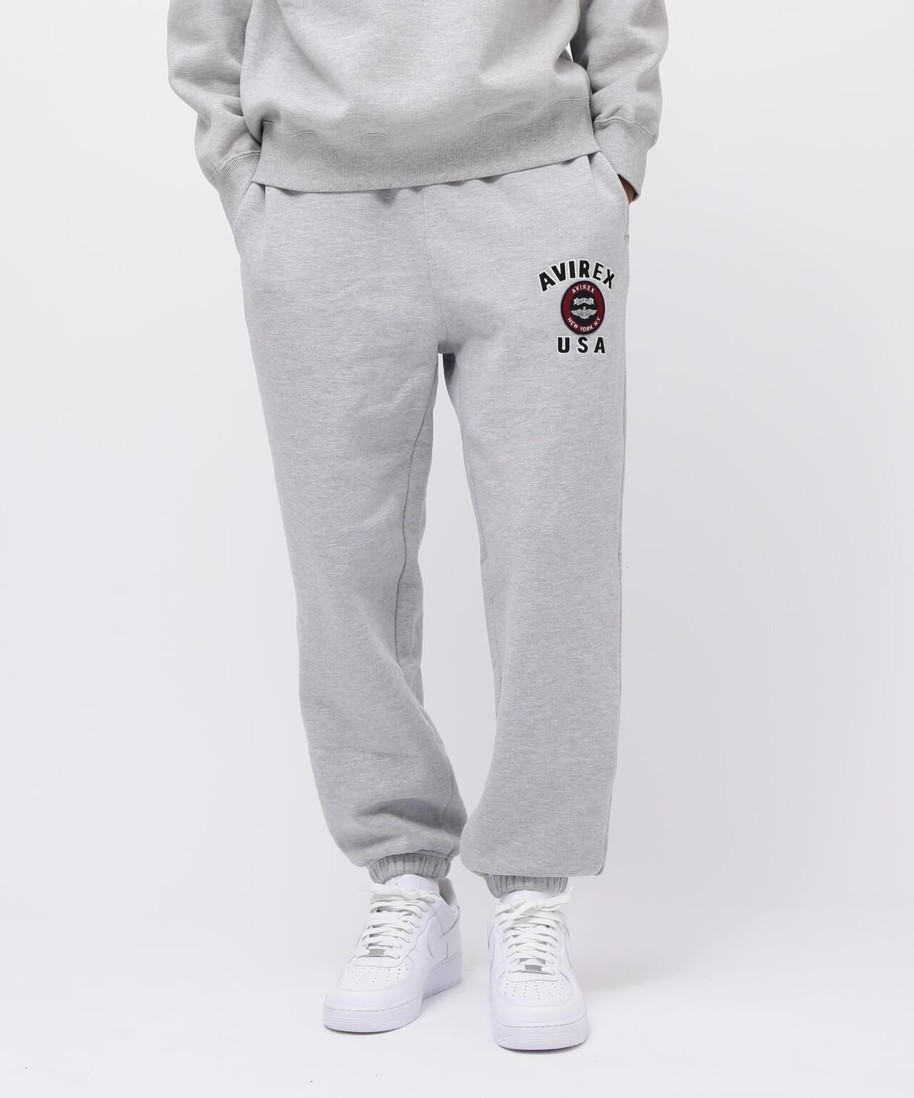 AVIREX VARSITY "是一個以 "美好的老美 "為主題的運動系列,其獨特的色彩和原創的圖案設計受到以 HIPHOP 圈為主的當紅藝術家和運動員的青睞。在美國,它已發展成為年輕人的時尚品牌。AVIREX VARSITY 服裝經典而不褪色,不分性別和國籍,繼續受到所有崇尚美國英雄精神的人們的支持。<產品詳情> - 厚度適中,65% 棉,35% 滌綸面料運動褲,左前方繡有標誌性品牌徽標,黑色,駝色。