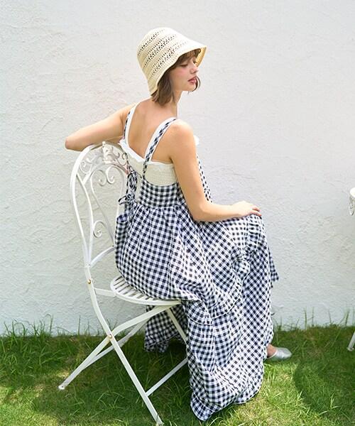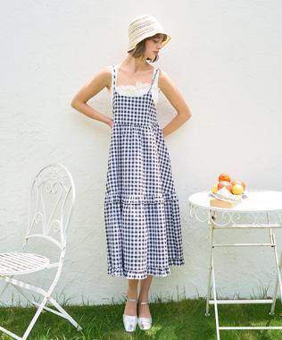 格子吊帶連衣裙【韓國時尚】