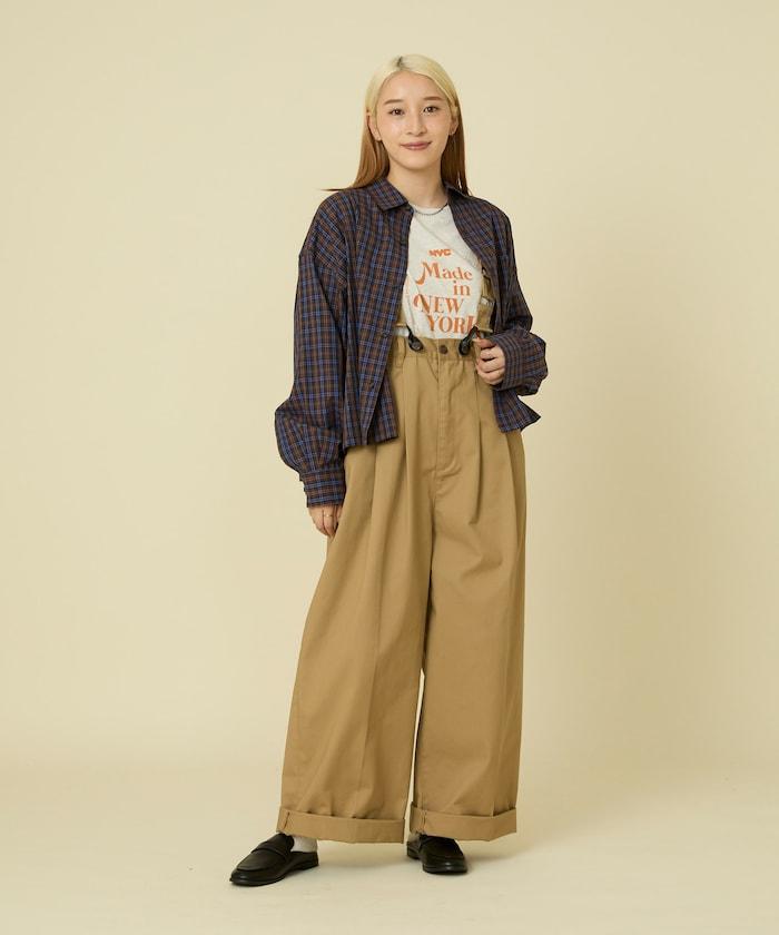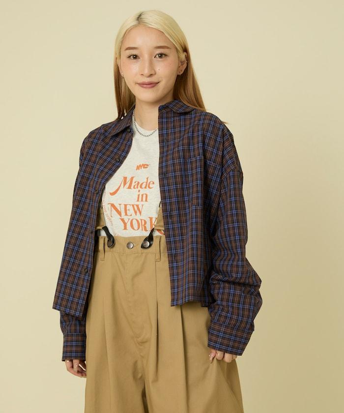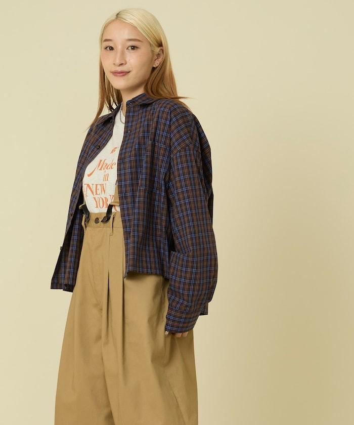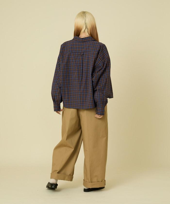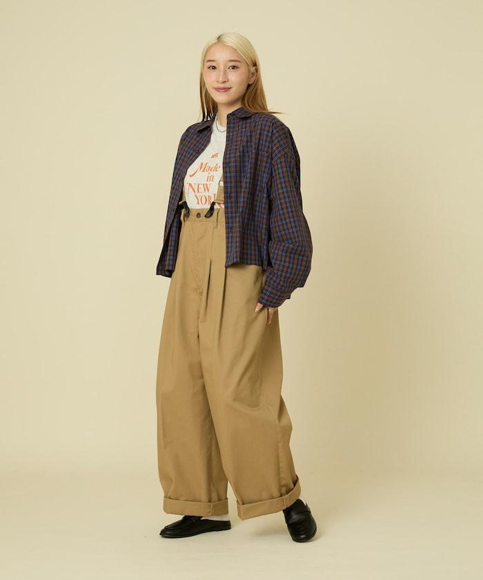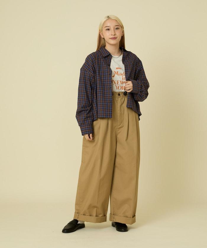 短款襯衫與時下流行的寬廓形長褲相得益彰。