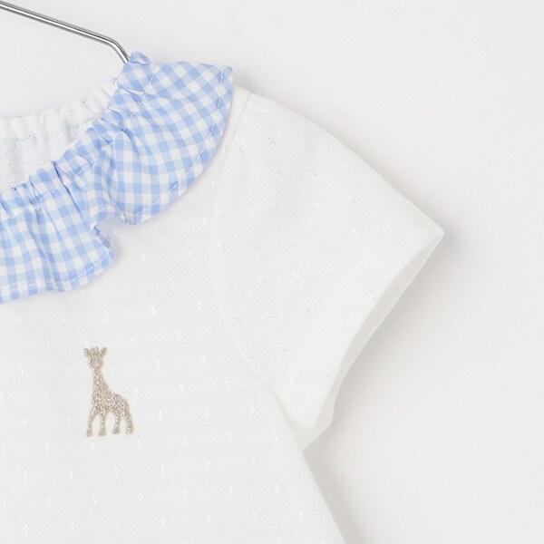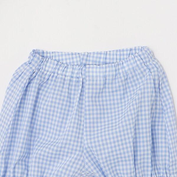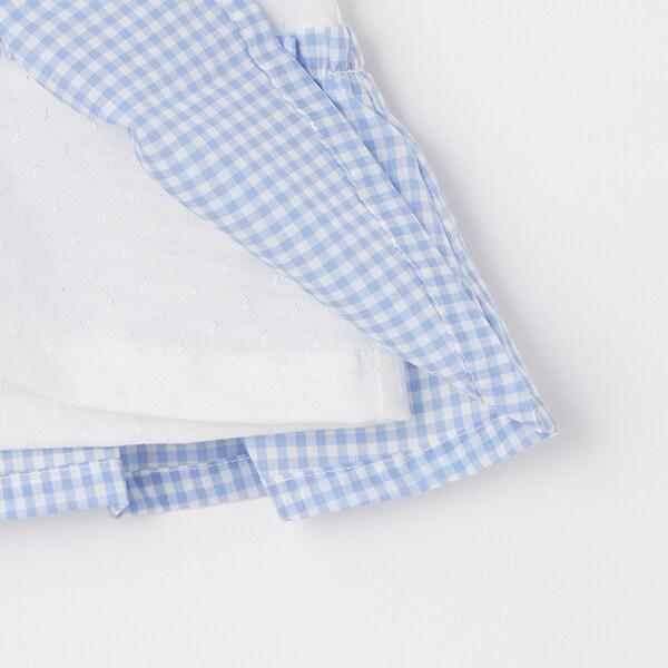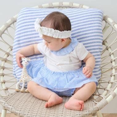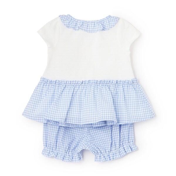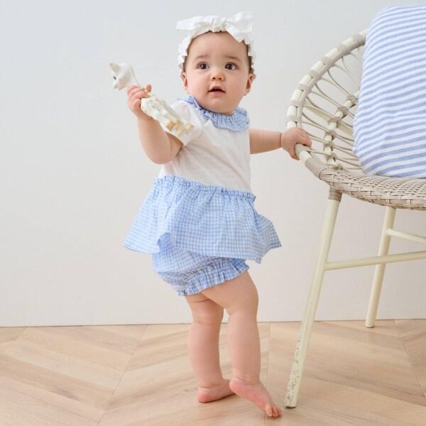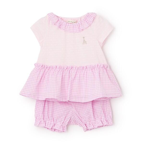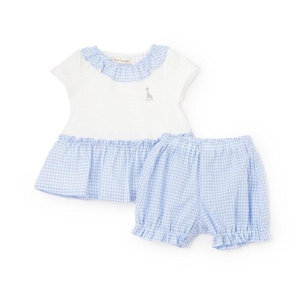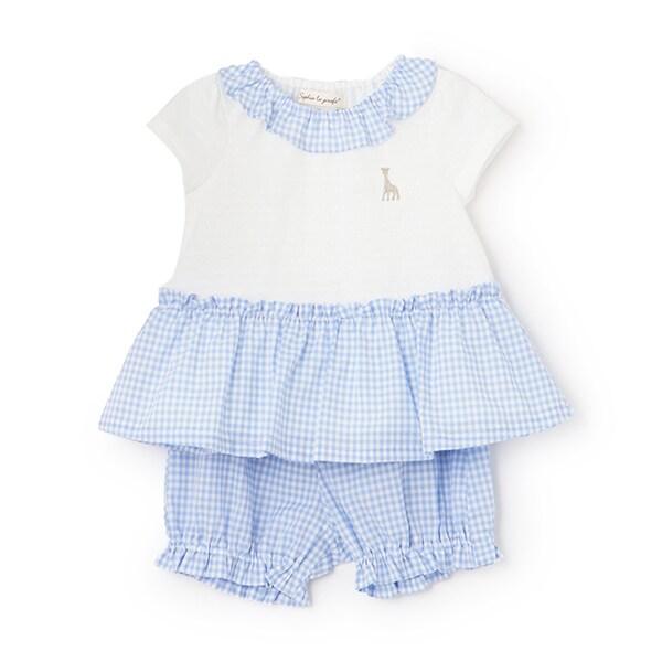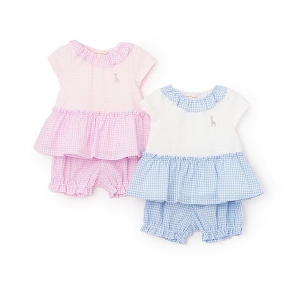 這款嬰兒套裝採用清新可愛的格子圖案。