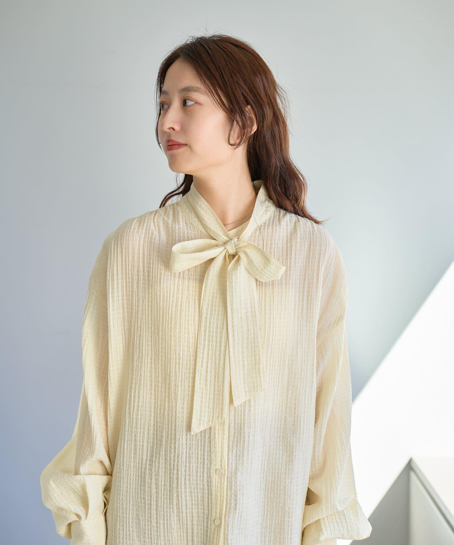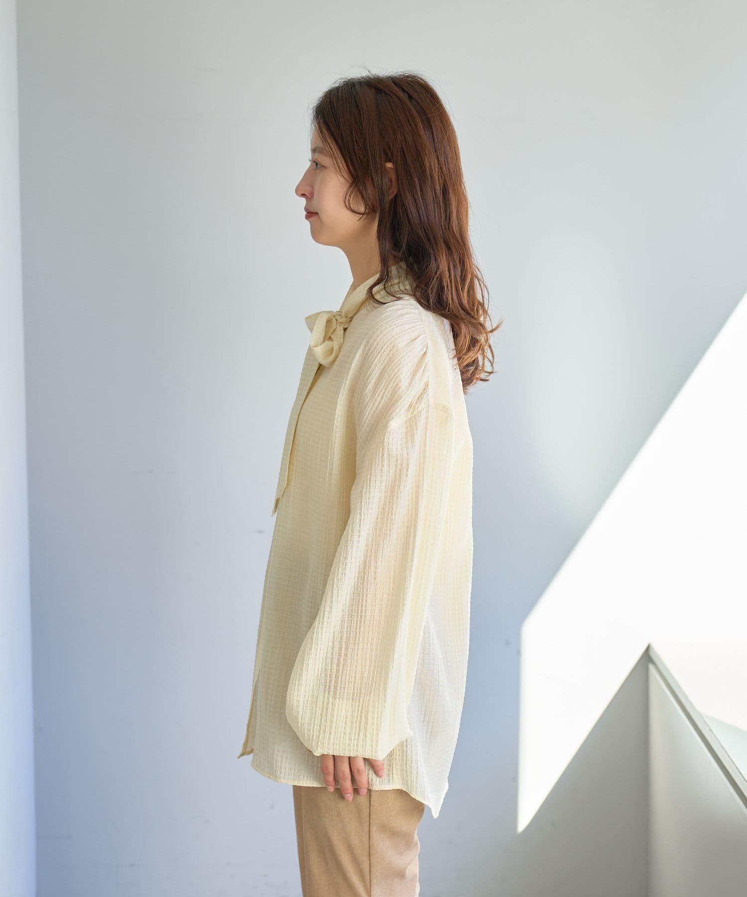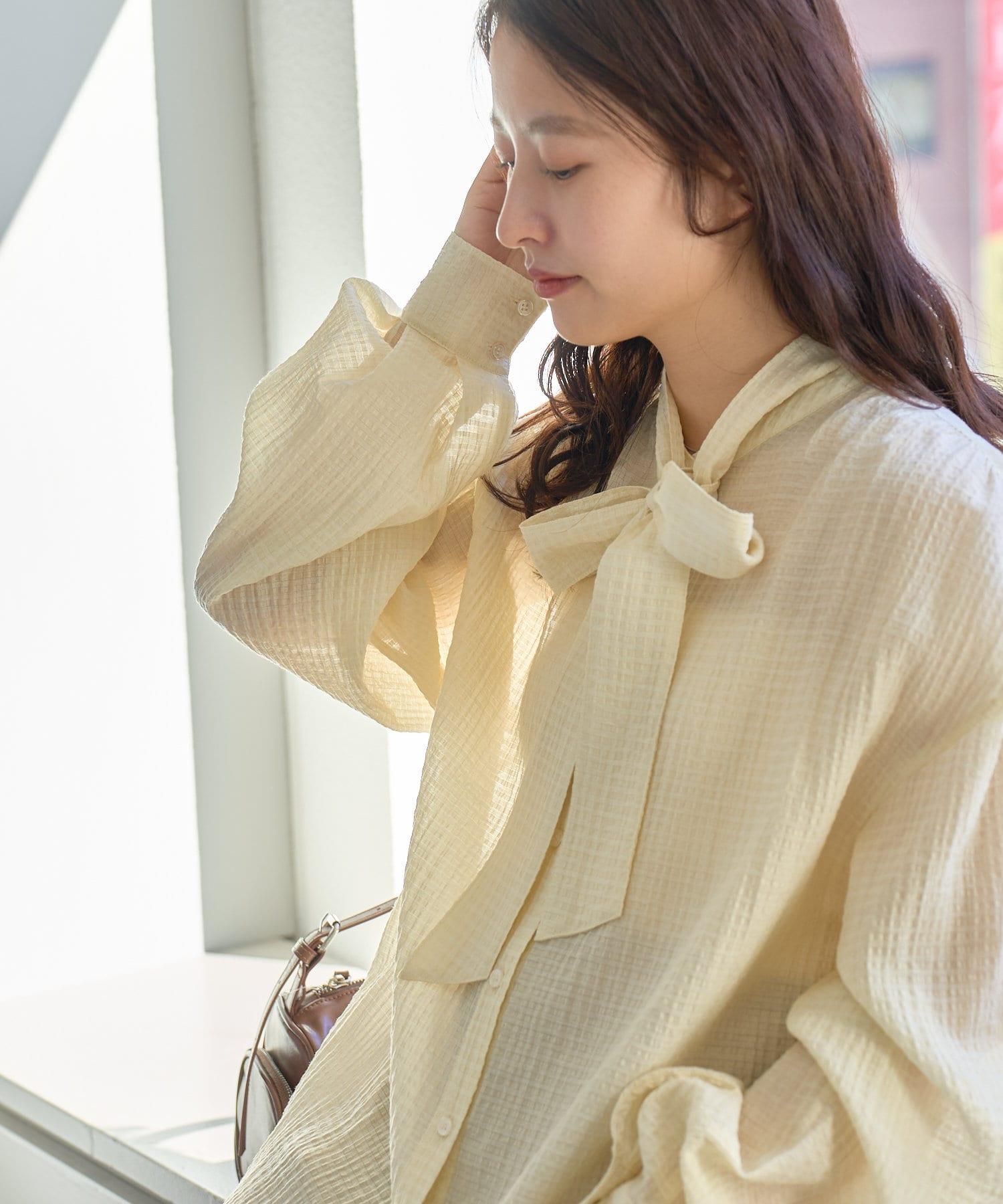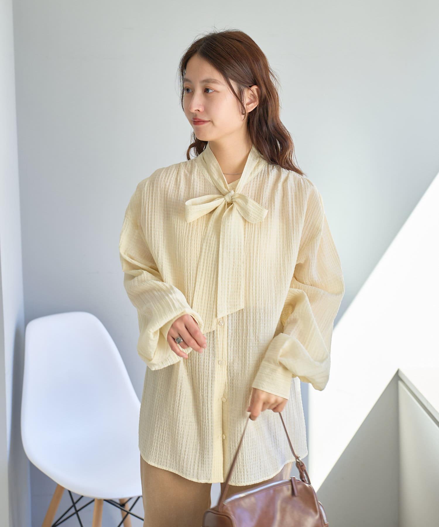 這款蝴蝶結領結襯衫的經典設計營造出女性化的印象。