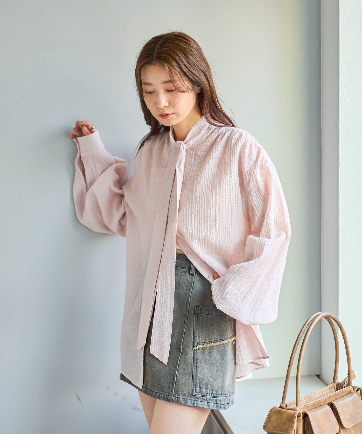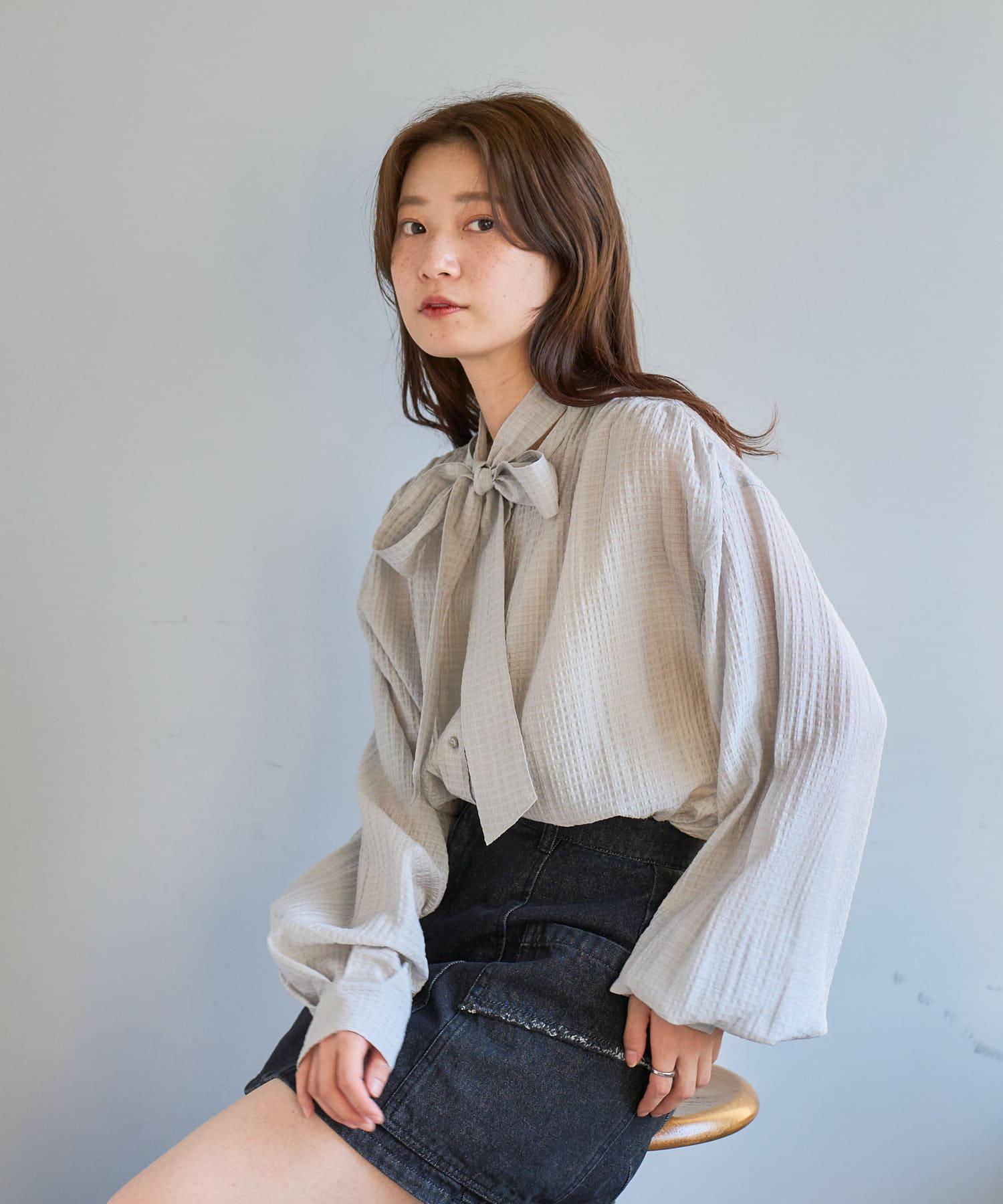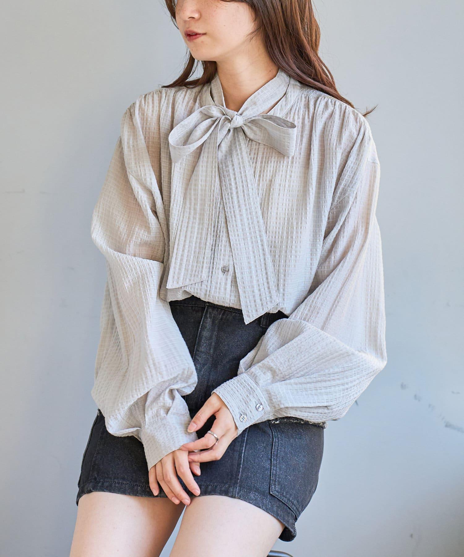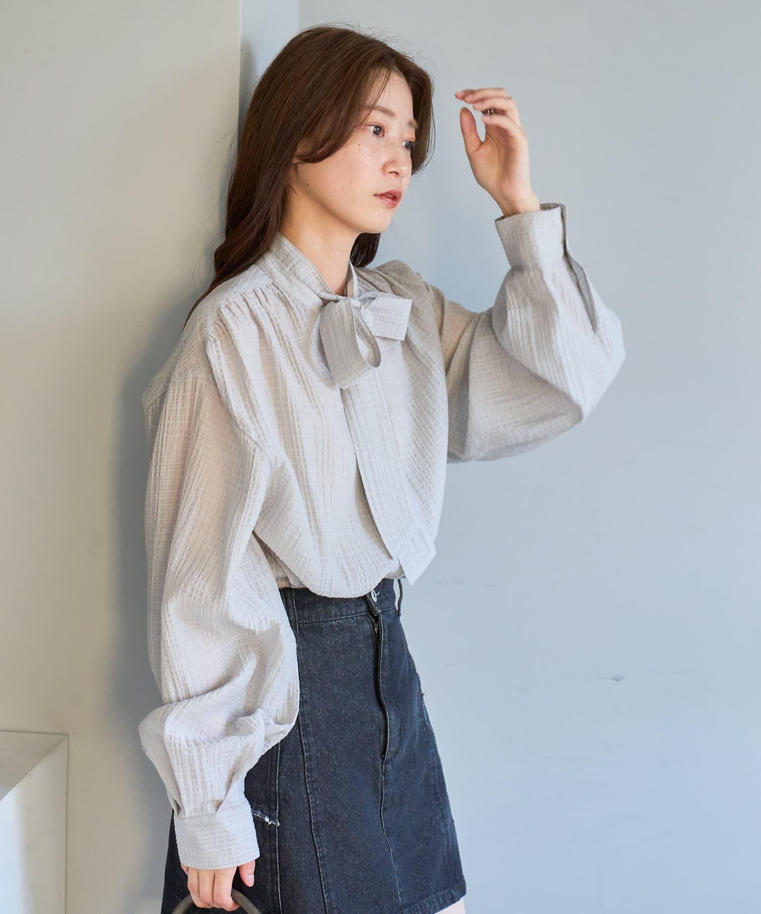 這款蝴蝶結領結襯衫的經典設計營造出女性化的印象。