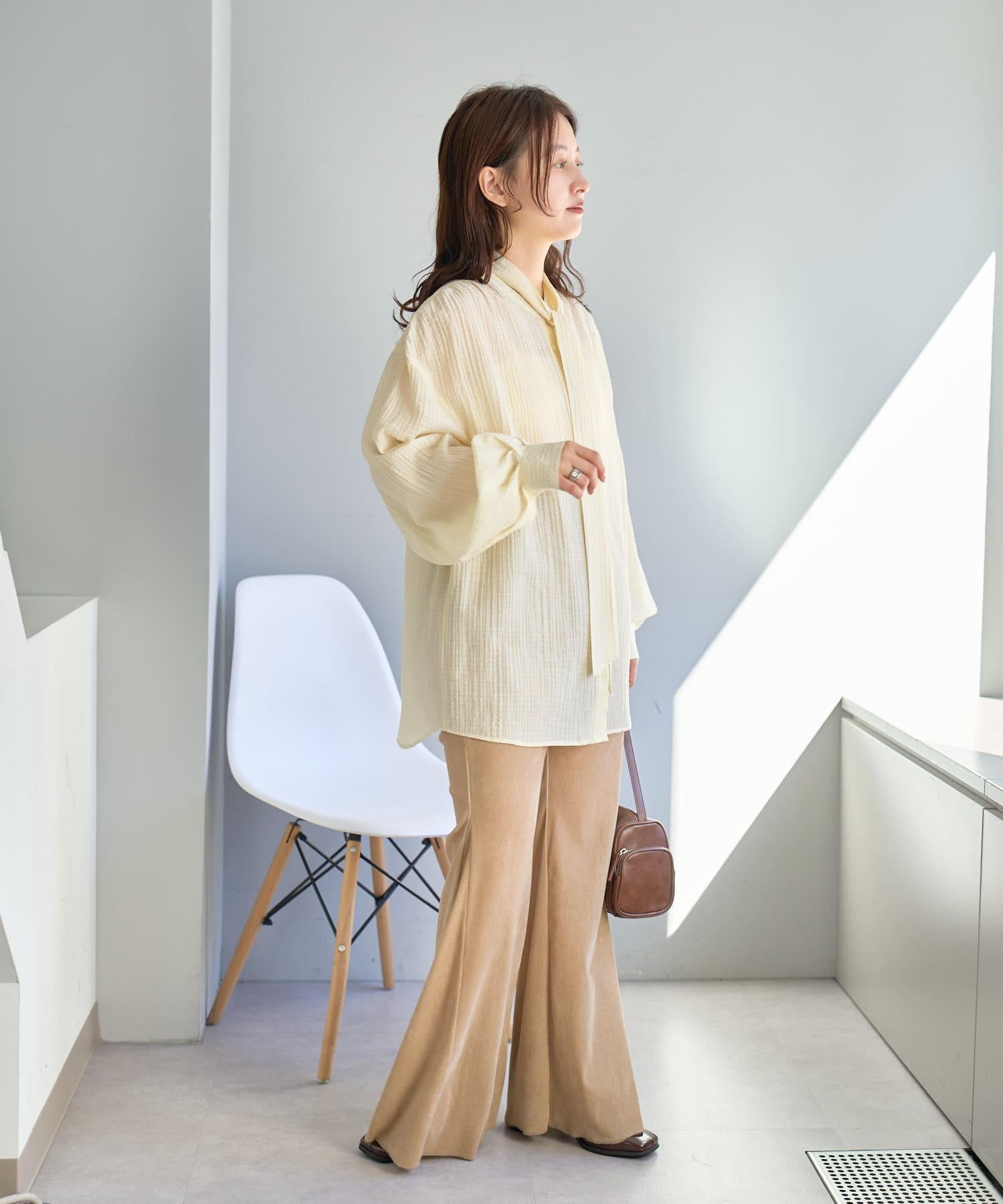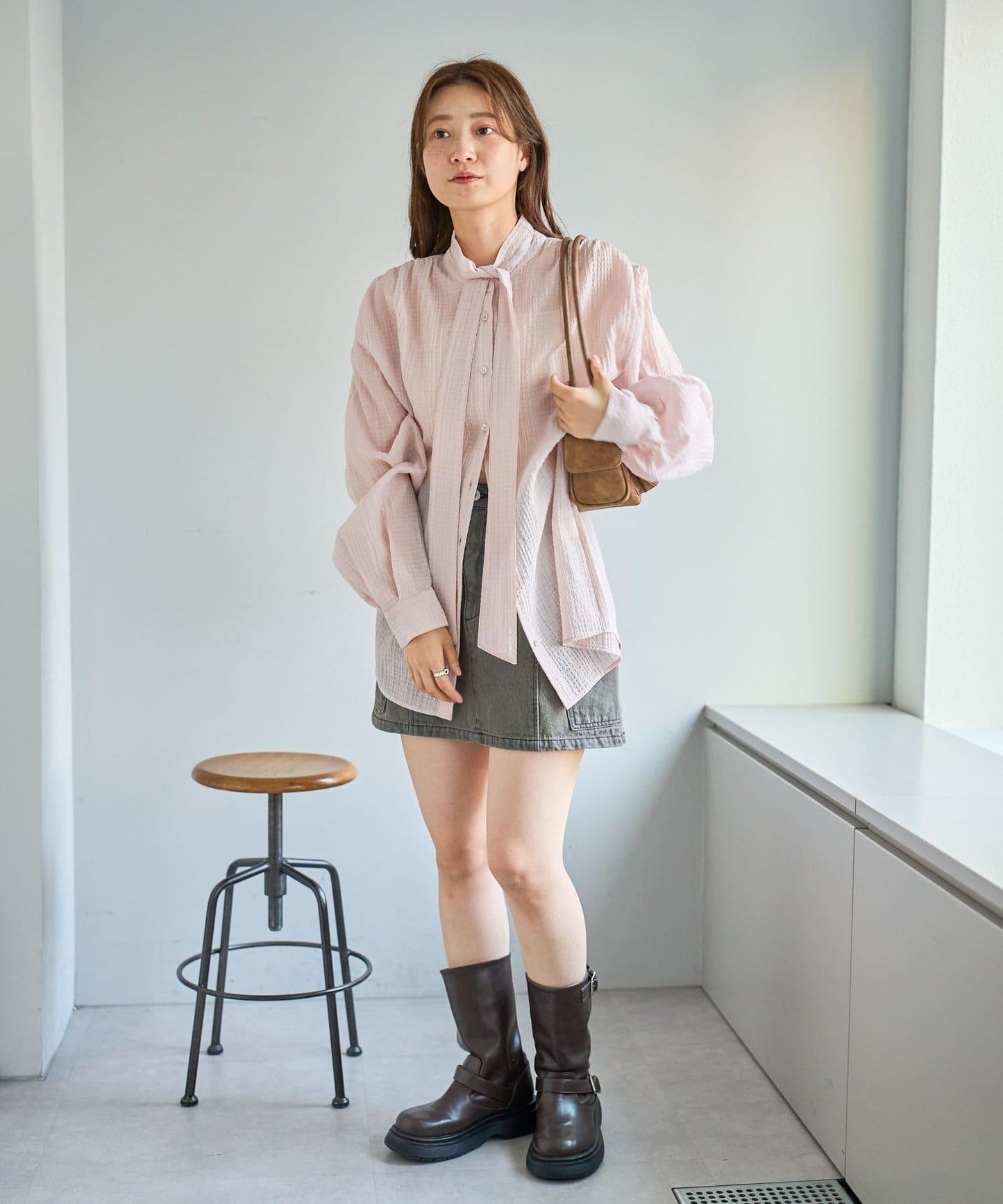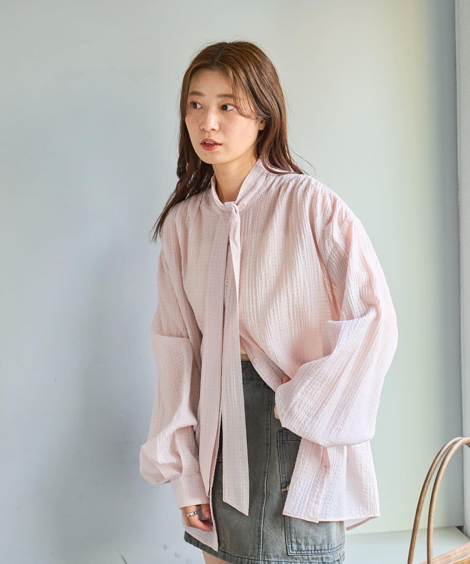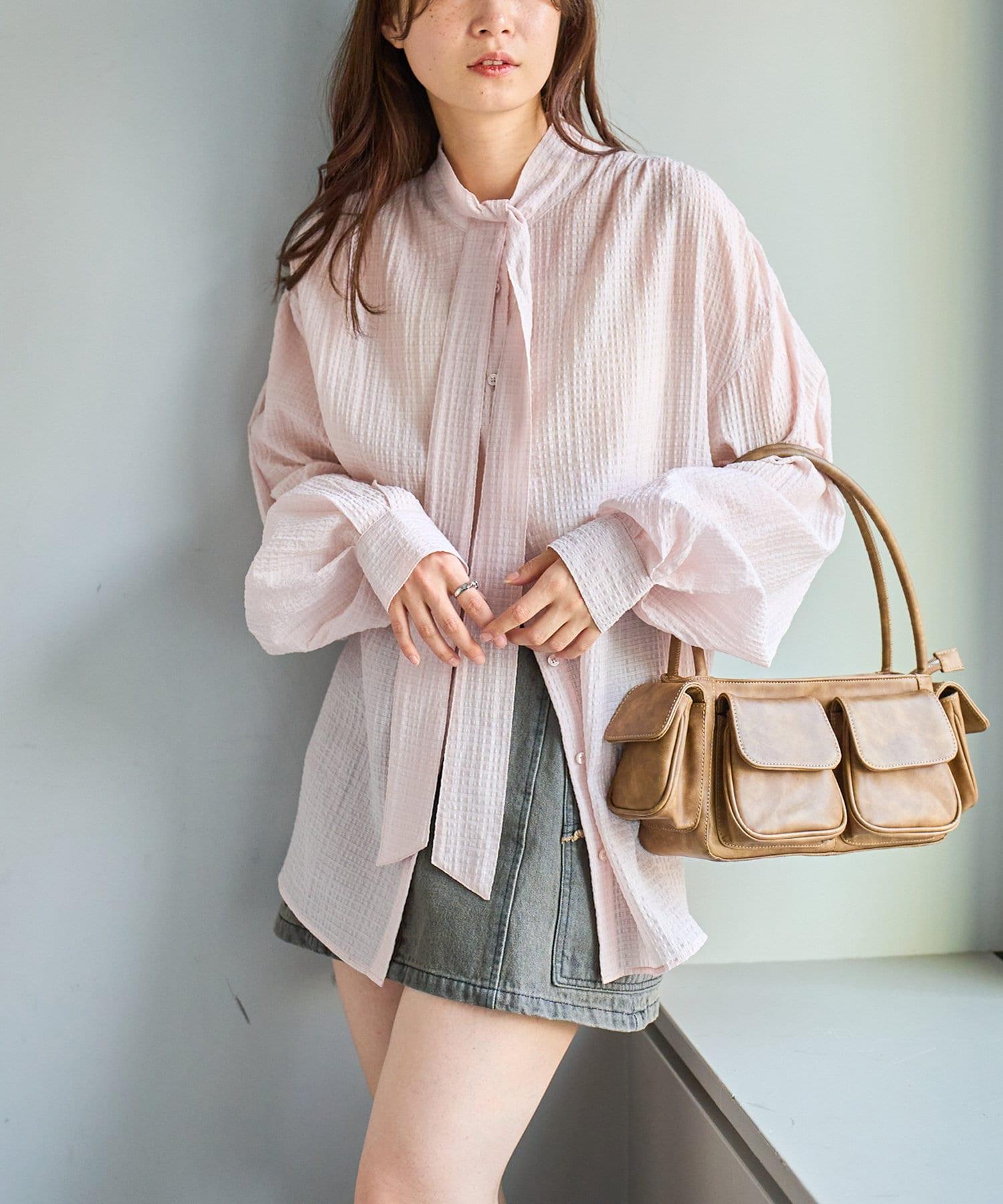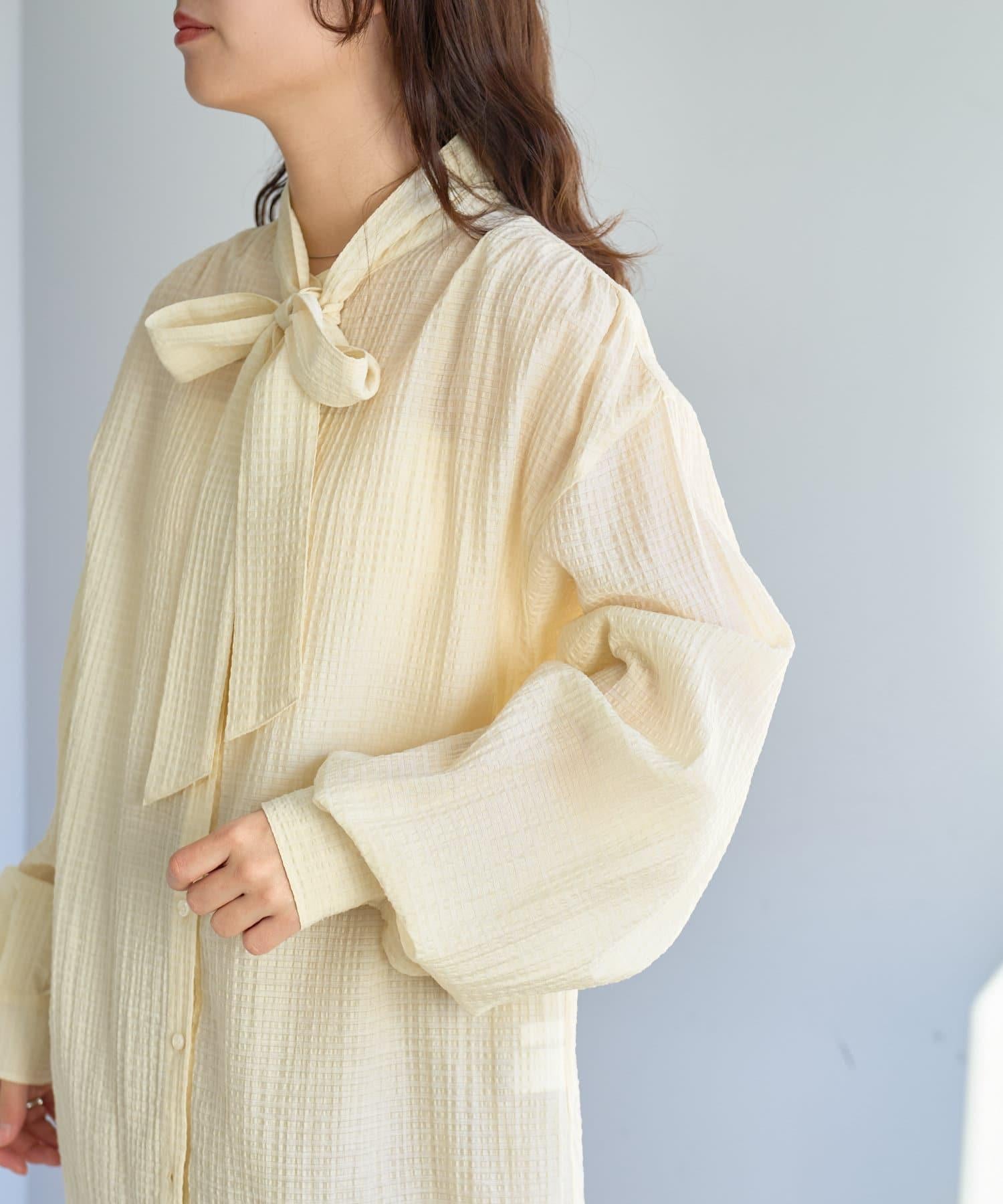 這款蝴蝶結領結襯衫的經典設計營造出女性化的印象。