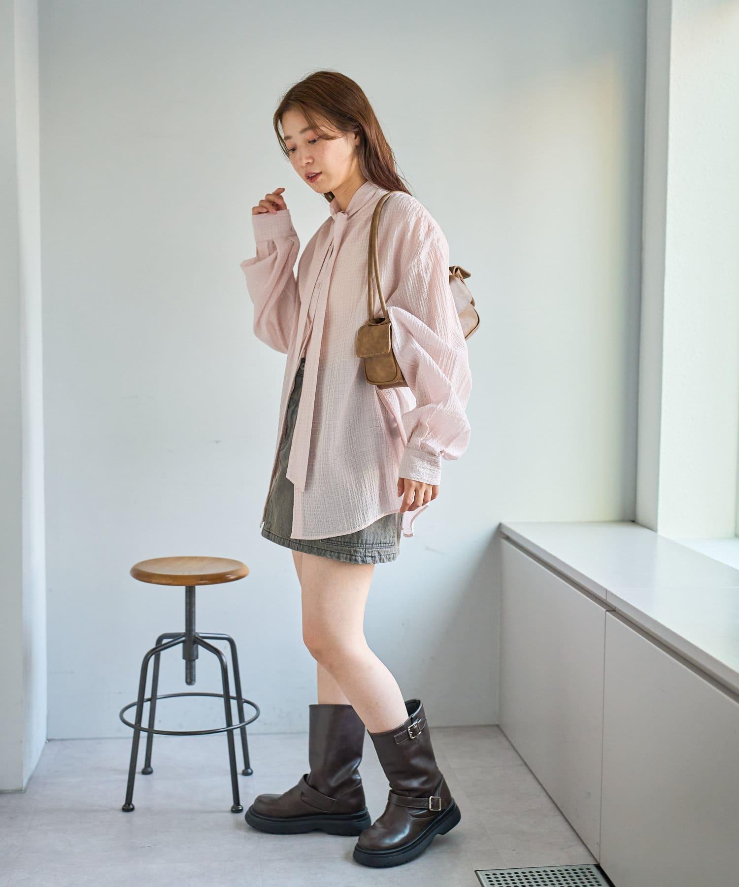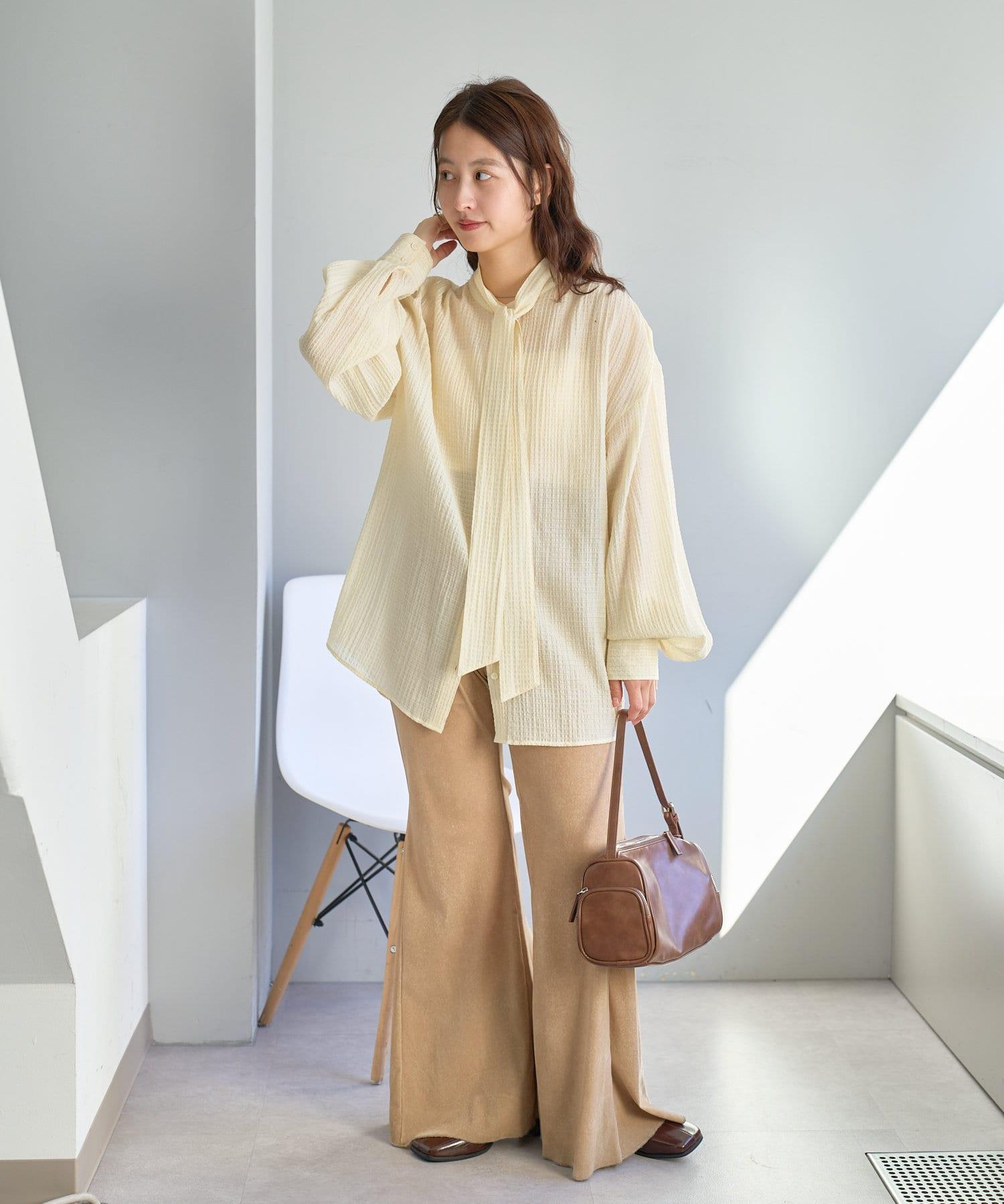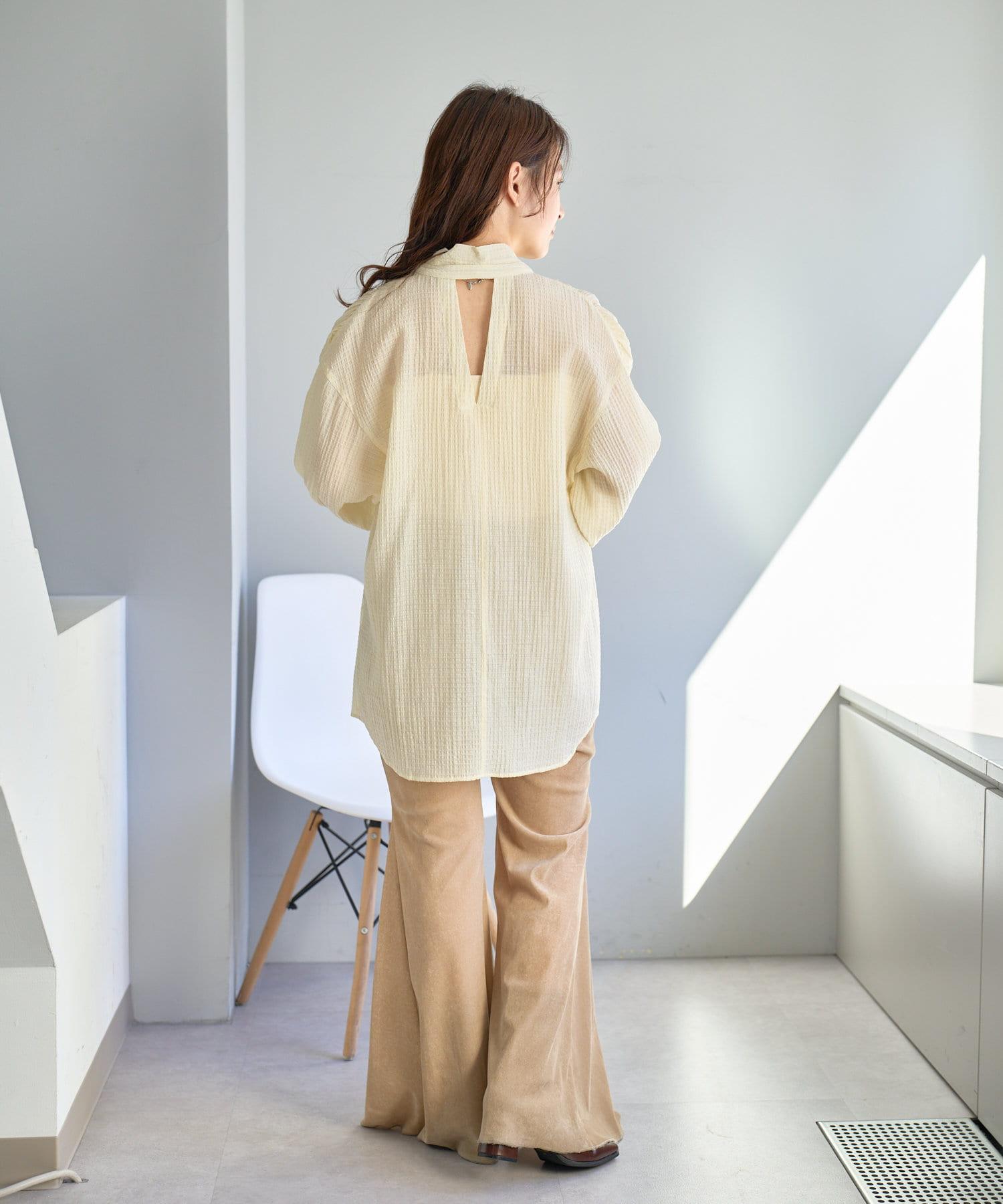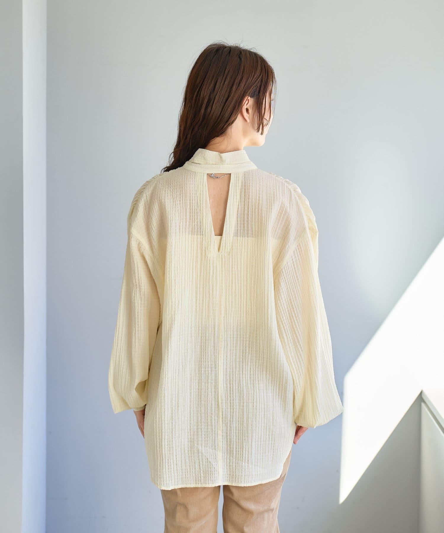 這款蝴蝶結領結襯衫的經典設計營造出女性化的印象。