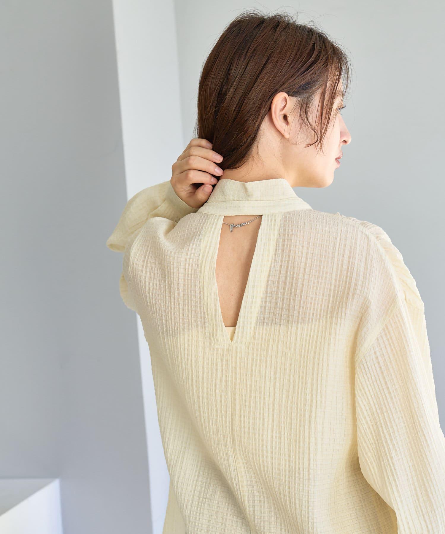 背面的設計巧妙地露出肌膚,營造出輕鬆的感覺。