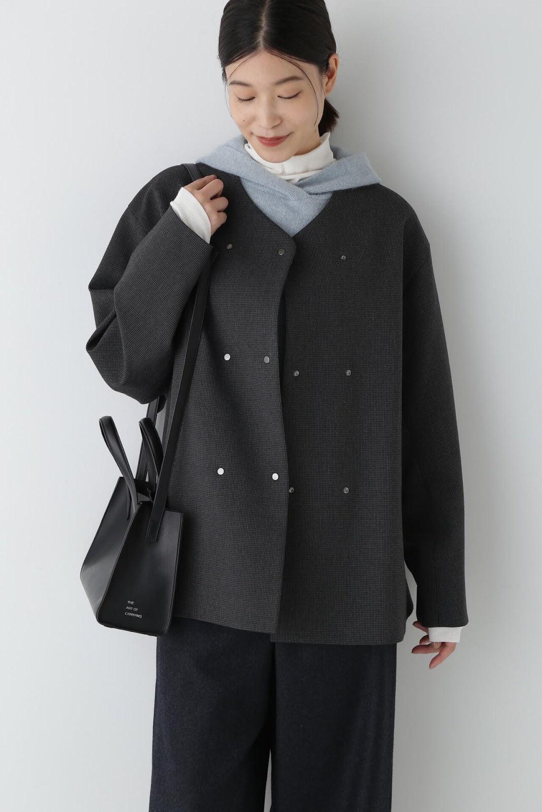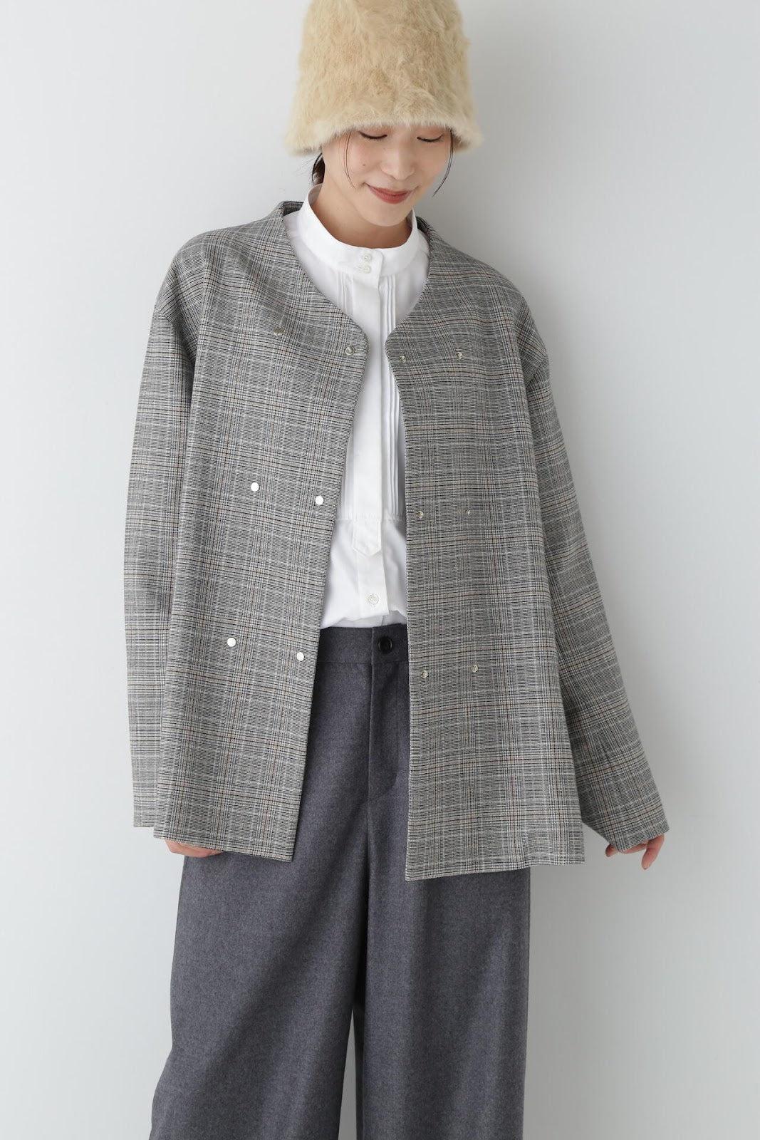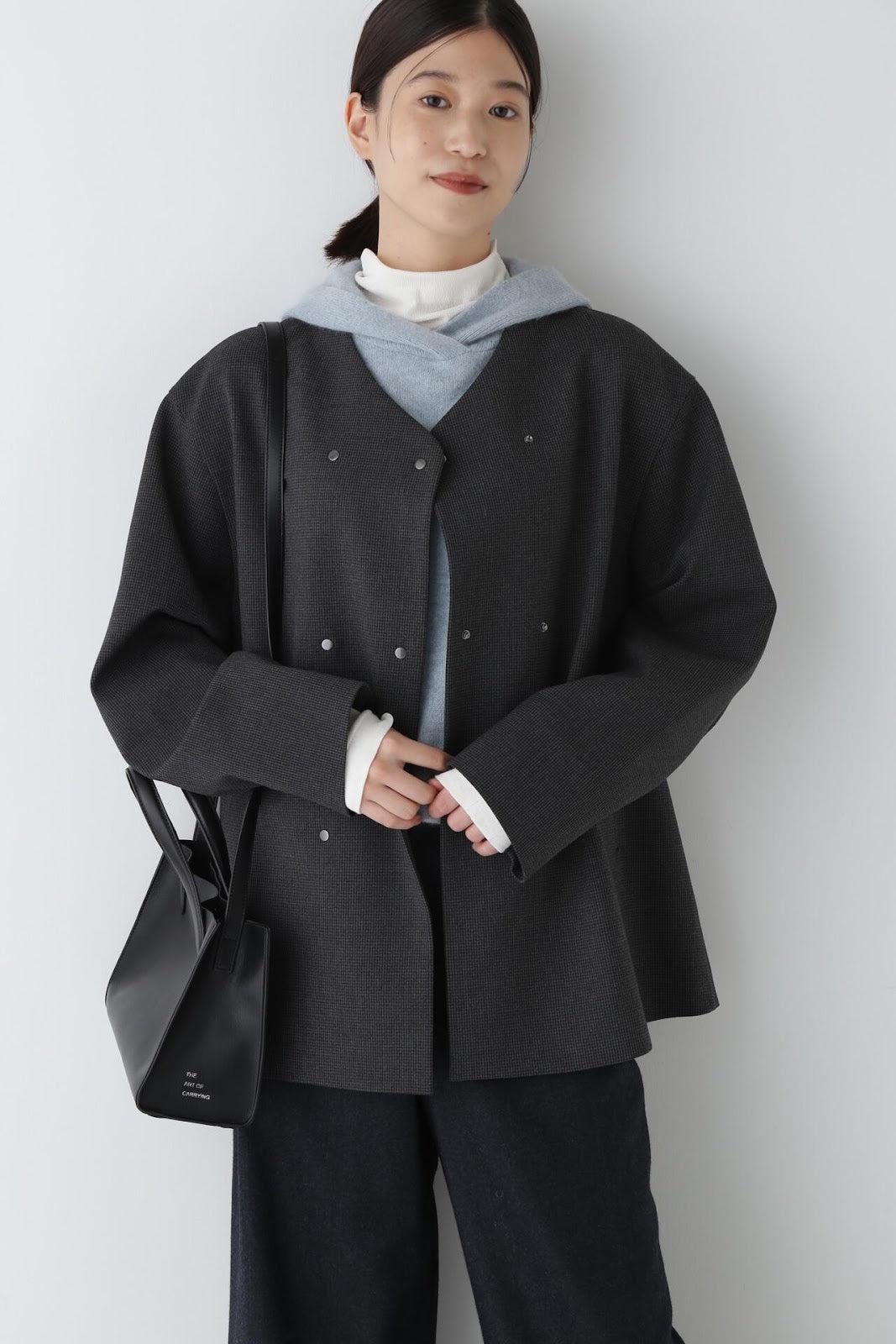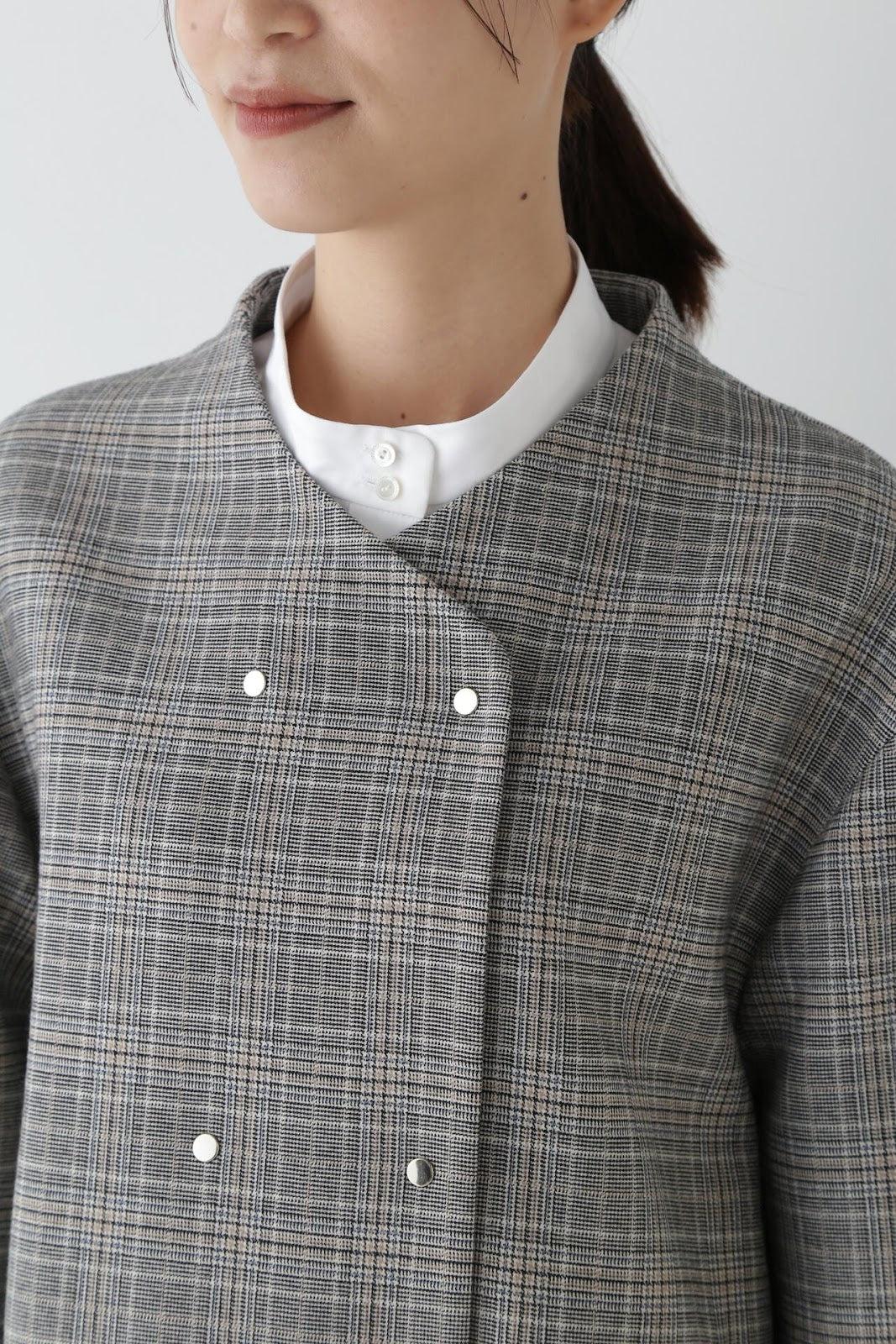 輕便、保暖、經典、優雅的棋盤格長衫 [設計特點] 這款長衫的領口設計很有特色,從窄小的雙前襟一直延續到現在。長度也適中地遮住了腰部。面料為薄粘合的色織格紋面料。雖然是粘合面料,但彈性感不強,穿著舒適。推薦搭配:與高領毛衣和襯衫領搭配得很好,推薦給有整潔感的搭配。短款的長度可以讓你快速穿上,不需要選擇下裝搭配的廓形。