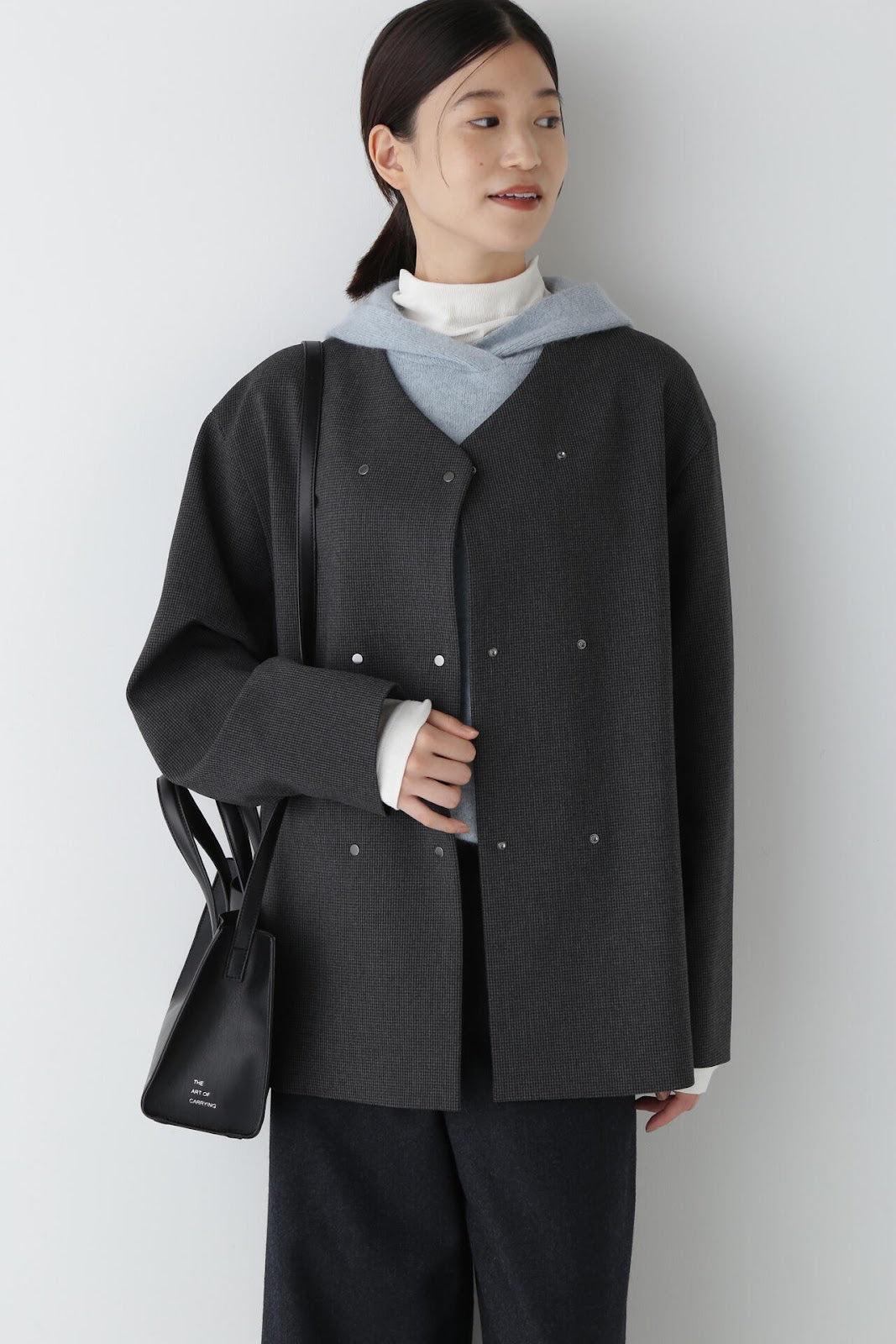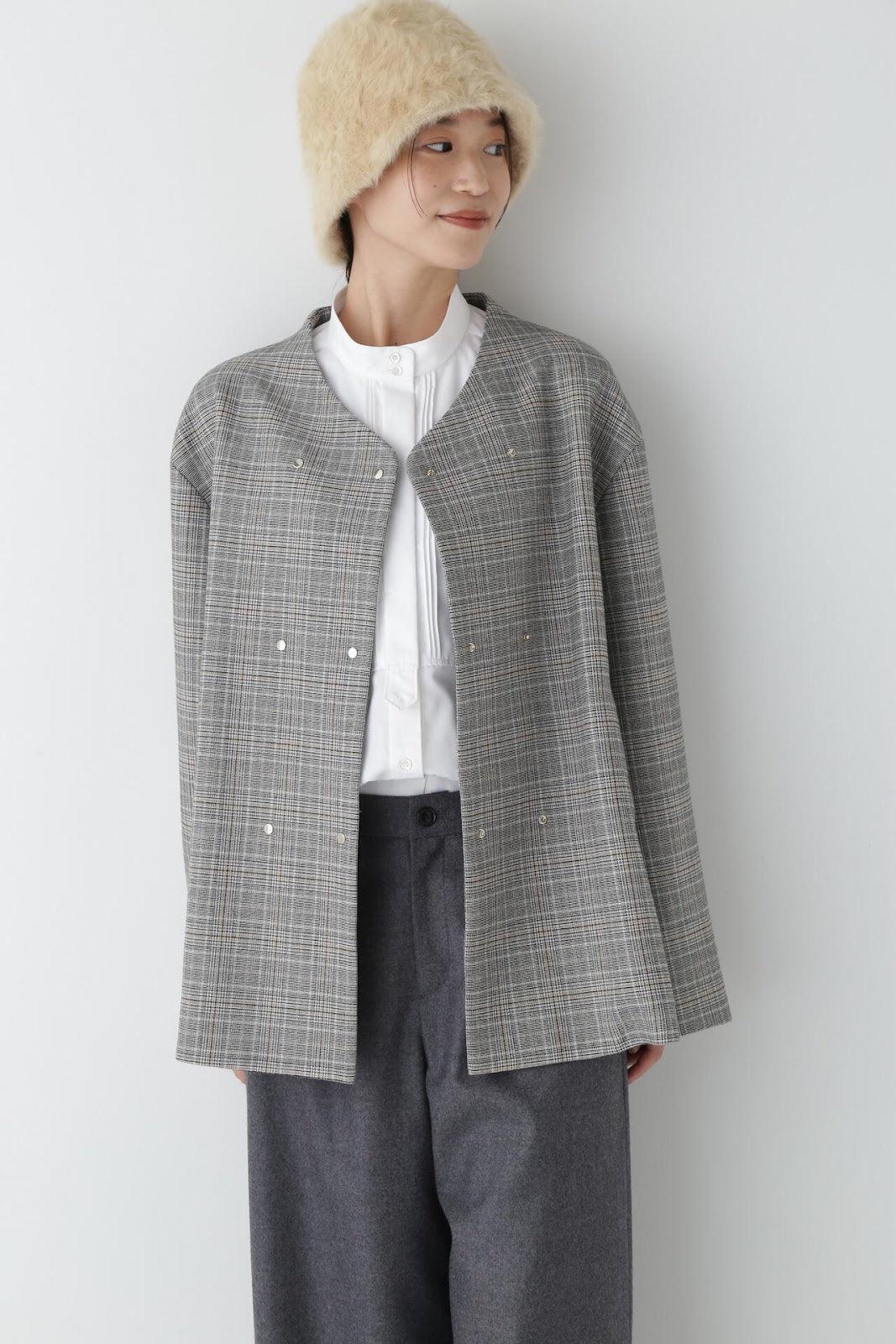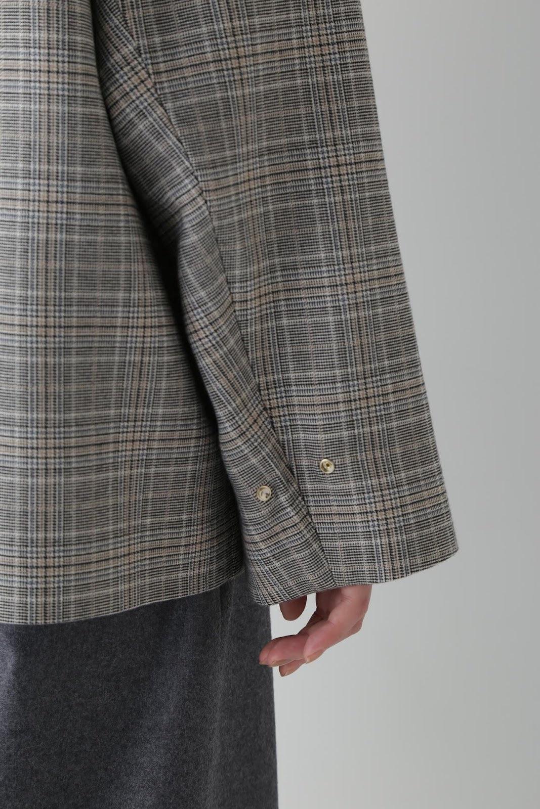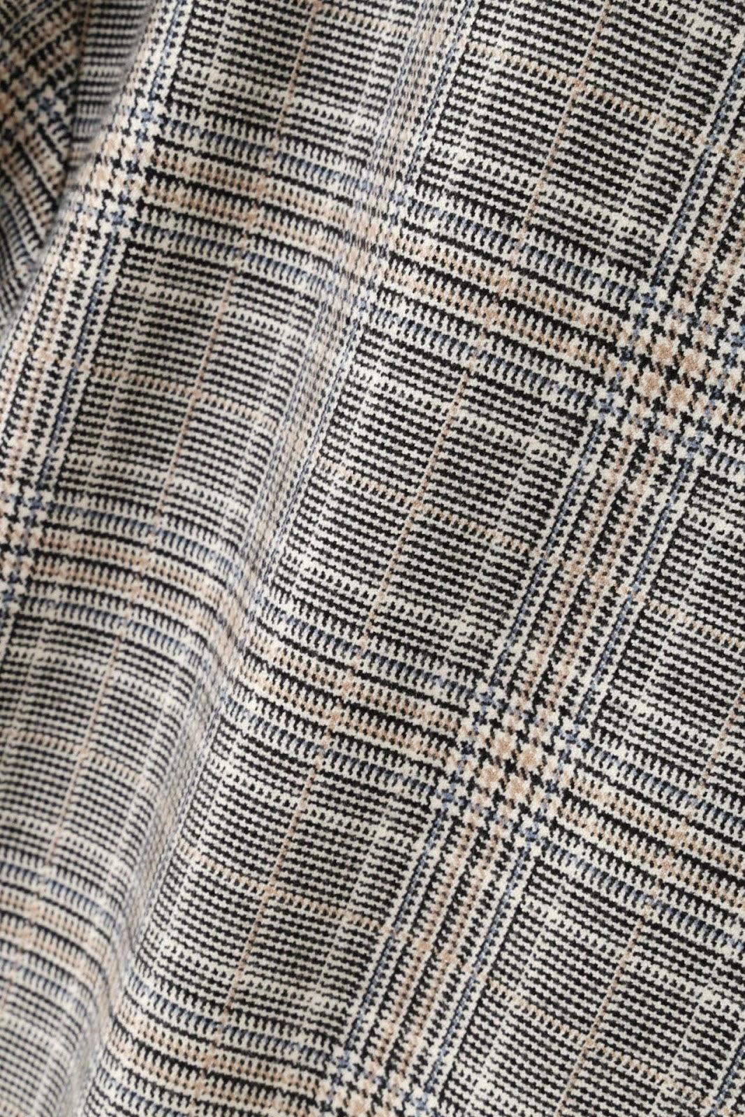 輕便、保暖、經典、優雅的棋盤格長衫 [設計特點] 這款長衫的領口設計很有特色,從窄小的雙前襟一直延續到現在。長度也適中地遮住了腰部。面料為薄粘合的色織格紋面料。雖然是粘合面料,但彈性感不強,穿著舒適。推薦搭配:與高領毛衣和襯衫領搭配得很好,推薦給有整潔感的搭配。短款的長度可以讓你快速穿上,不需要選擇下裝搭配的廓形。