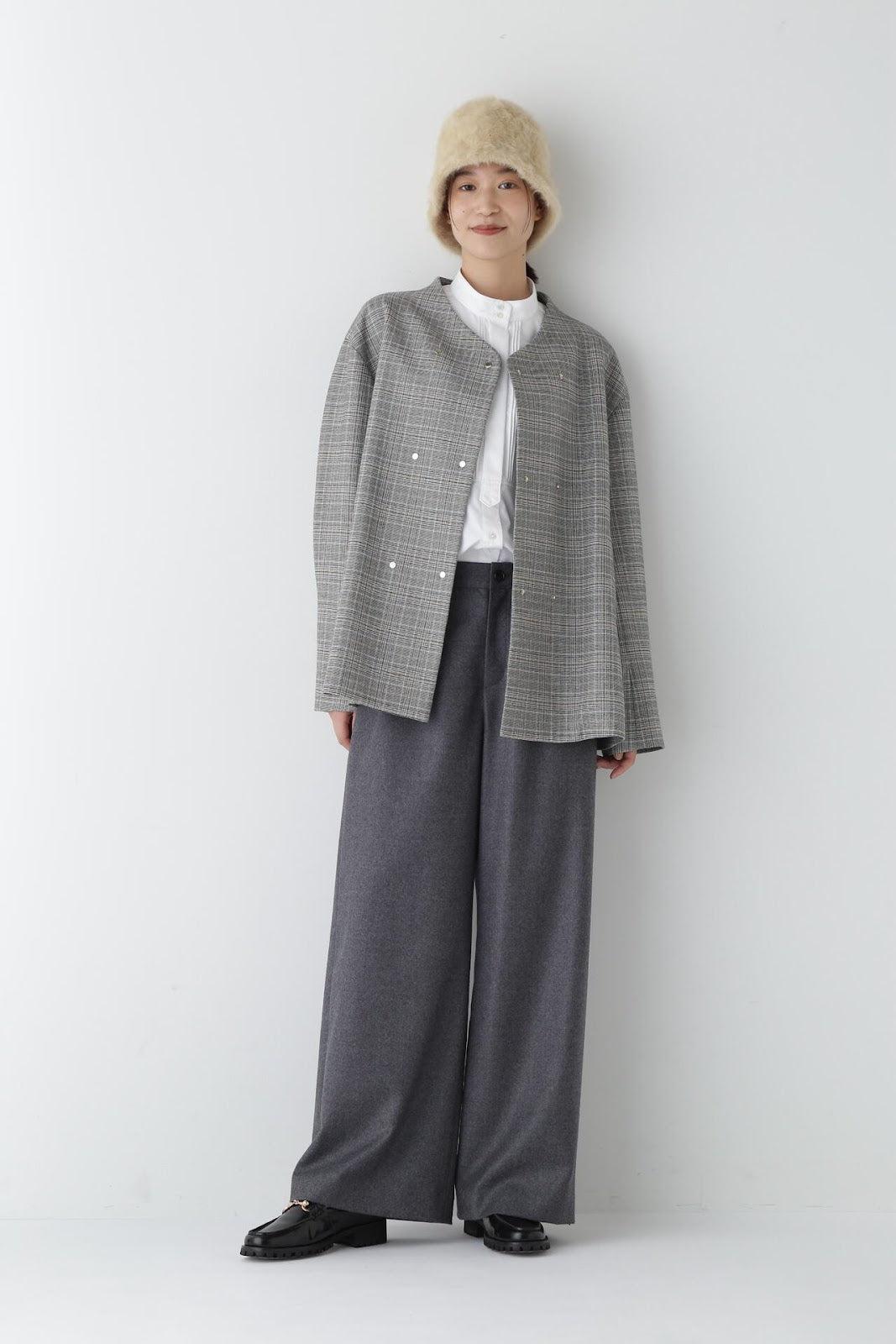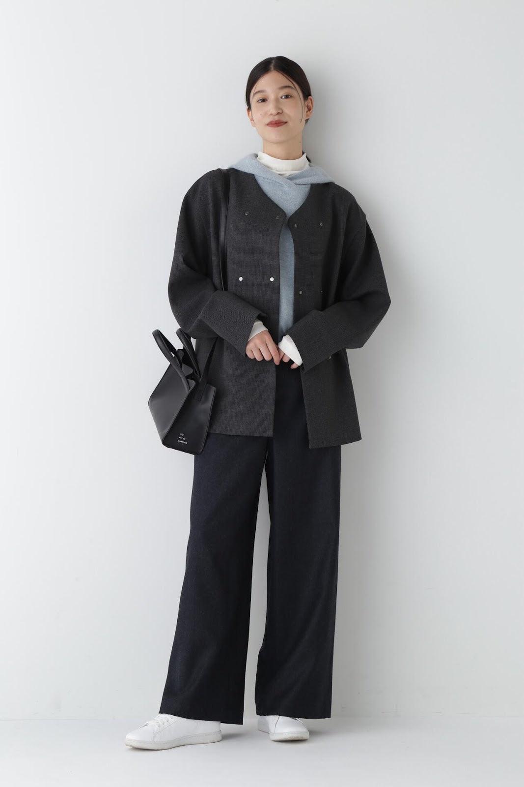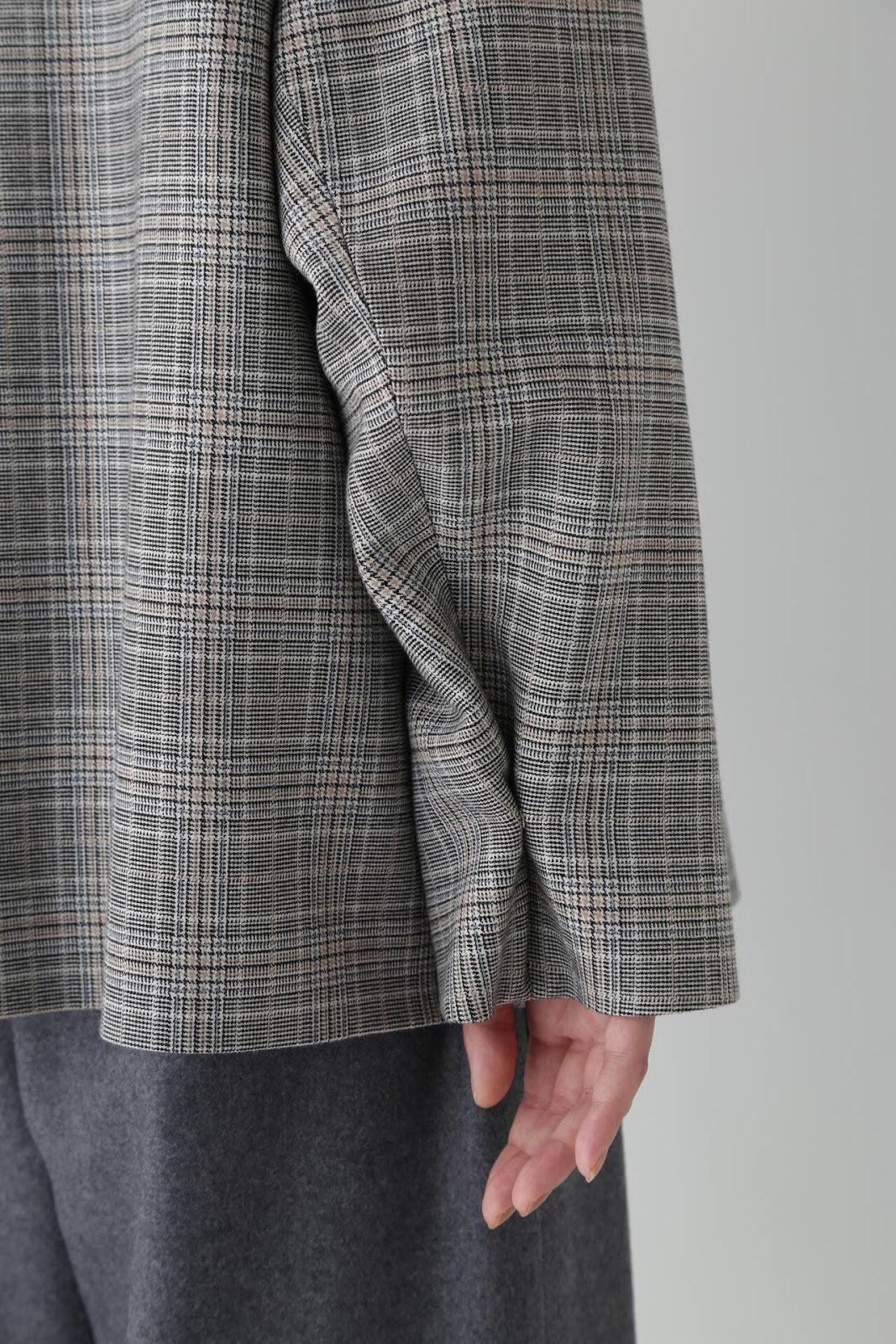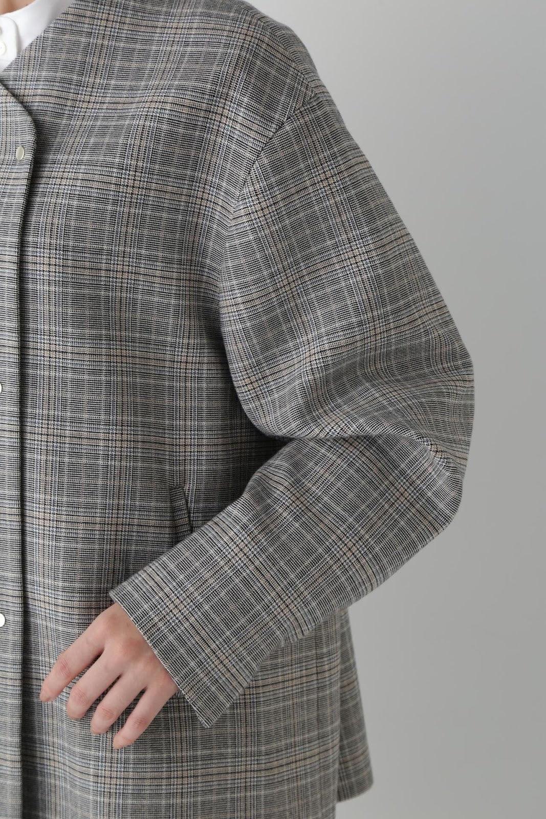 輕便、保暖、經典、優雅的棋盤格長衫 [設計特點] 這款長衫的領口設計很有特色,從窄小的雙前襟一直延續到現在。長度也適中地遮住了腰部。面料為薄粘合的色織格紋面料。雖然是粘合面料,但彈性感不強,穿著舒適。推薦搭配:與高領毛衣和襯衫領搭配得很好,推薦給有整潔感的搭配。短款的長度可以讓你快速穿上,不需要選擇下裝搭配的廓形。