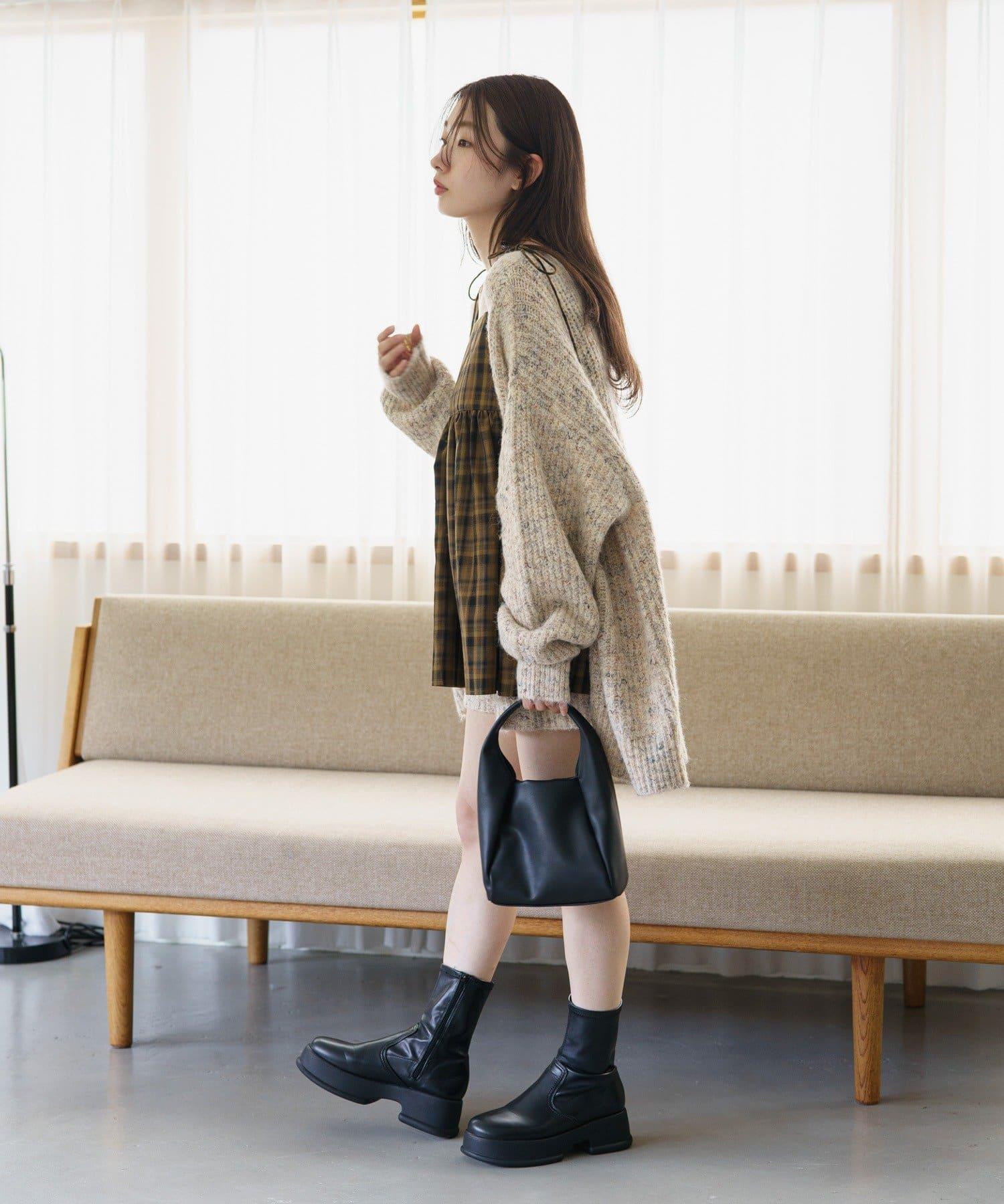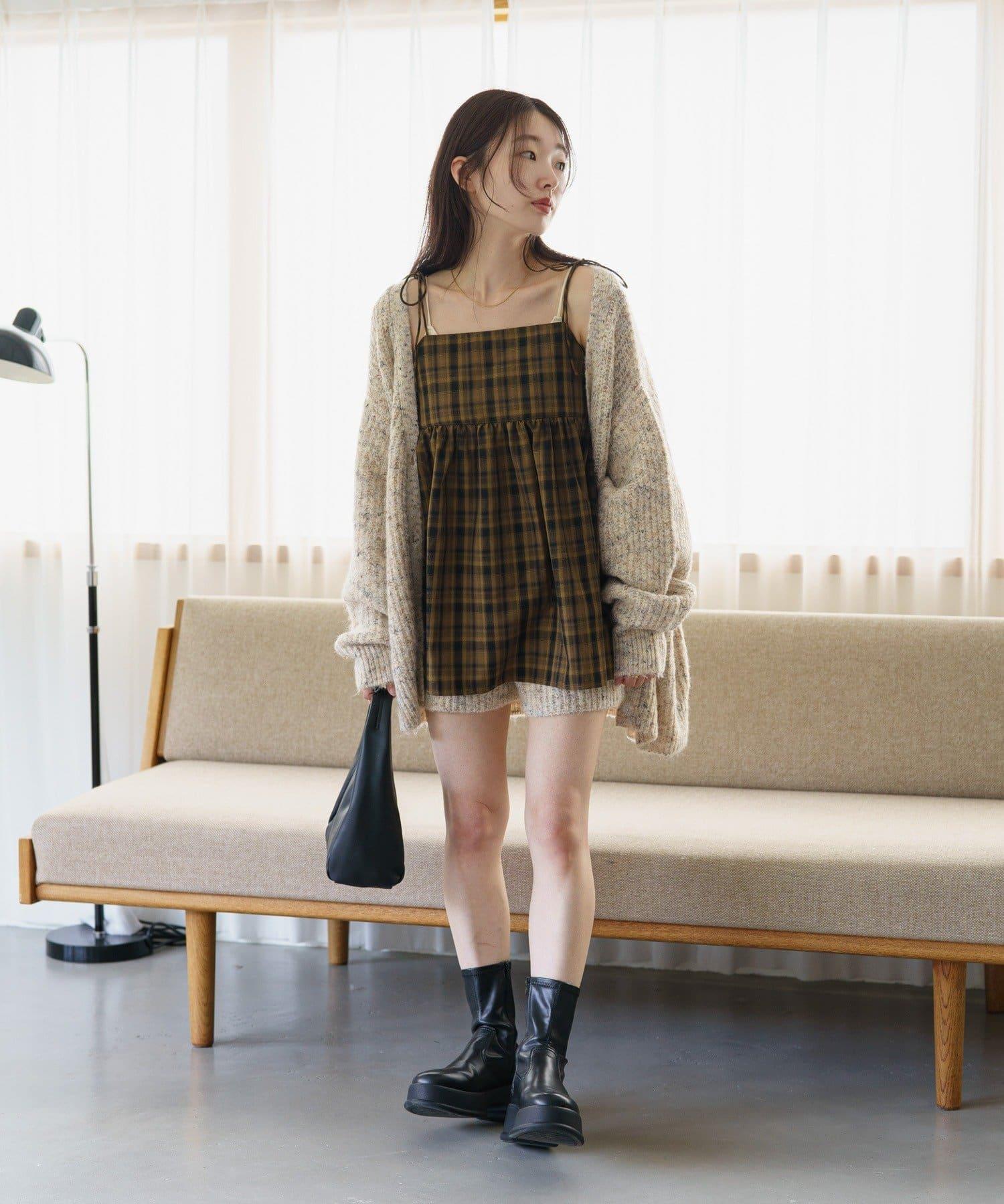 這款連衣裙的配色非常漂亮,因此建議使用類似的顏色或象牙色等基本色來搭配內搭。