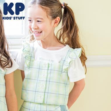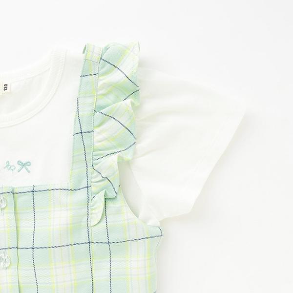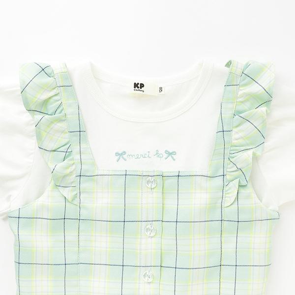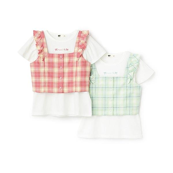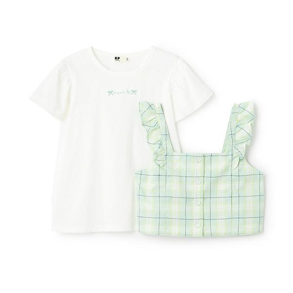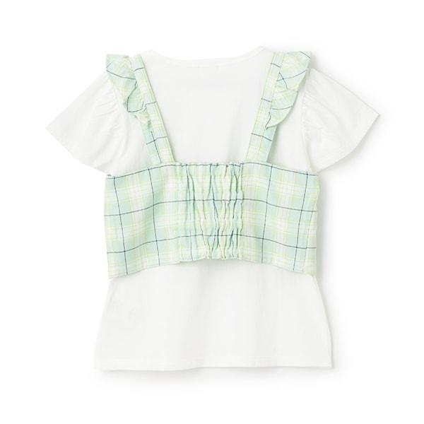 格紋吊帶背心拼接短袖T恤套裝