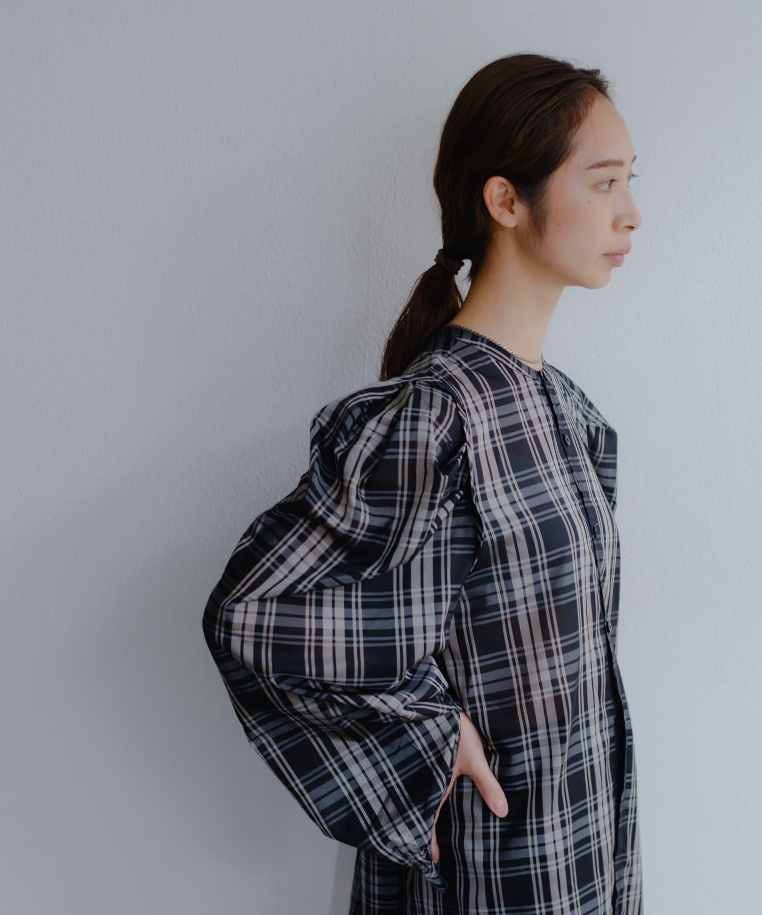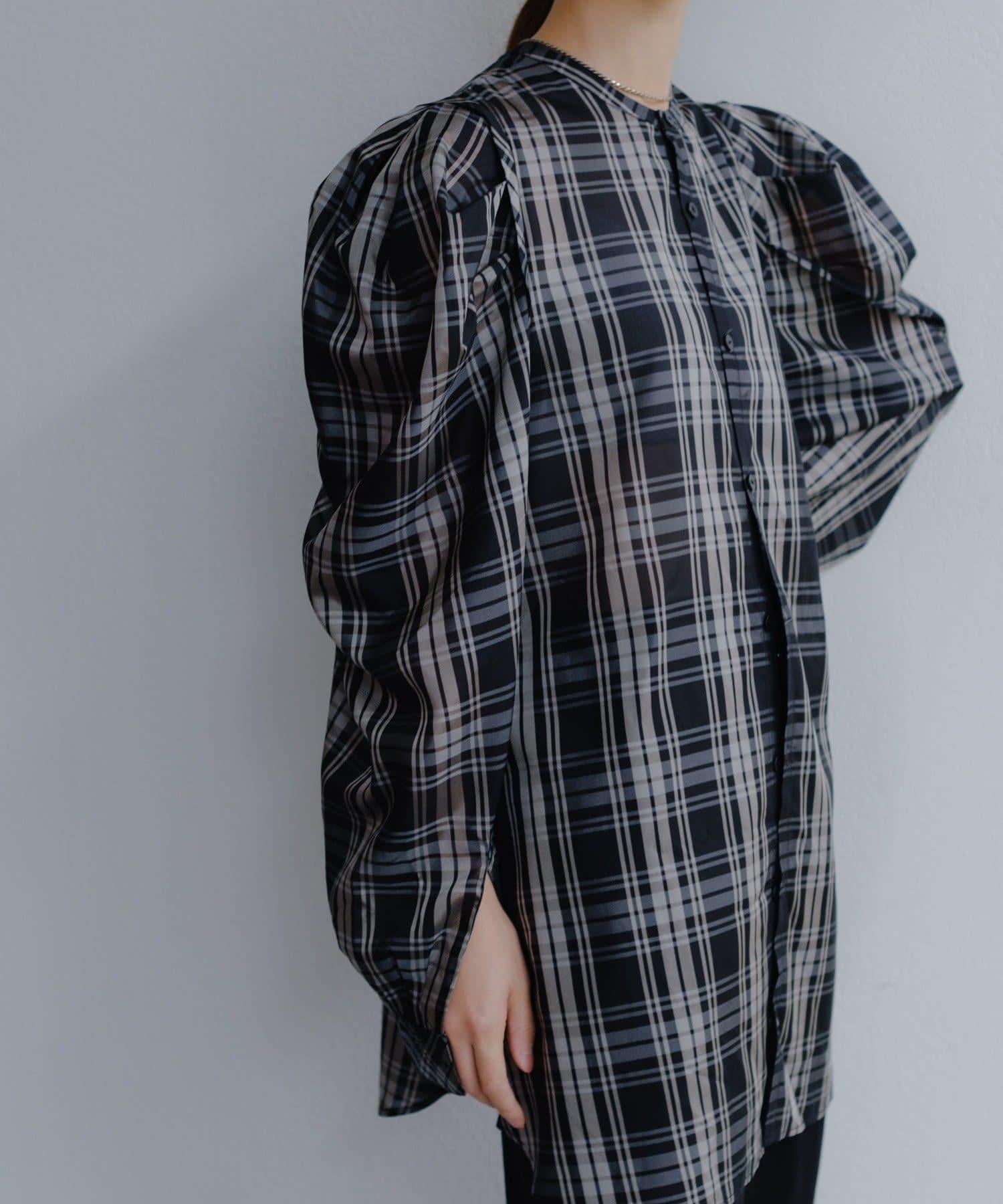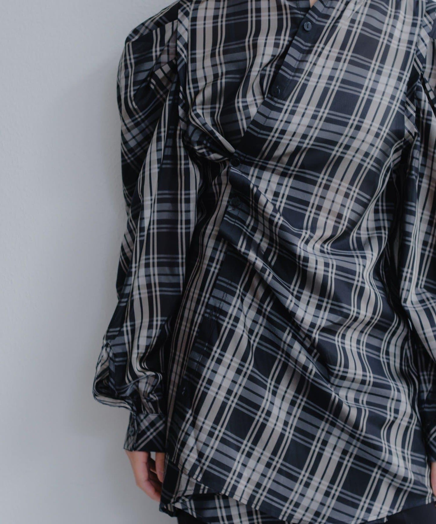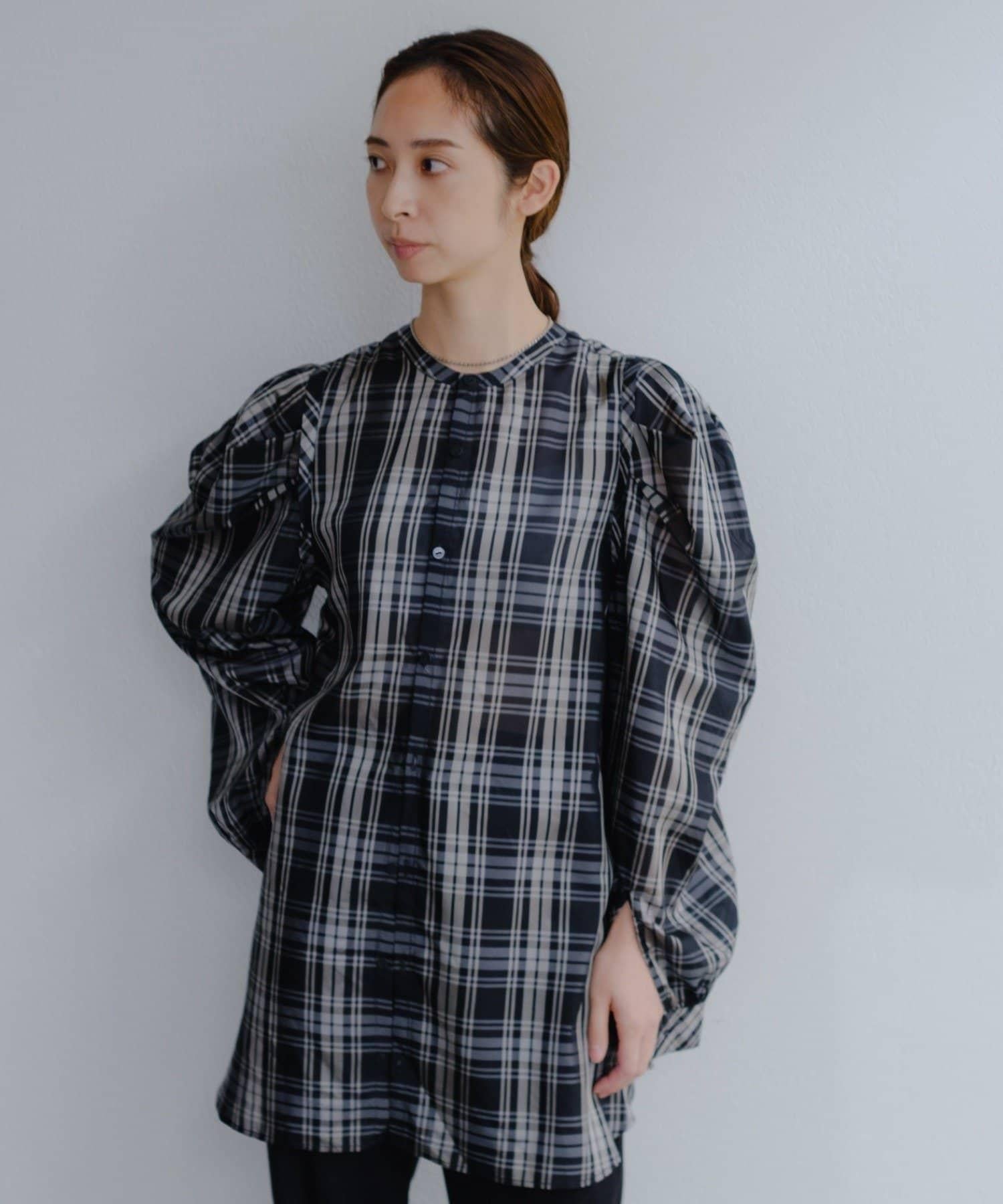 透視格紋上衣,袖子豐盈,單件就能讓你看起來美豔動人。面料採用 100%醋酸纖維製成的單色格紋提花面料,透明度適中。它具有良好的彈力和垂墜感,袖子的輪廓非常優美。顏色別緻,不會過於怪異,建議偶爾出席一些場合。