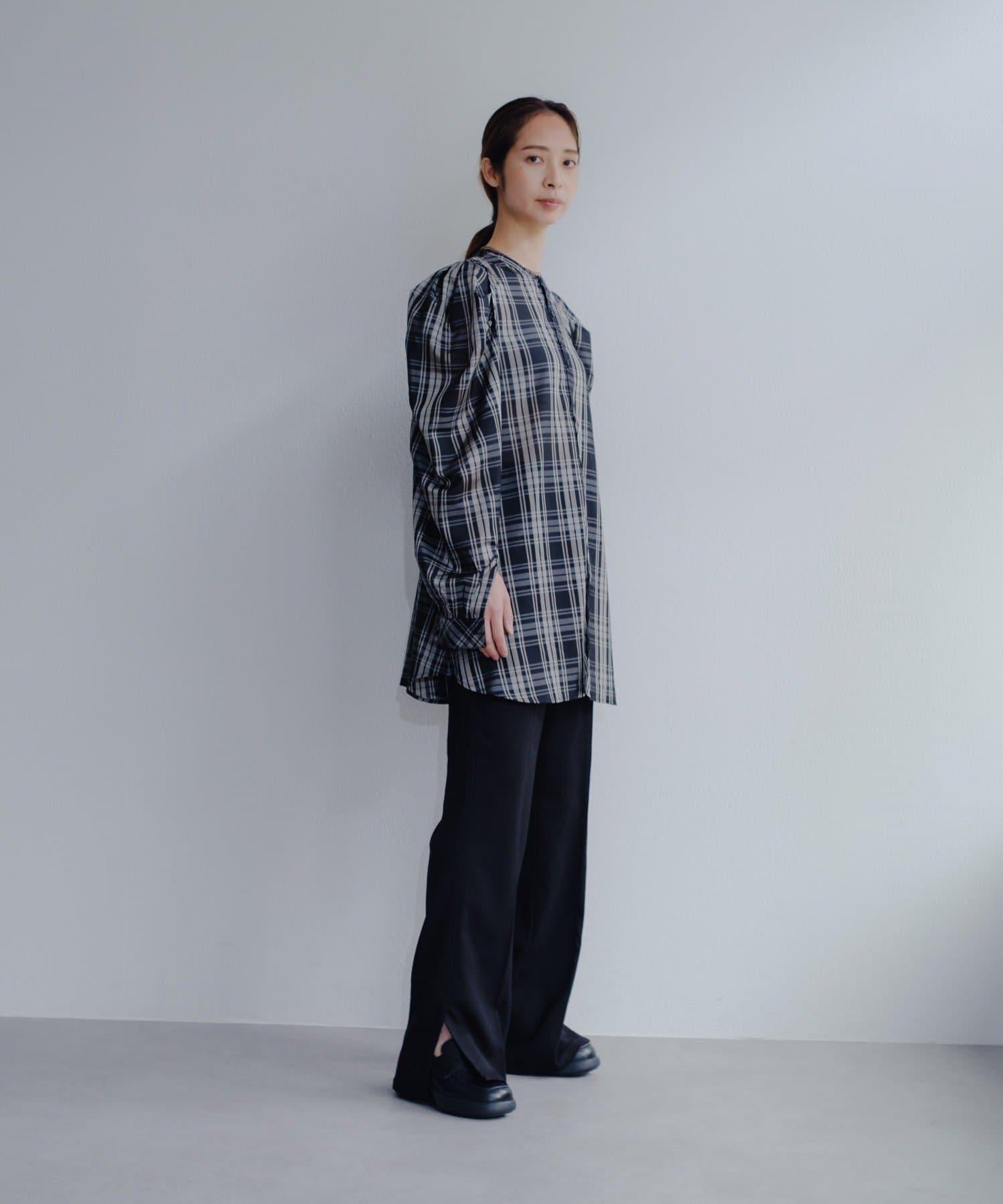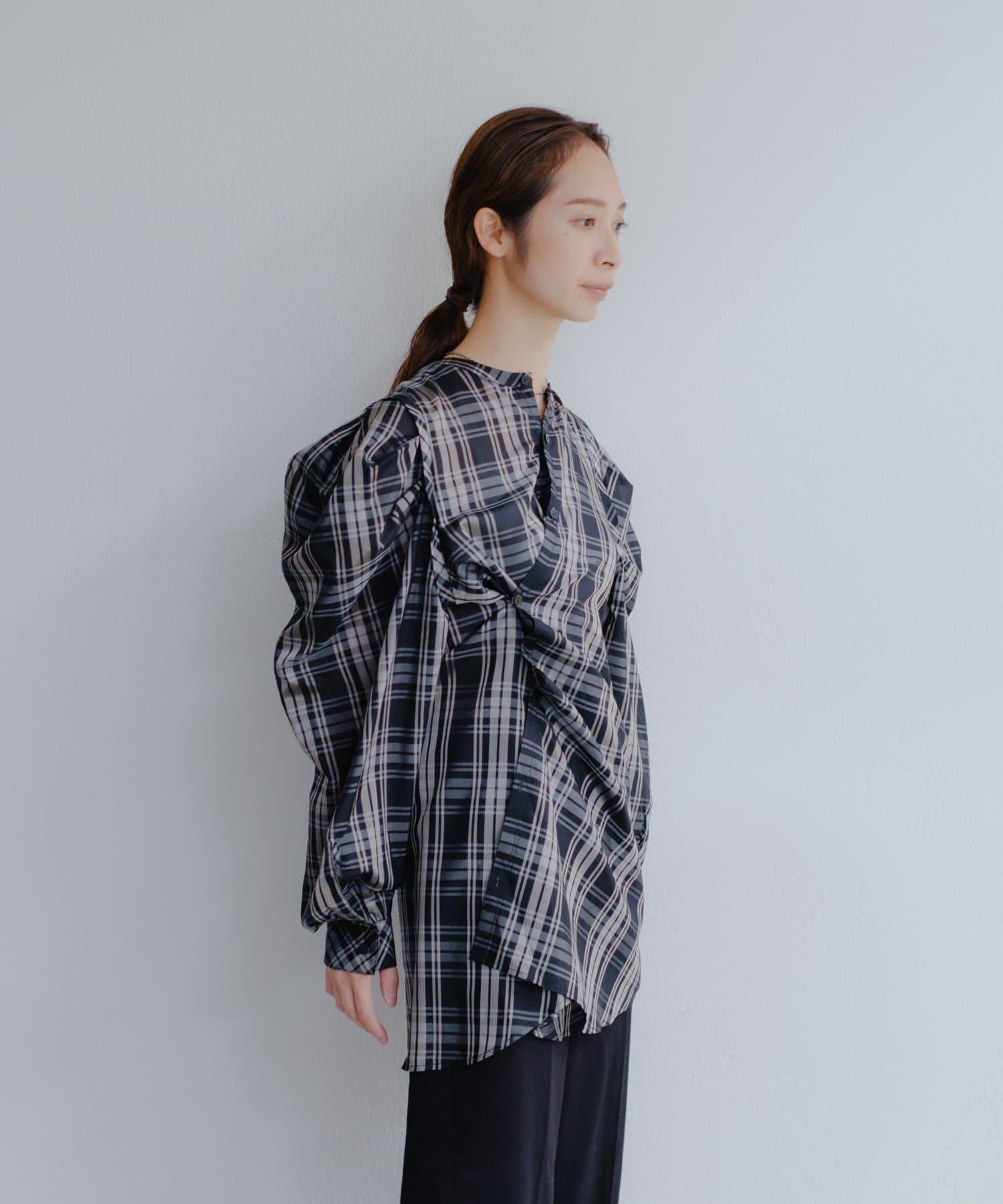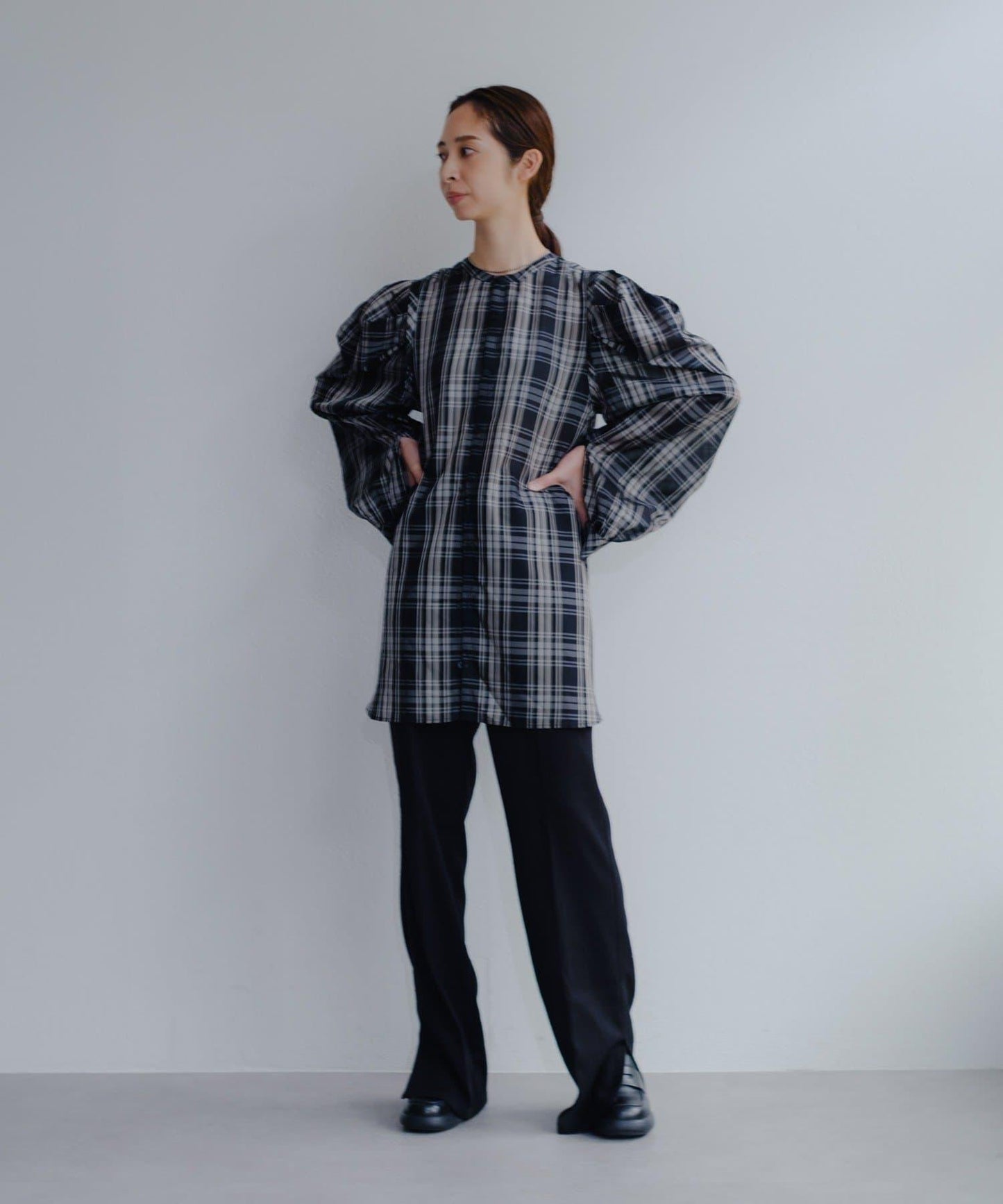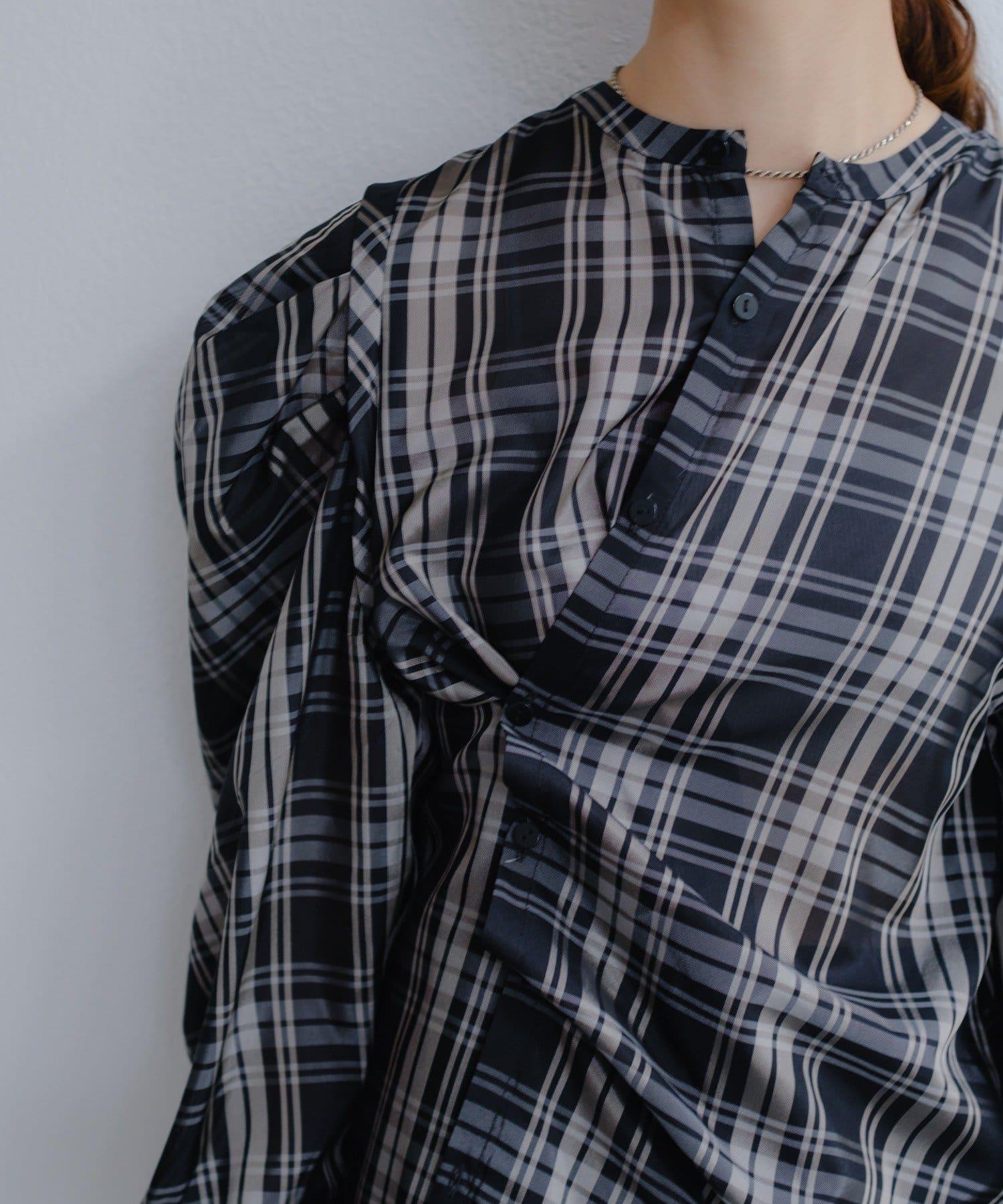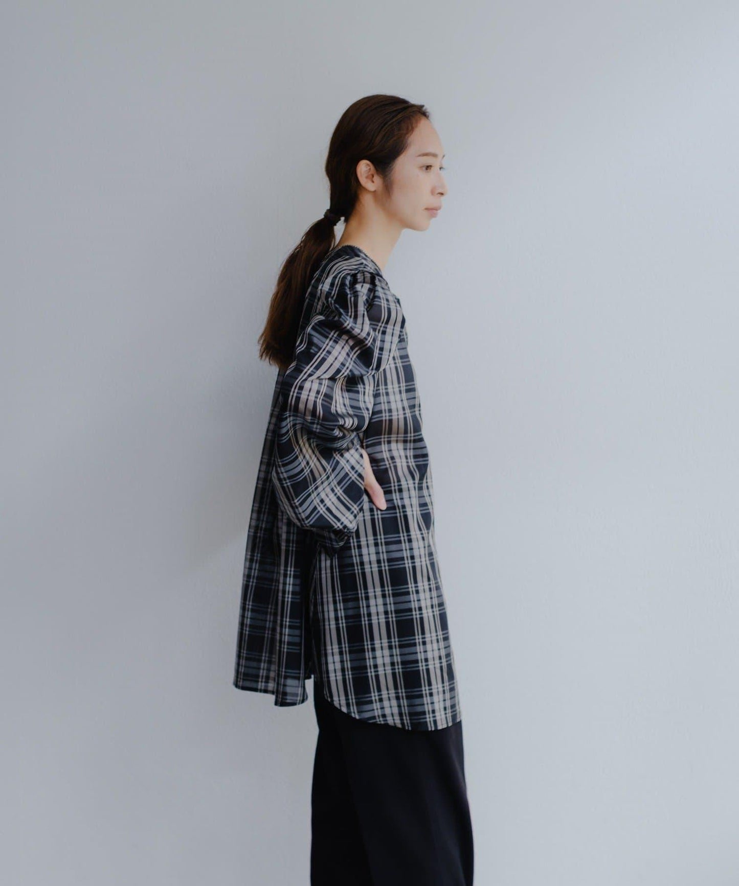 透視格紋上衣,袖子豐盈,單件就能讓你看起來美豔動人。面料採用 100%醋酸纖維製成的單色格紋提花面料,透明度適中。它具有良好的彈力和垂墜感,袖子的輪廓非常優美。顏色別緻,不會過於怪異,建議偶爾出席一些場合。