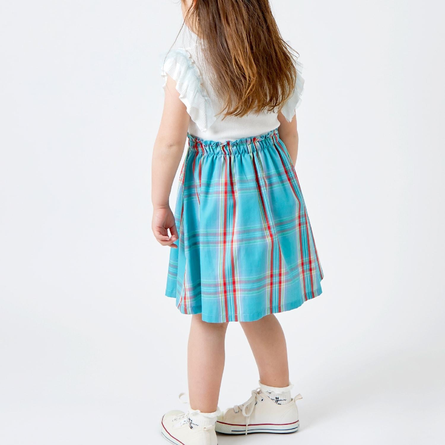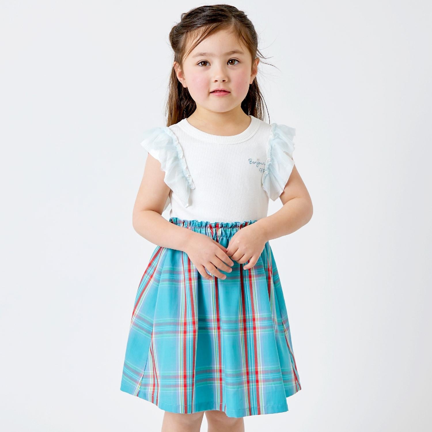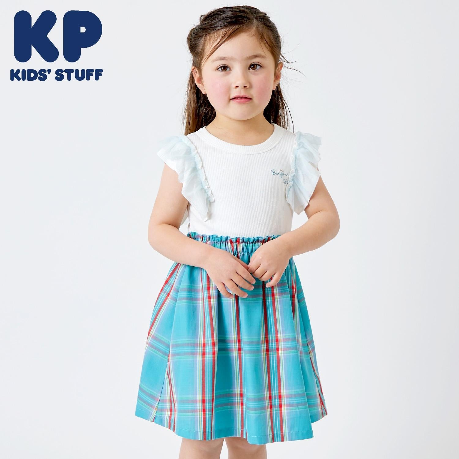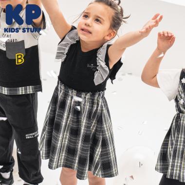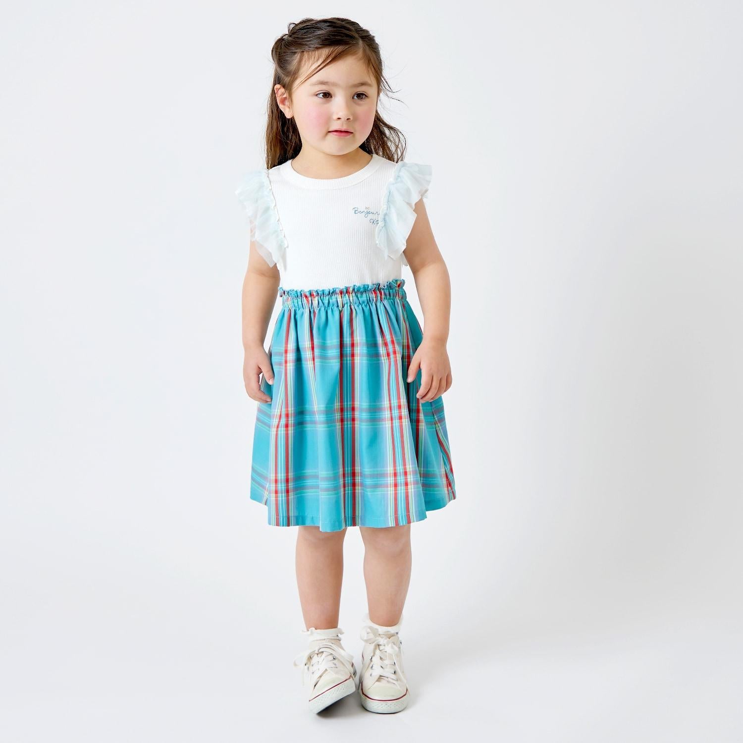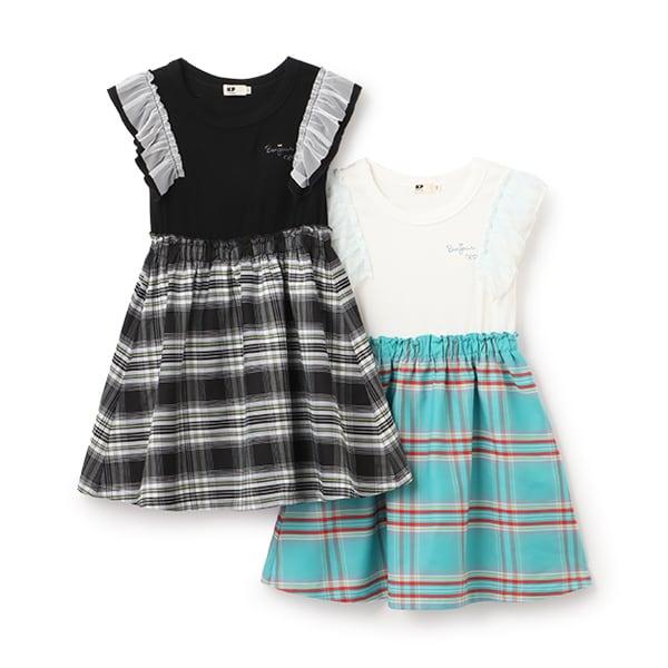 這款格紋連衣裙的上身是柔軟而富有彈性的 teleco,裙襬部分為 T/R 形。