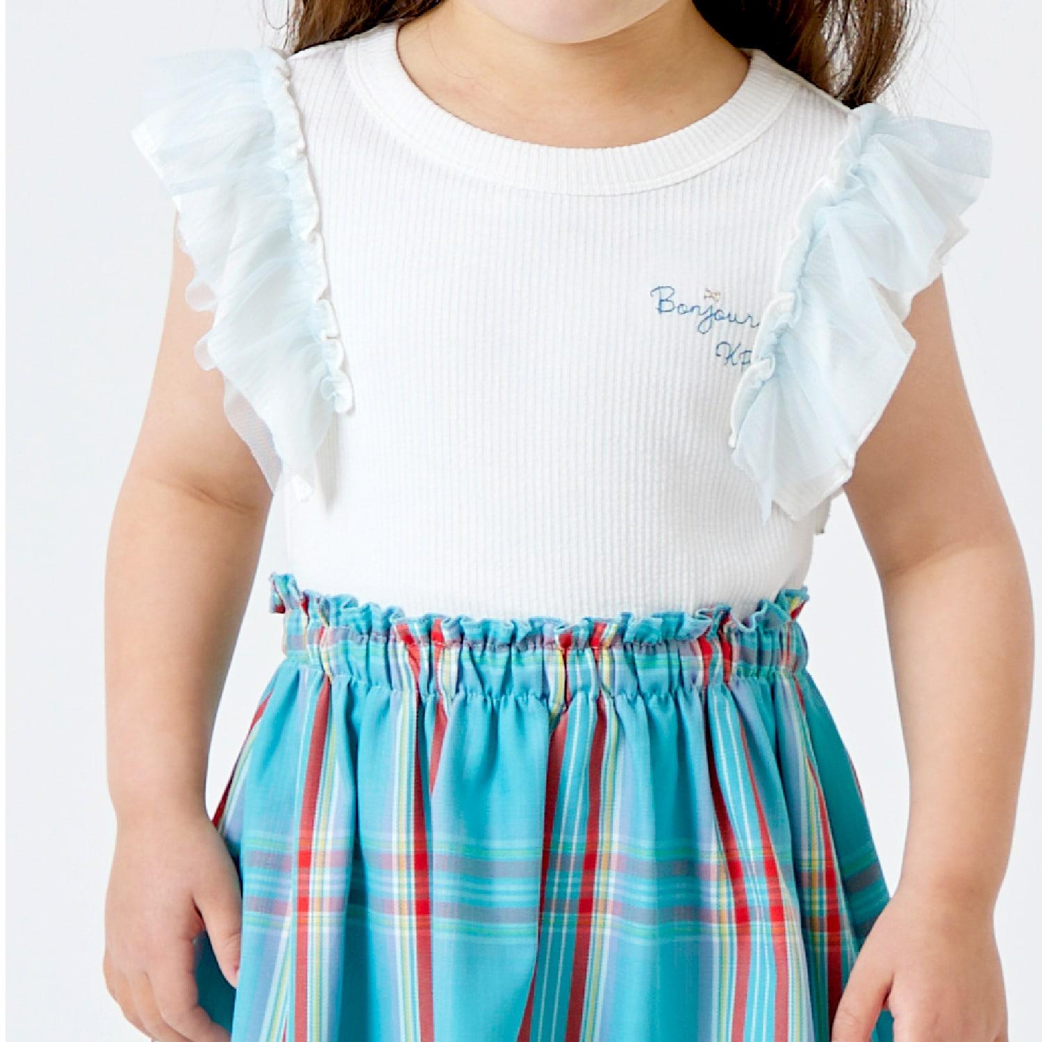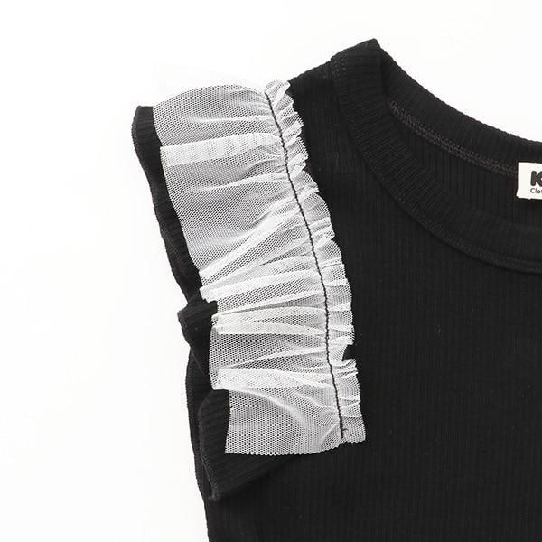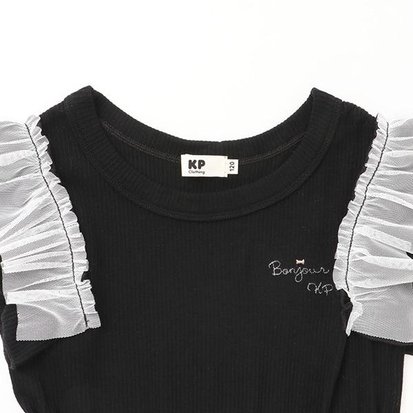 荷葉袖上覆透明薄紗,設計清新優雅。