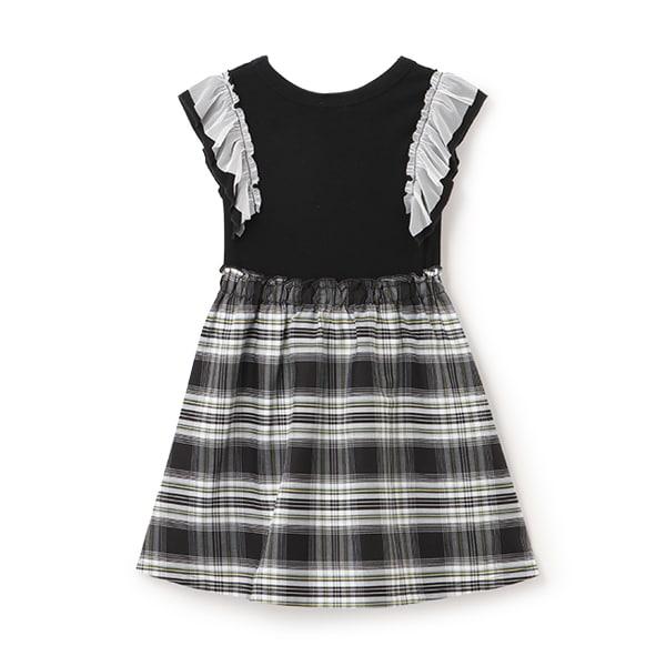 格紋拼接荷葉袖連衣裙
