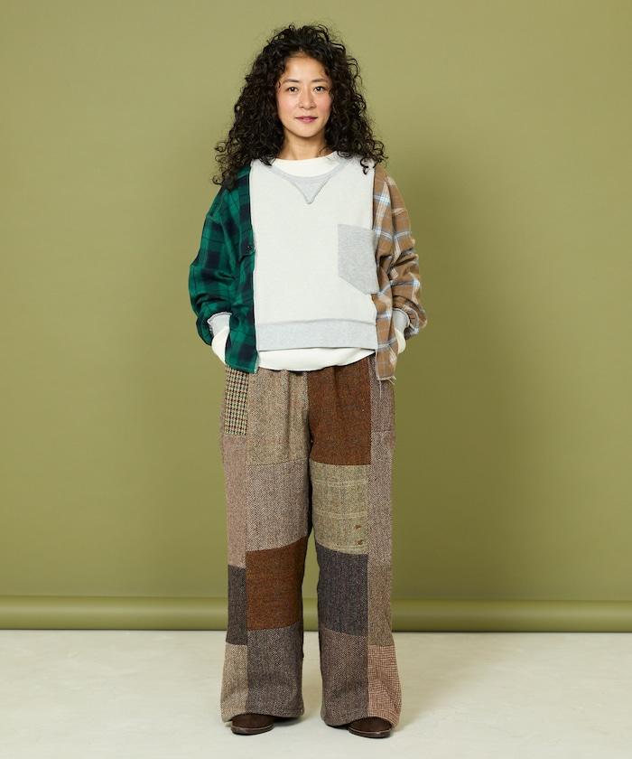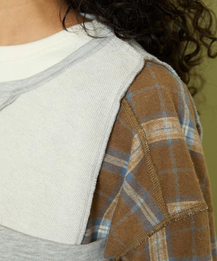 運動衫的正反面、袖口和口袋都保留了原樣,而兩側則結合了復古風格的法蘭絨襯衫。