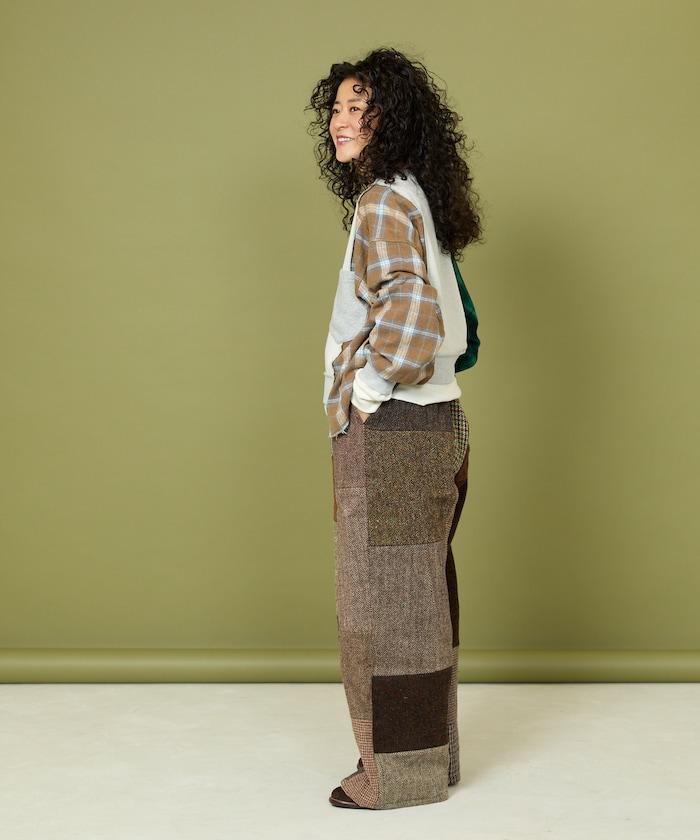 兩側使用不同顏色和圖案的面料,下襬剪裁出復古的外觀和感覺。