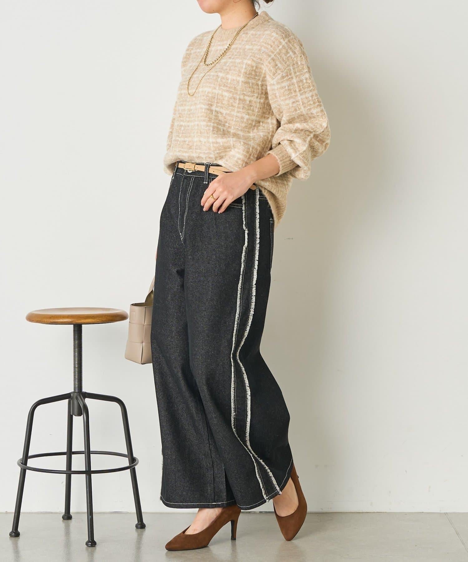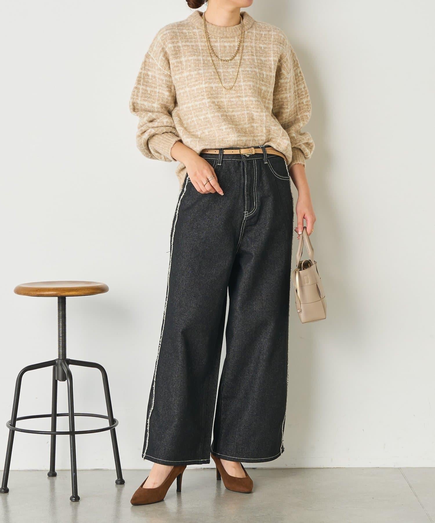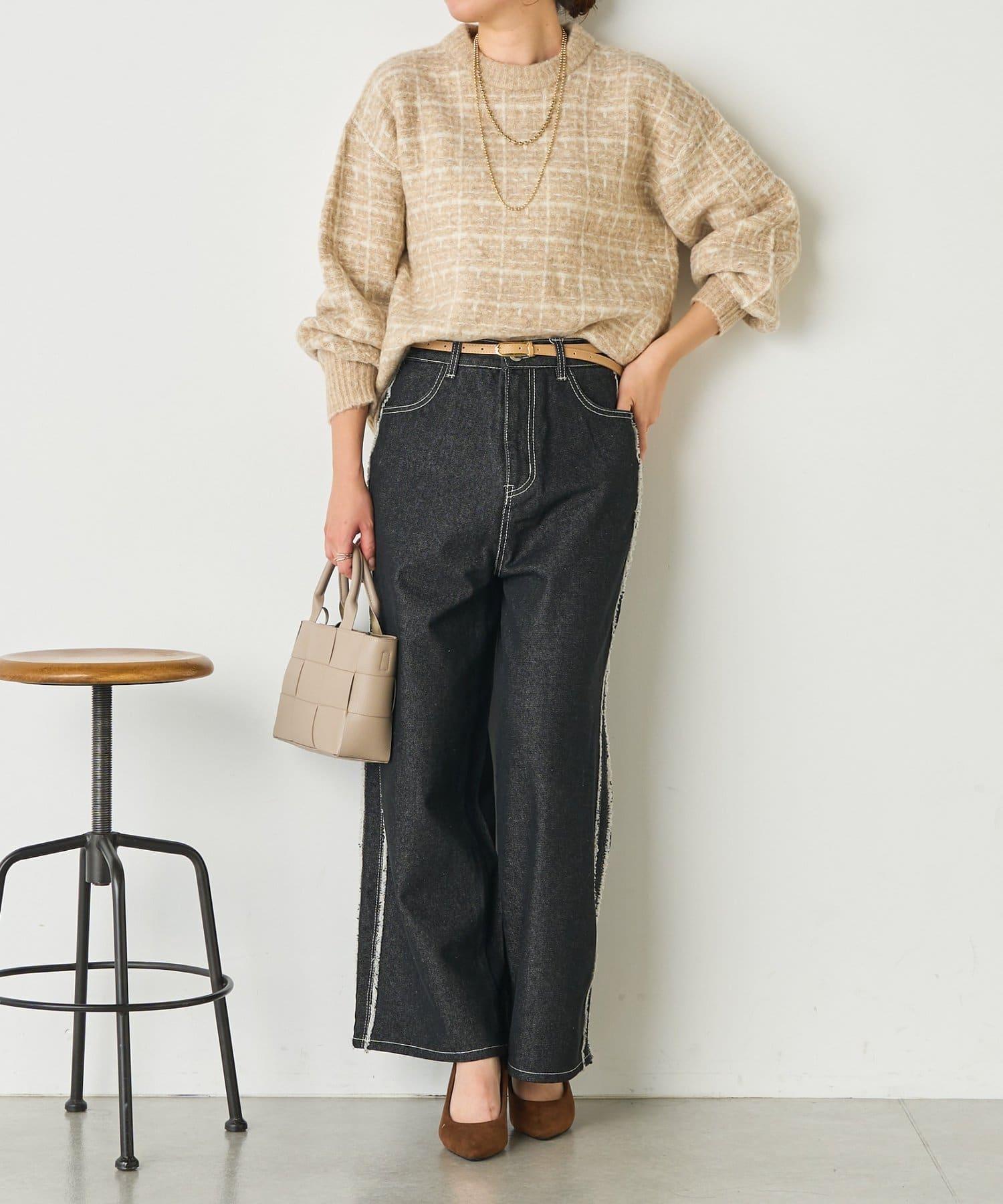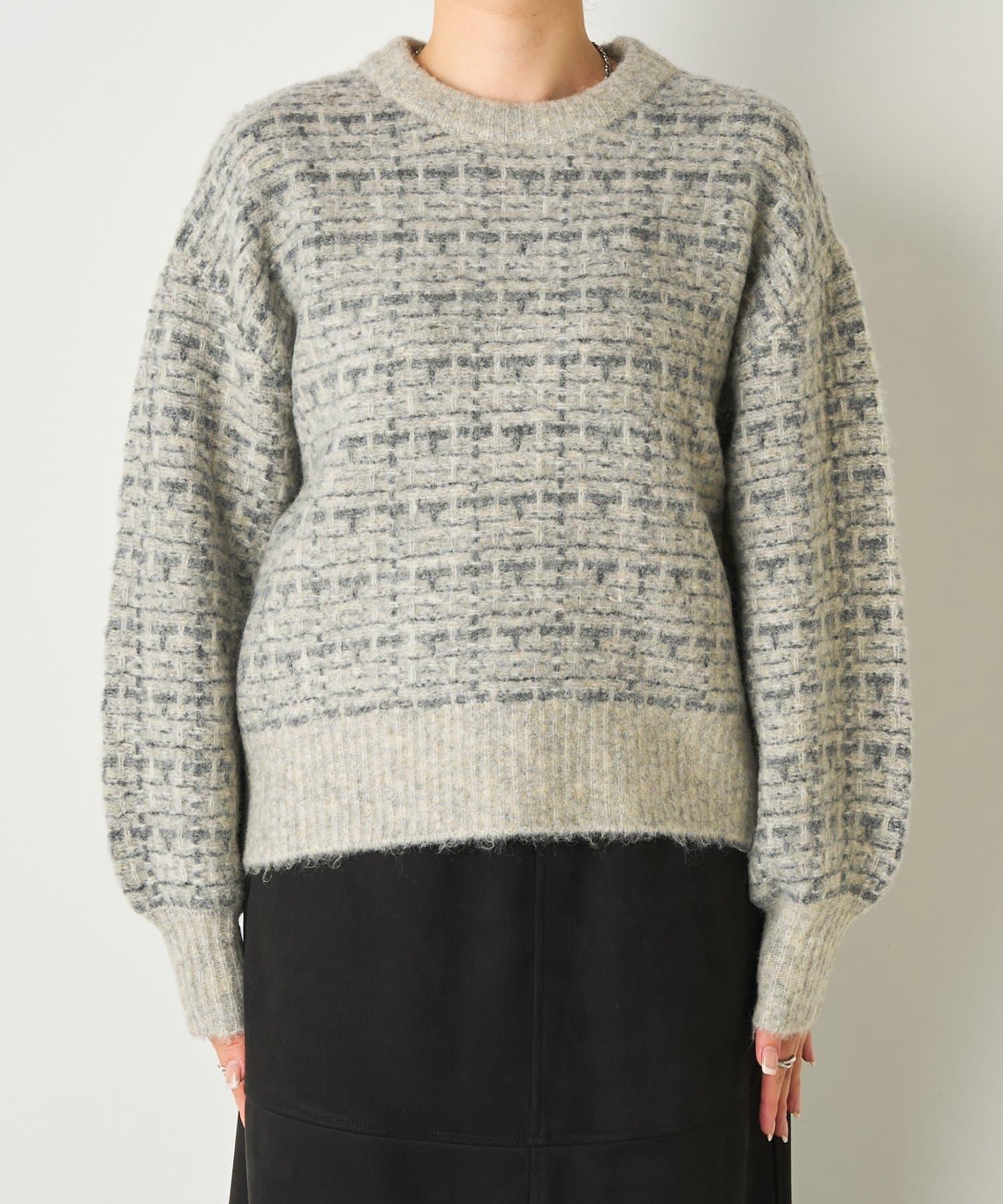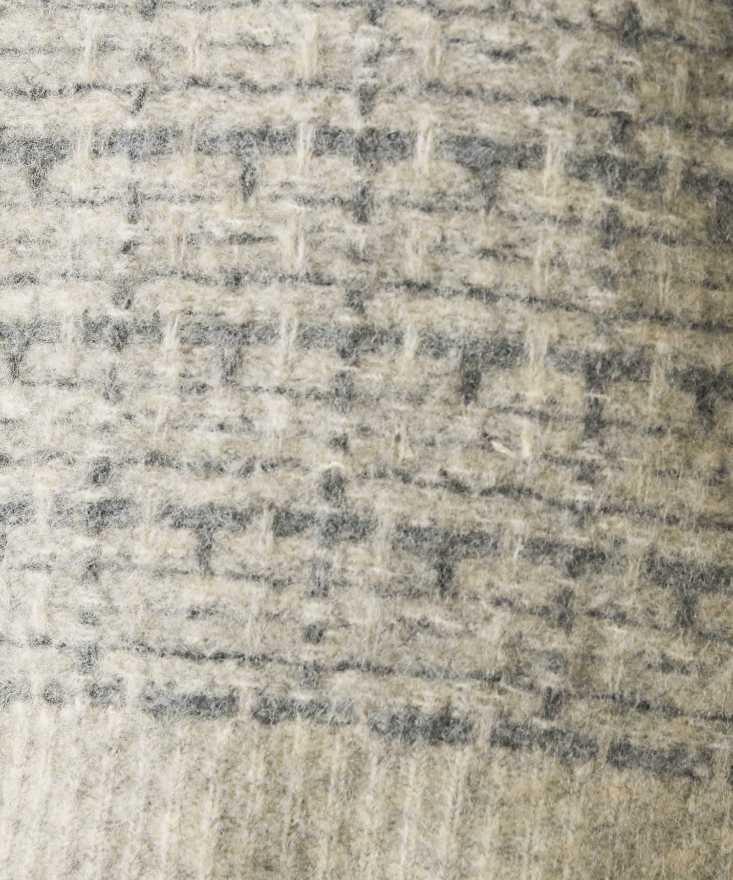 質地不均勻的針織面料非常搶眼,格子圓領針織面料。