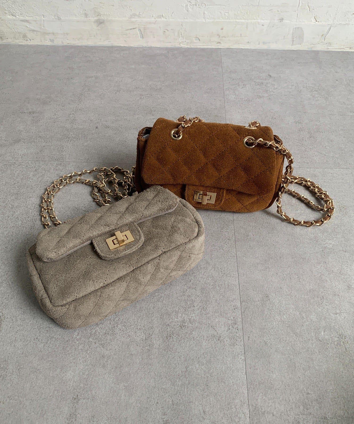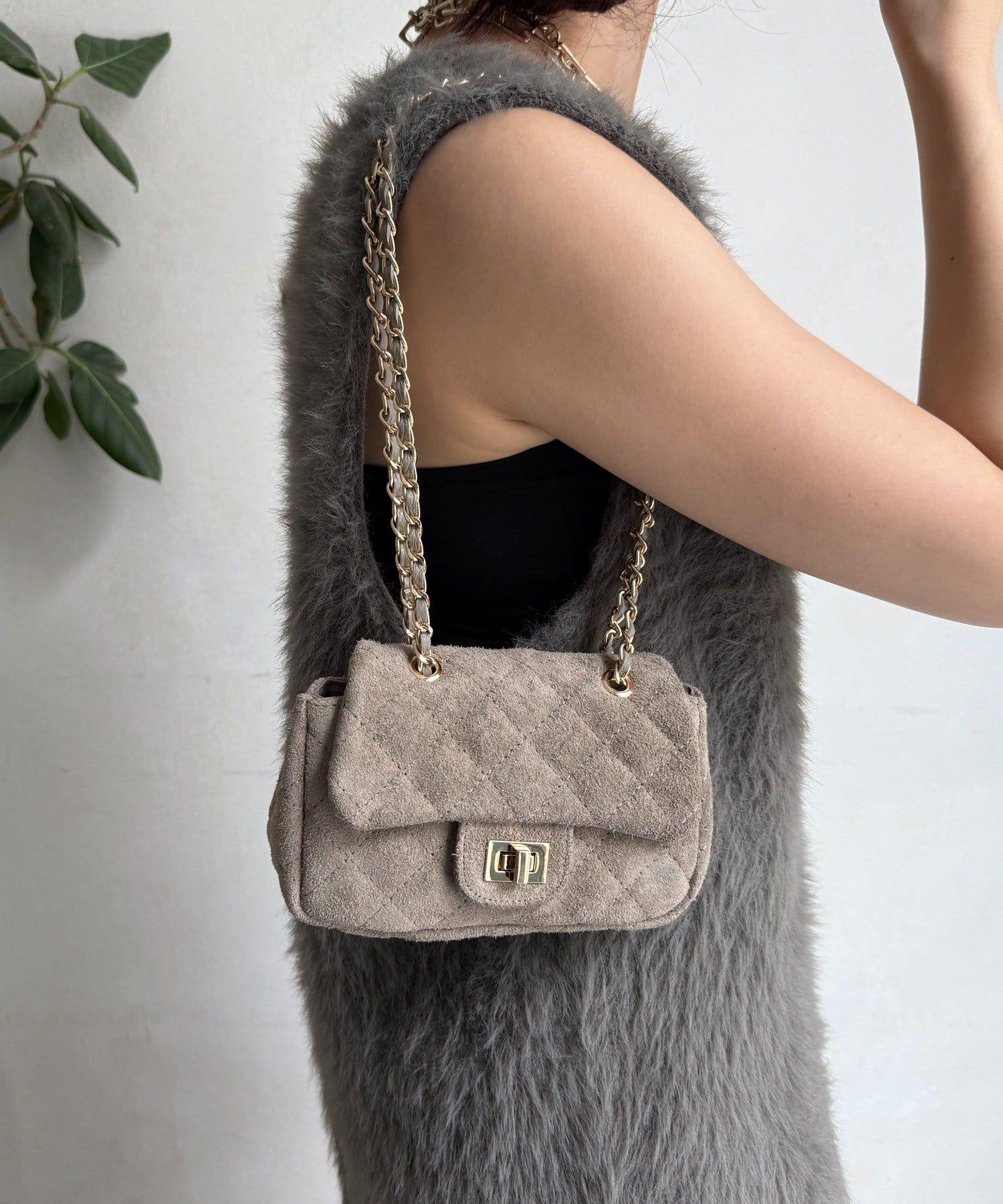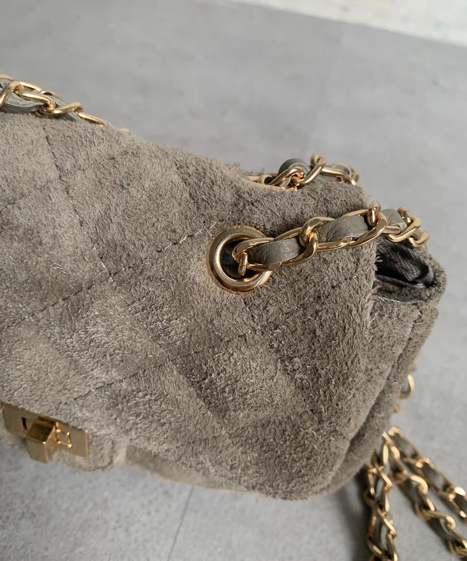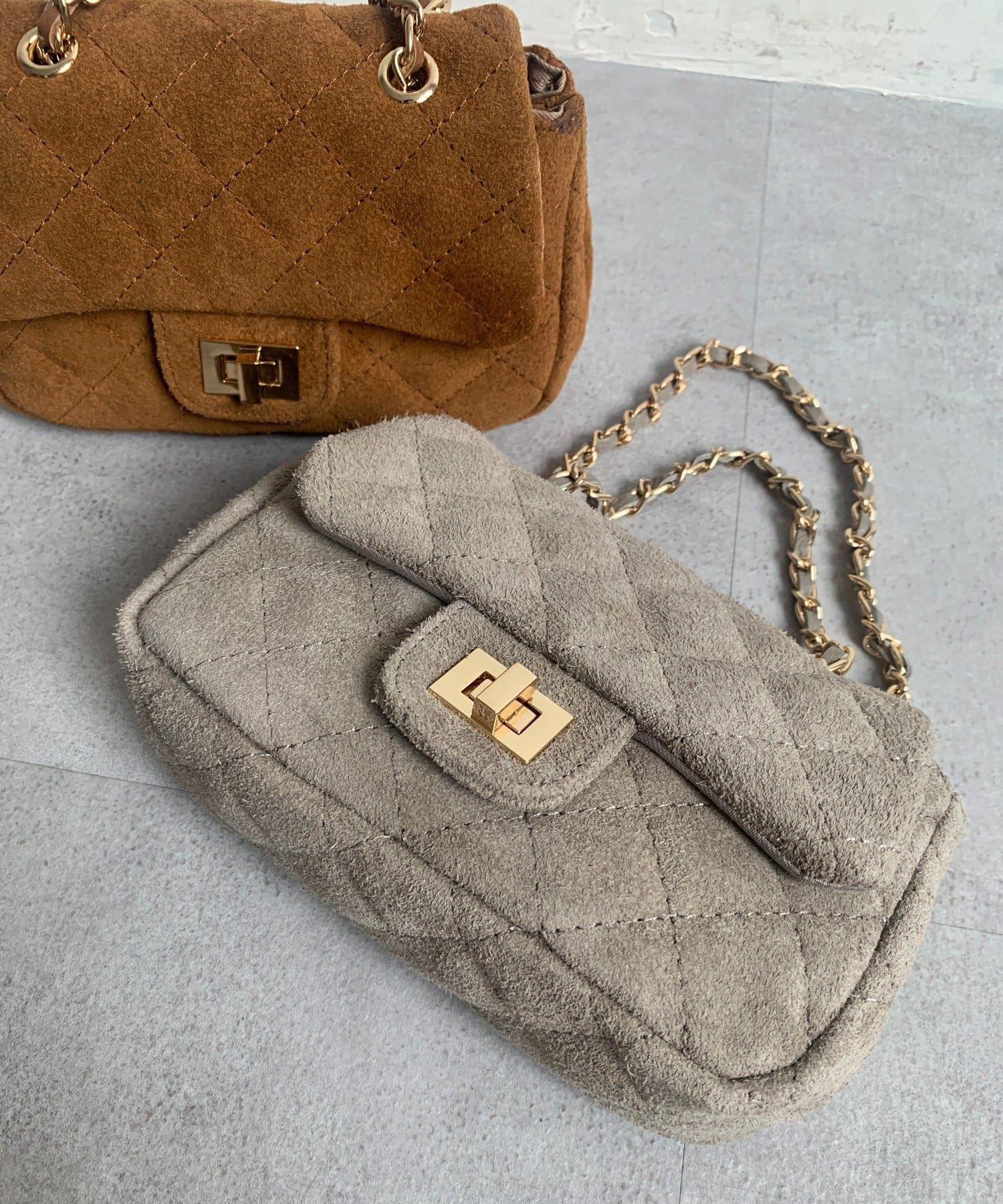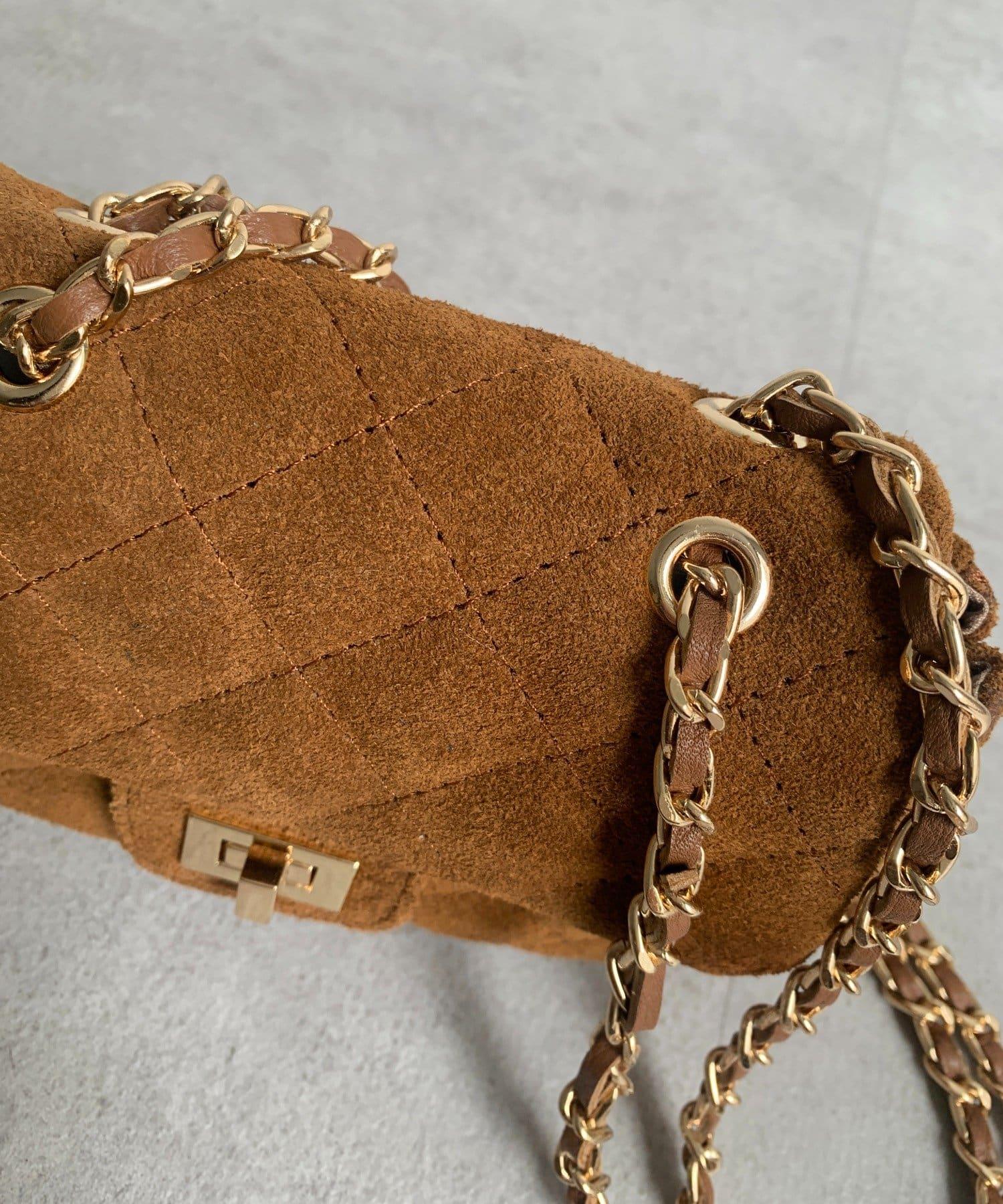 鏈條式手提包現在有了時髦的麂皮材質!