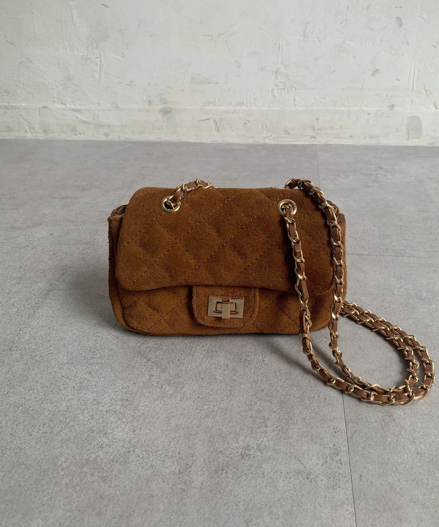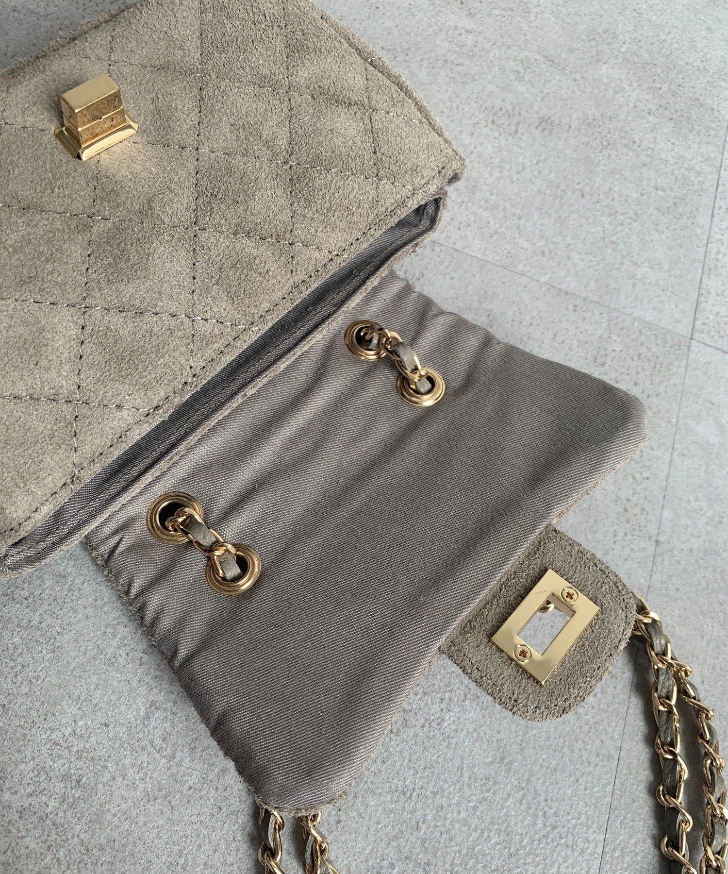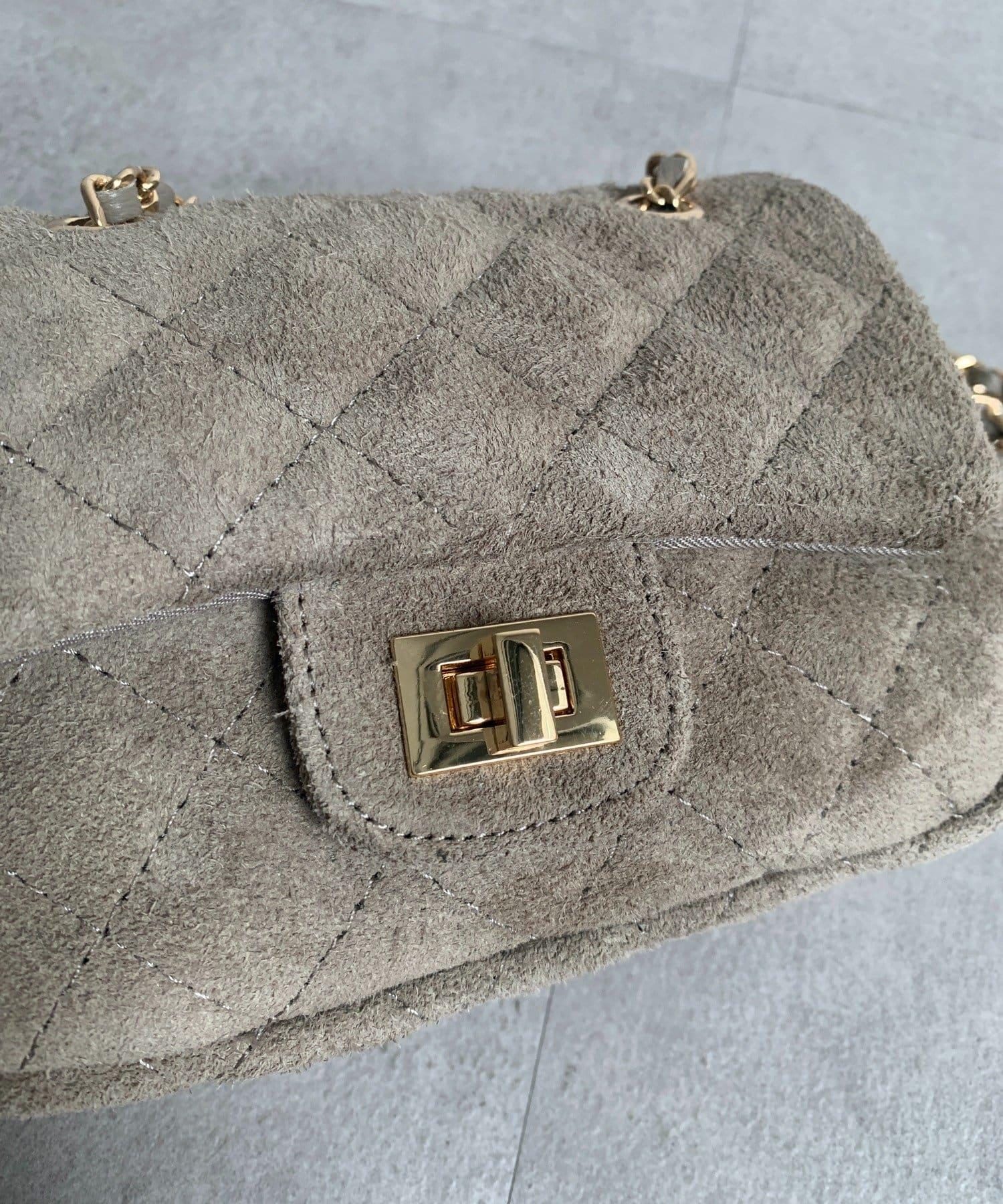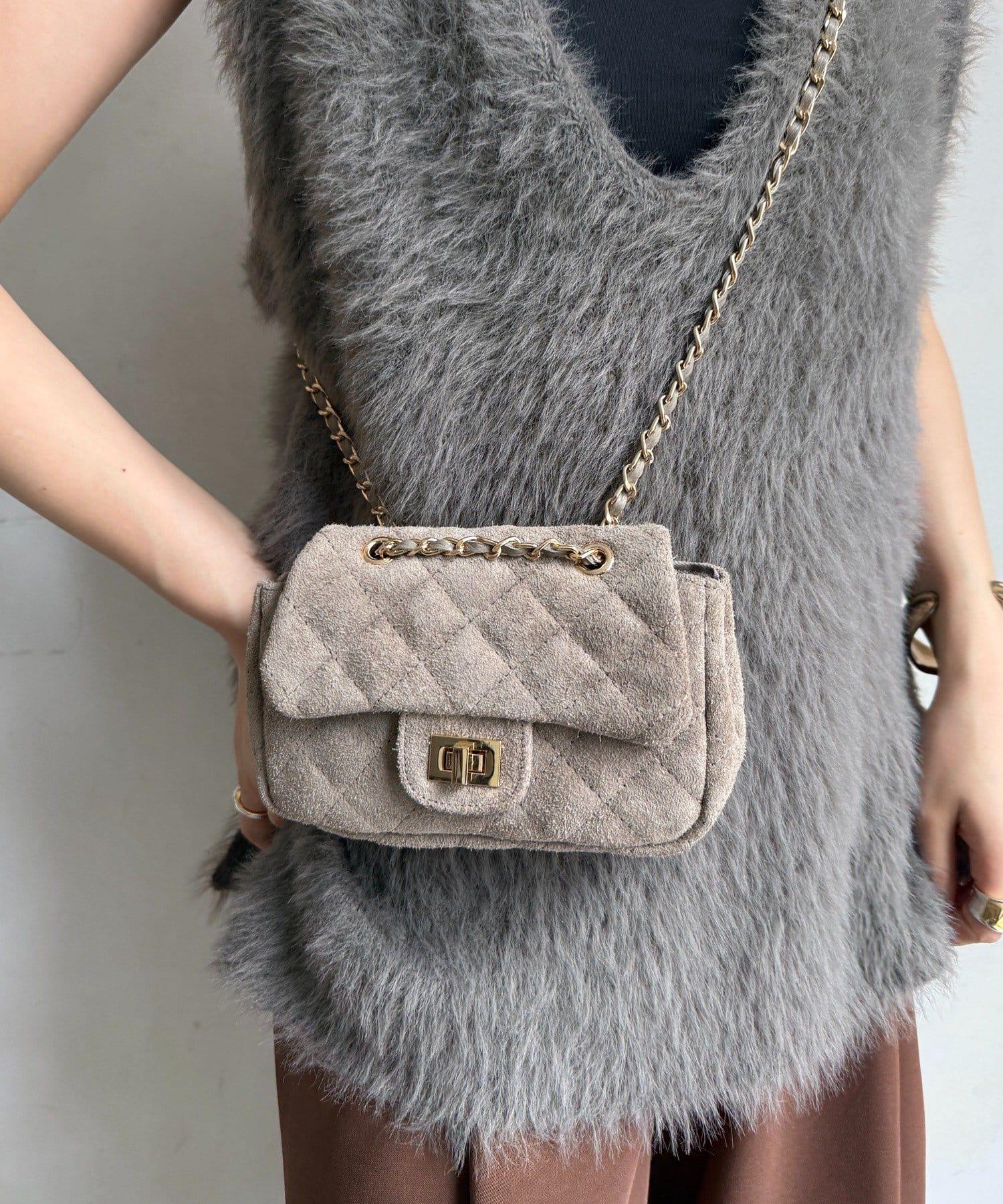 鏈條式手提包現在有了時髦的麂皮材質!