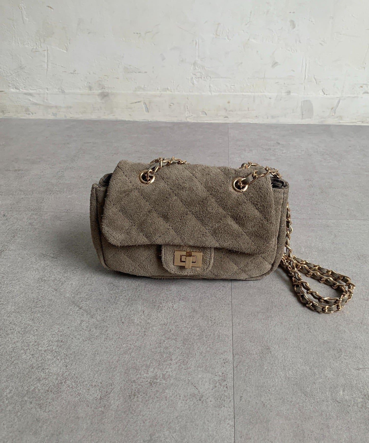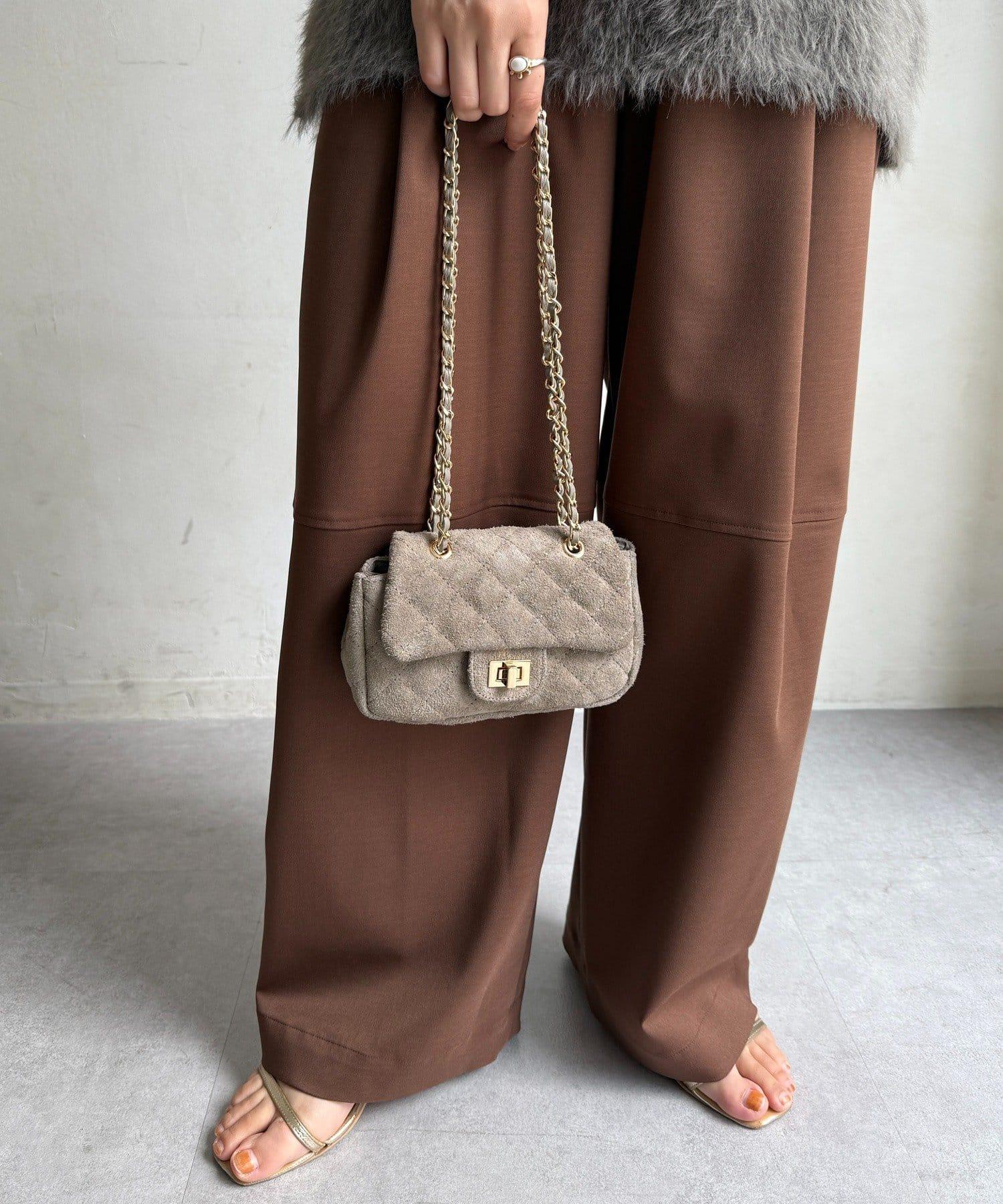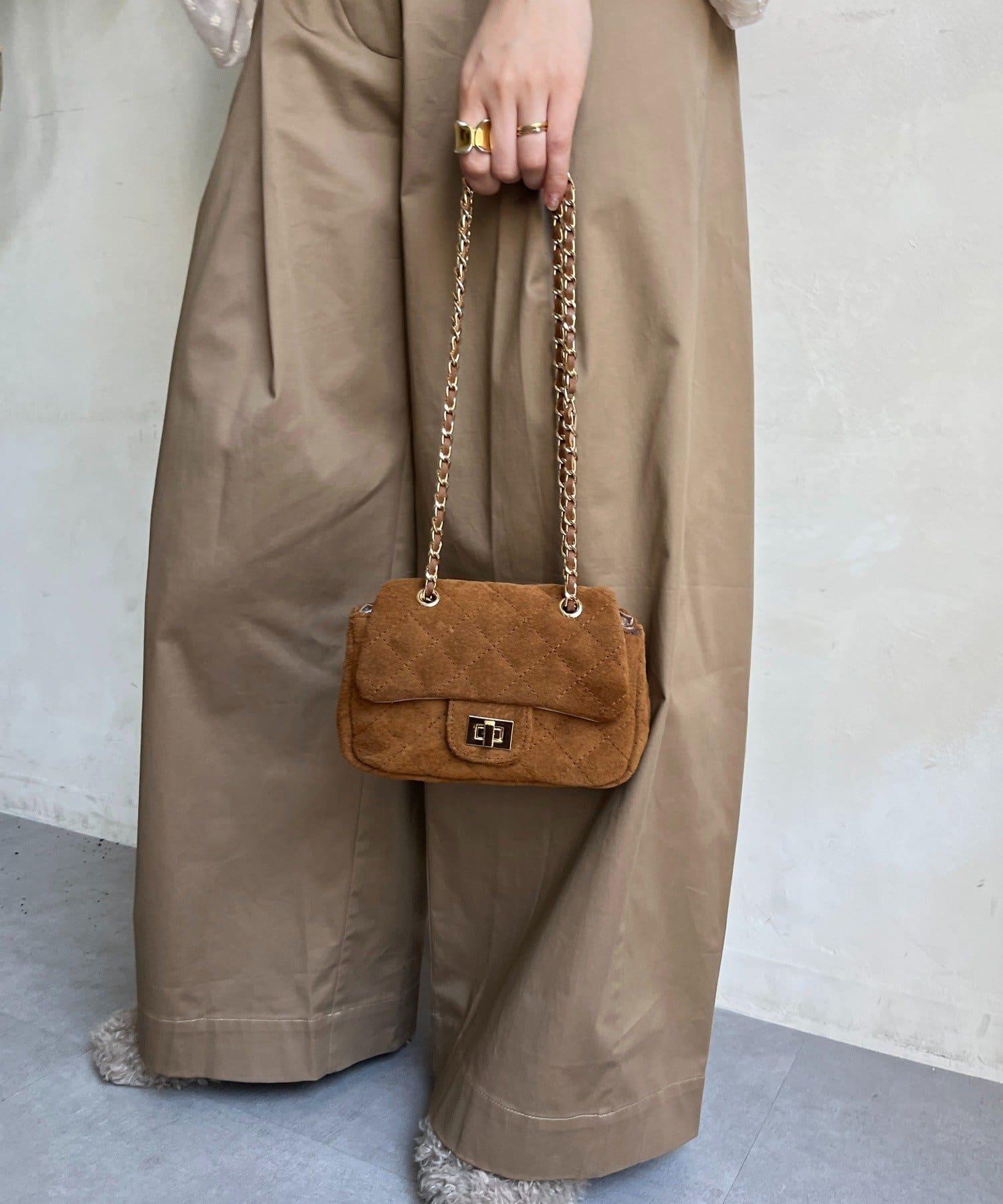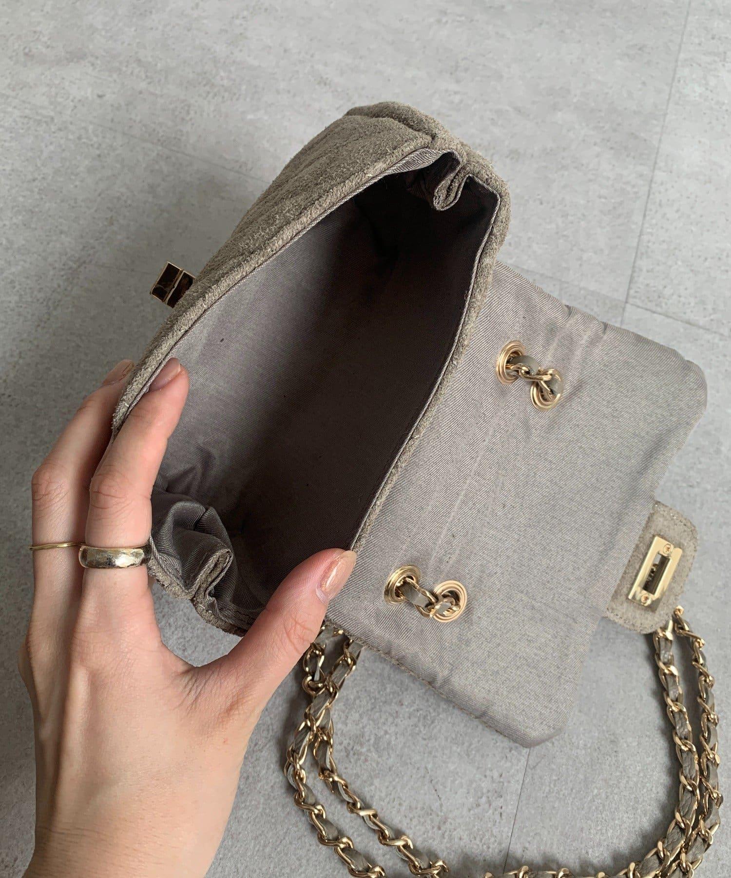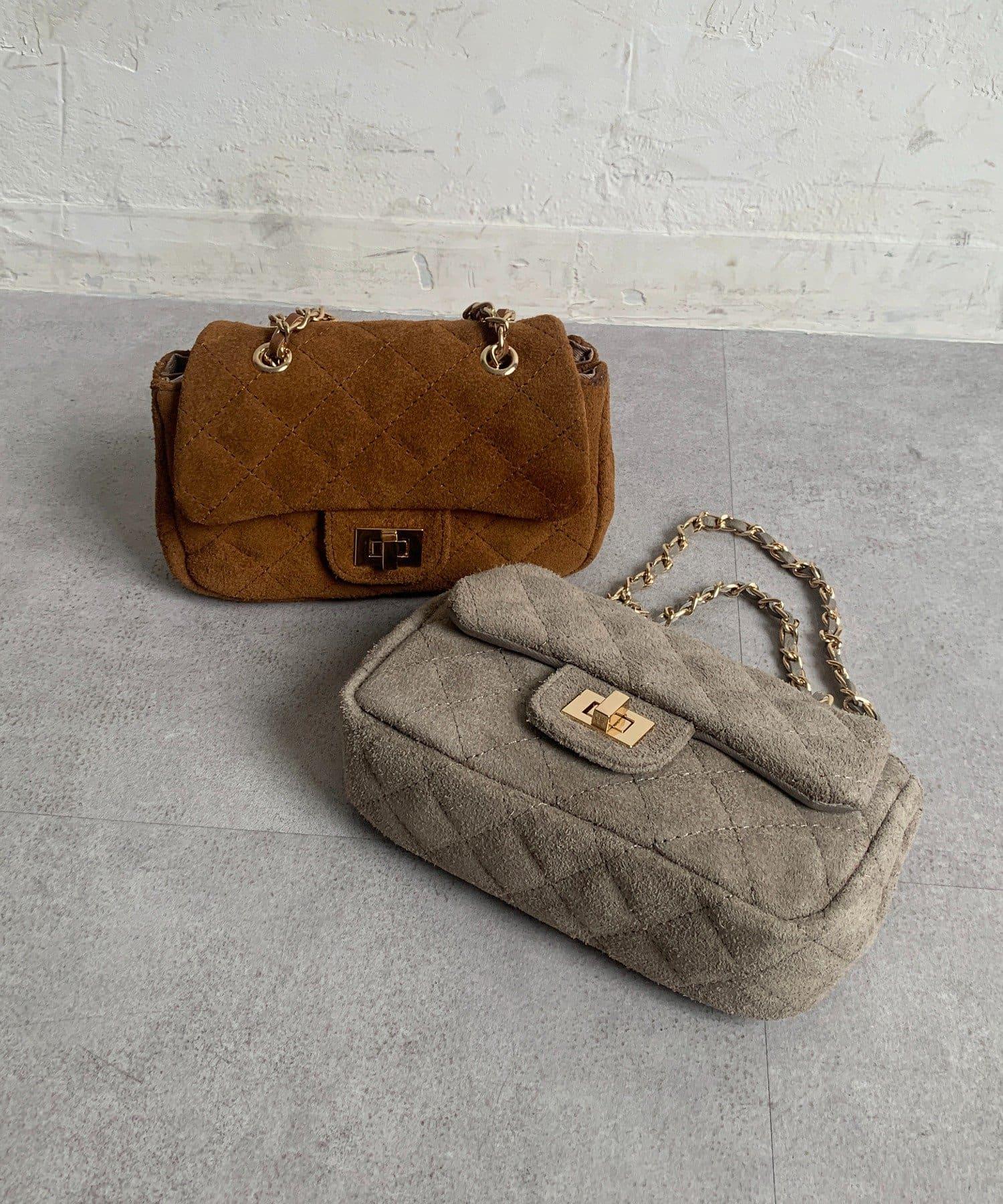 鏈條式手提包現在有了時髦的麂皮材質!