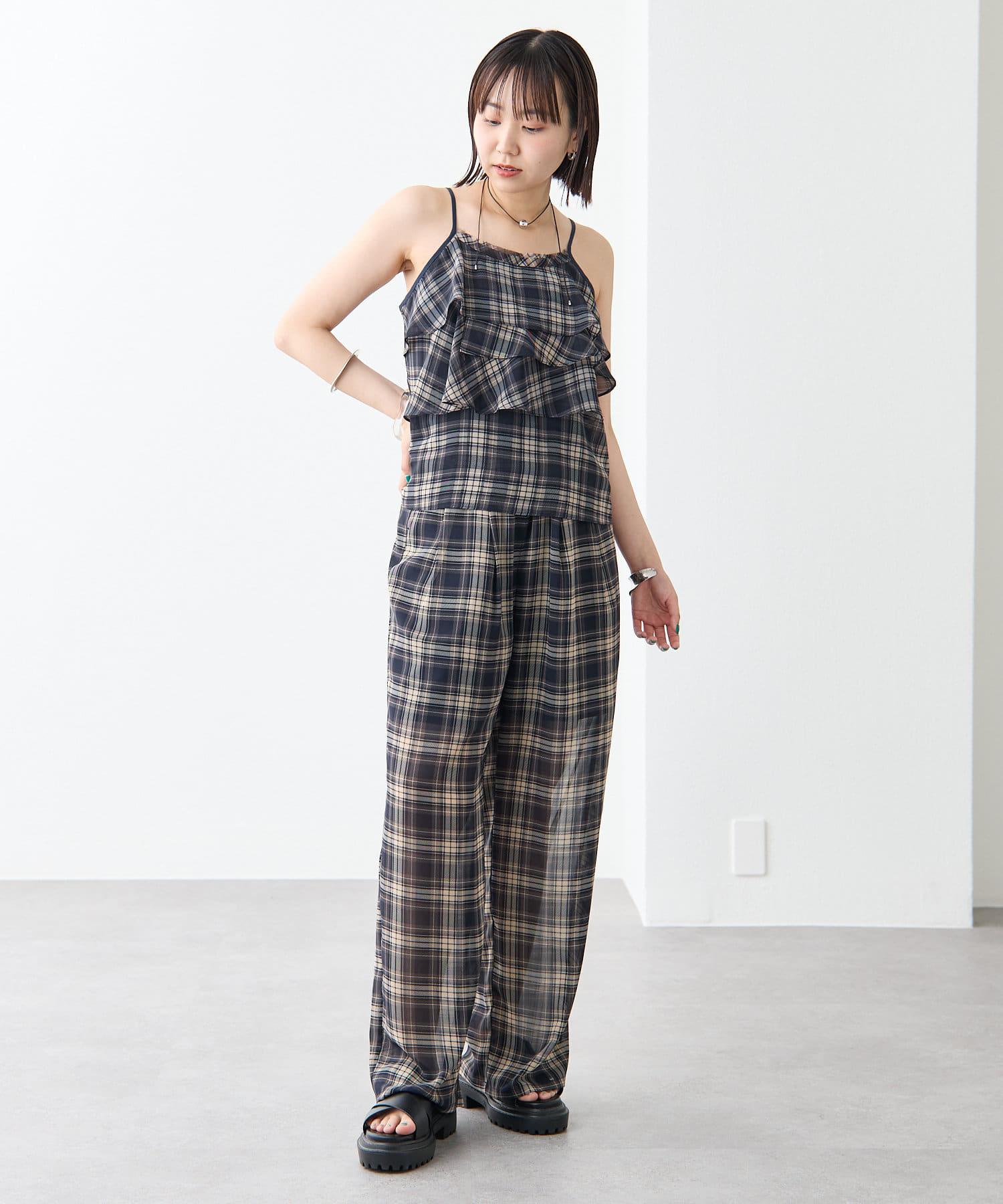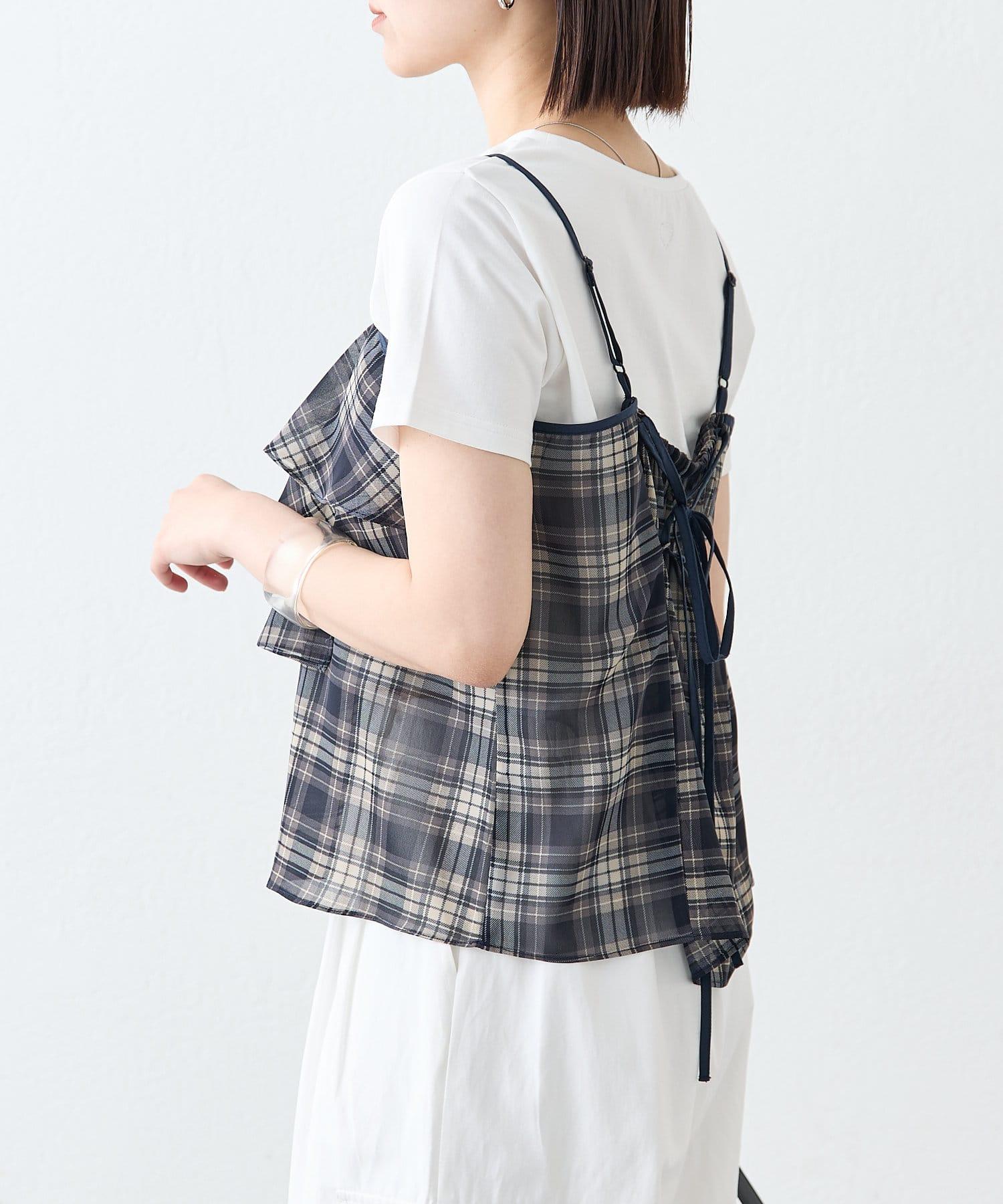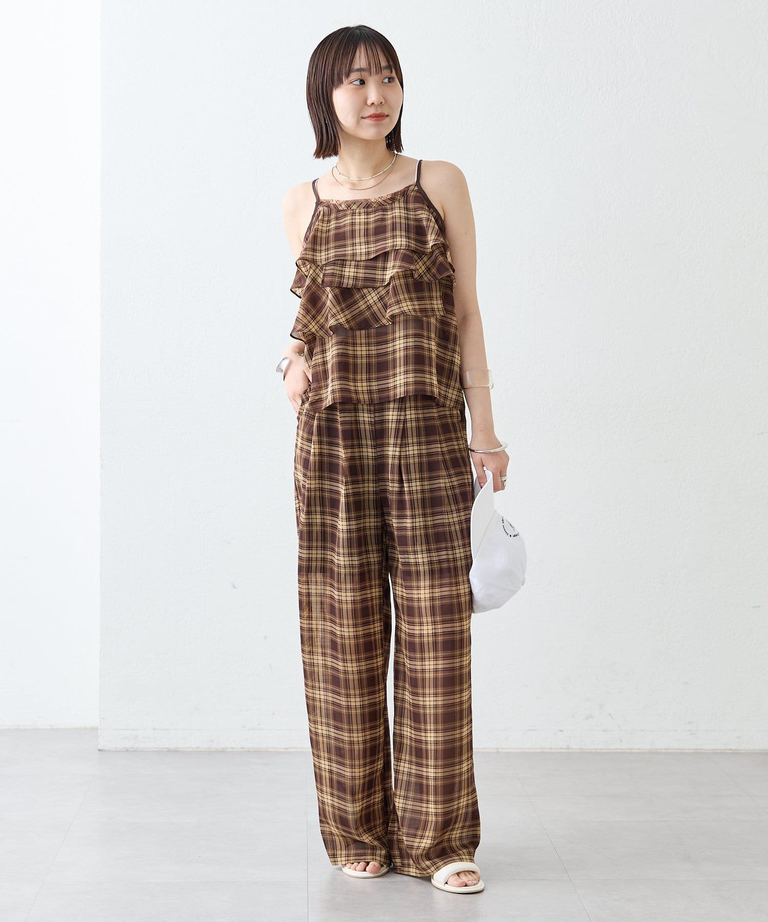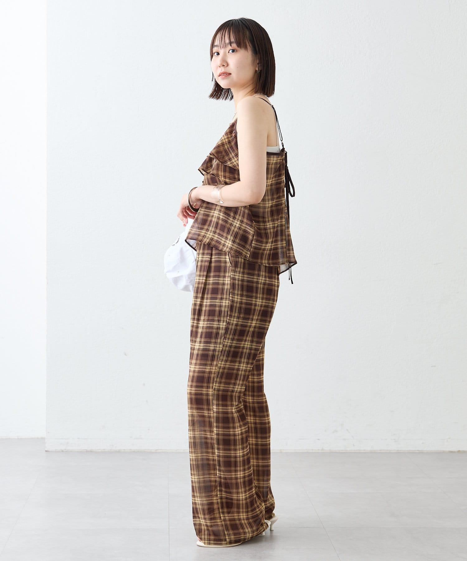 柔軟的面料和褶邊設計給人一種可愛的感覺,而格紋圖案則給人一種休閒的感覺。