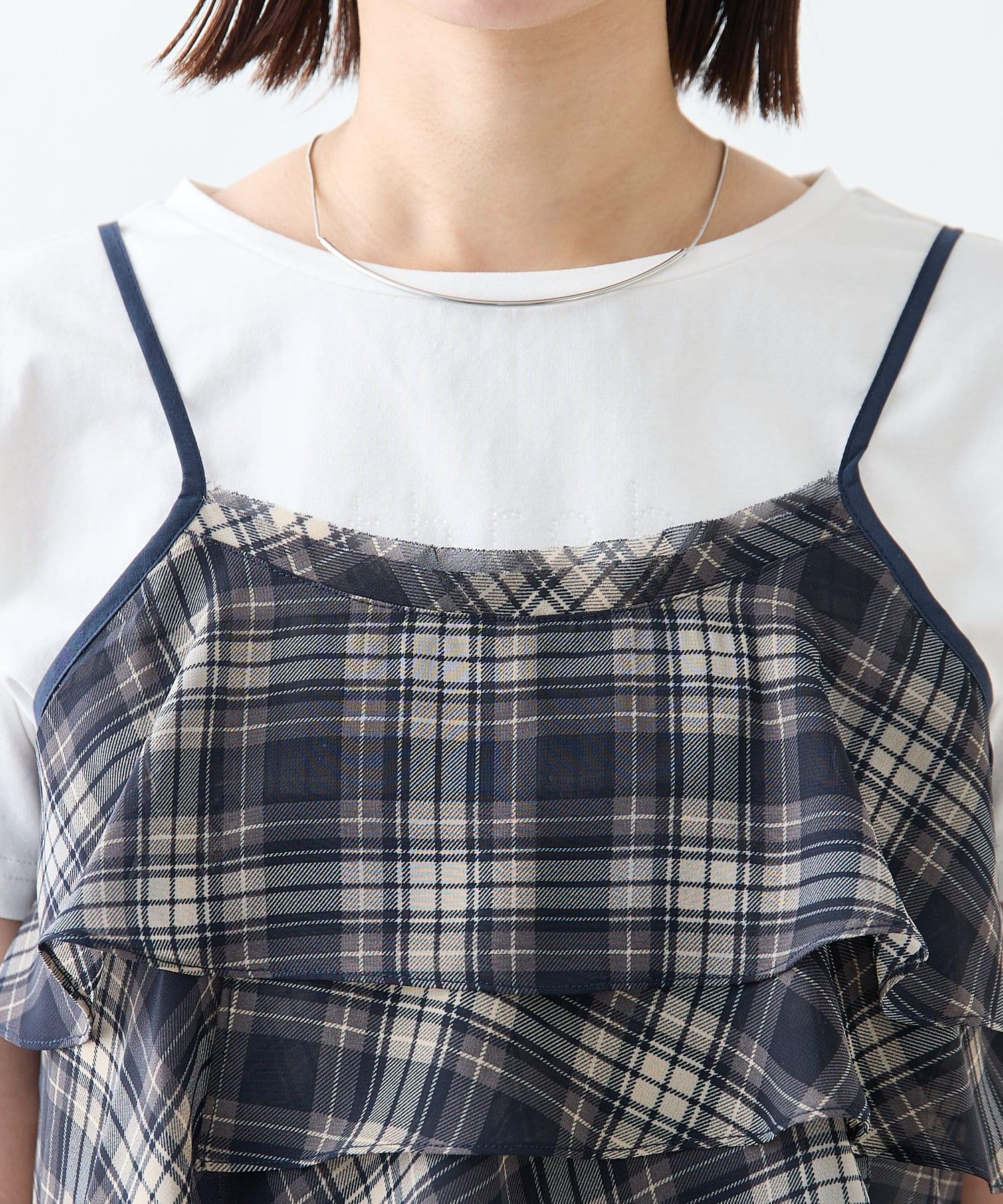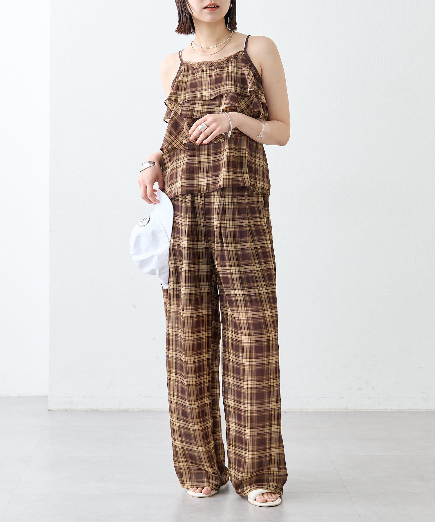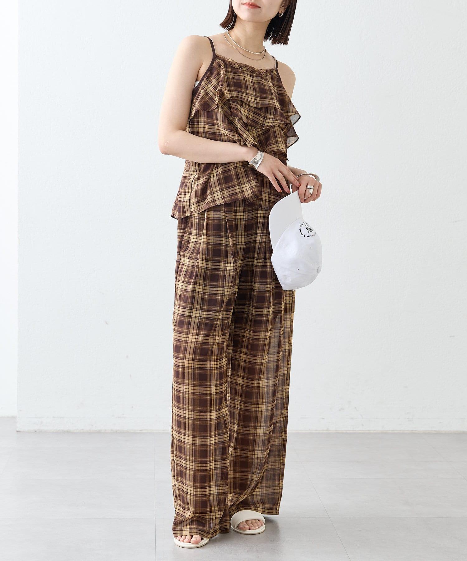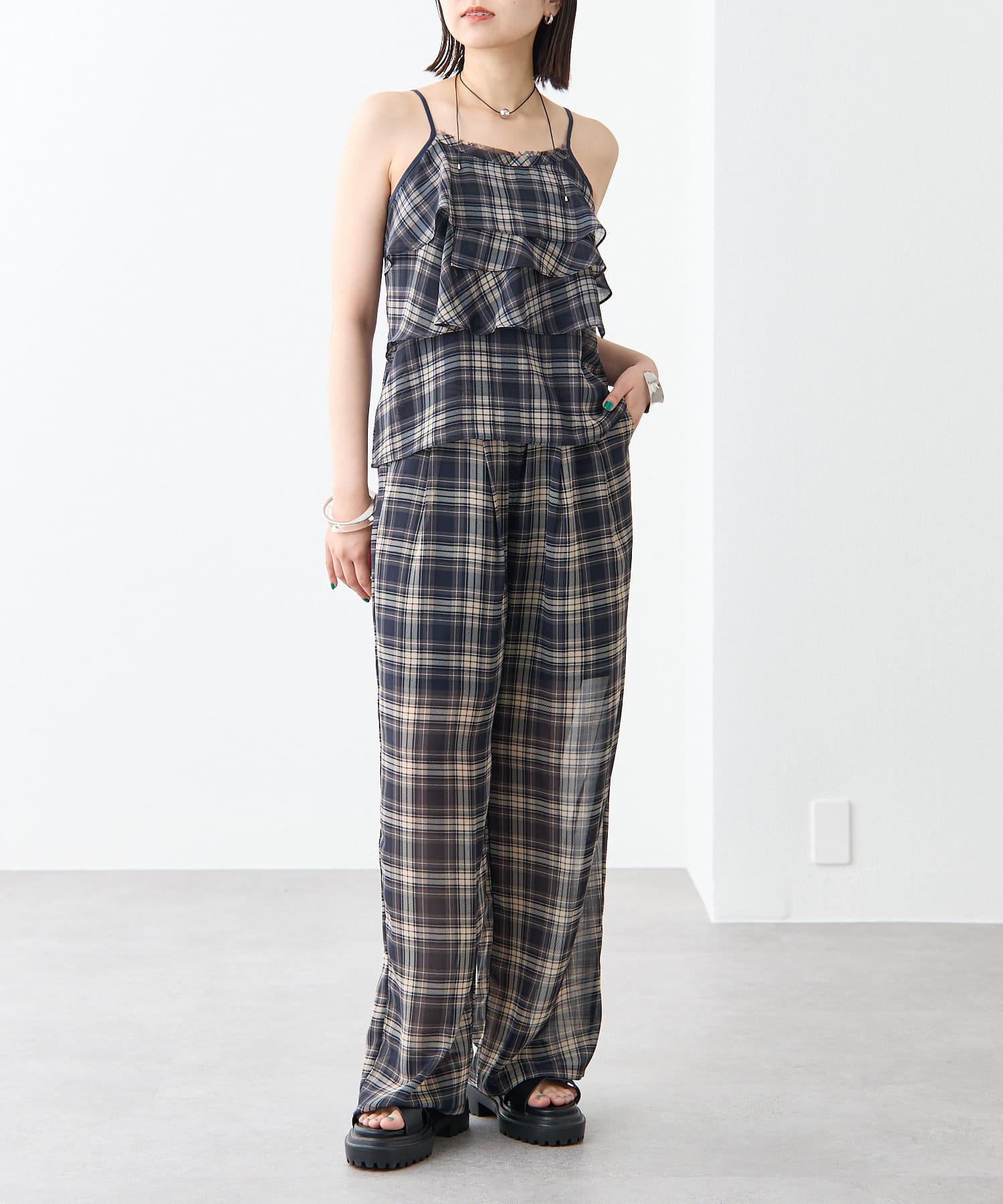 柔軟的面料和褶邊設計給人一種可愛的感覺,而格紋圖案則給人一種休閒的感覺。