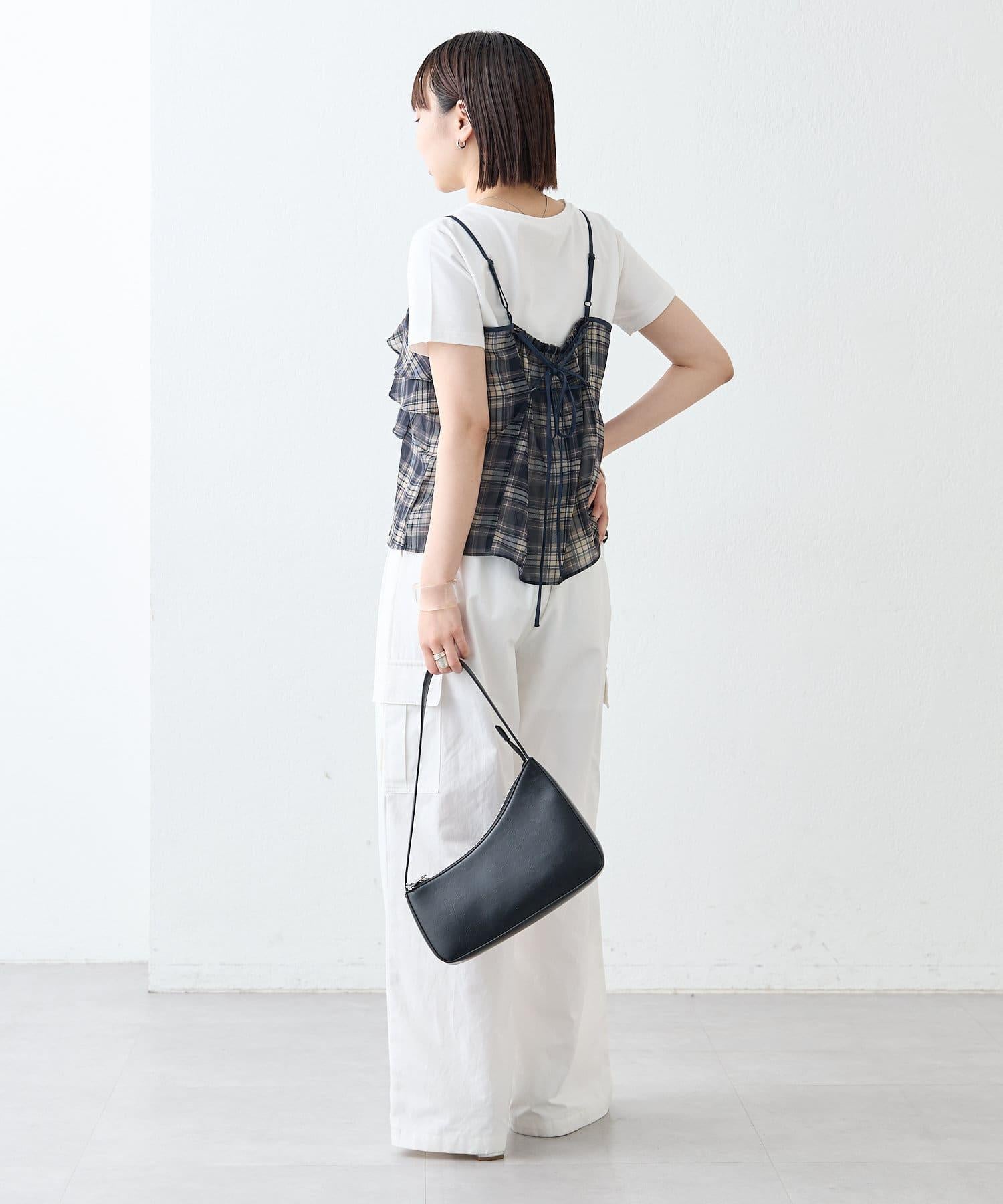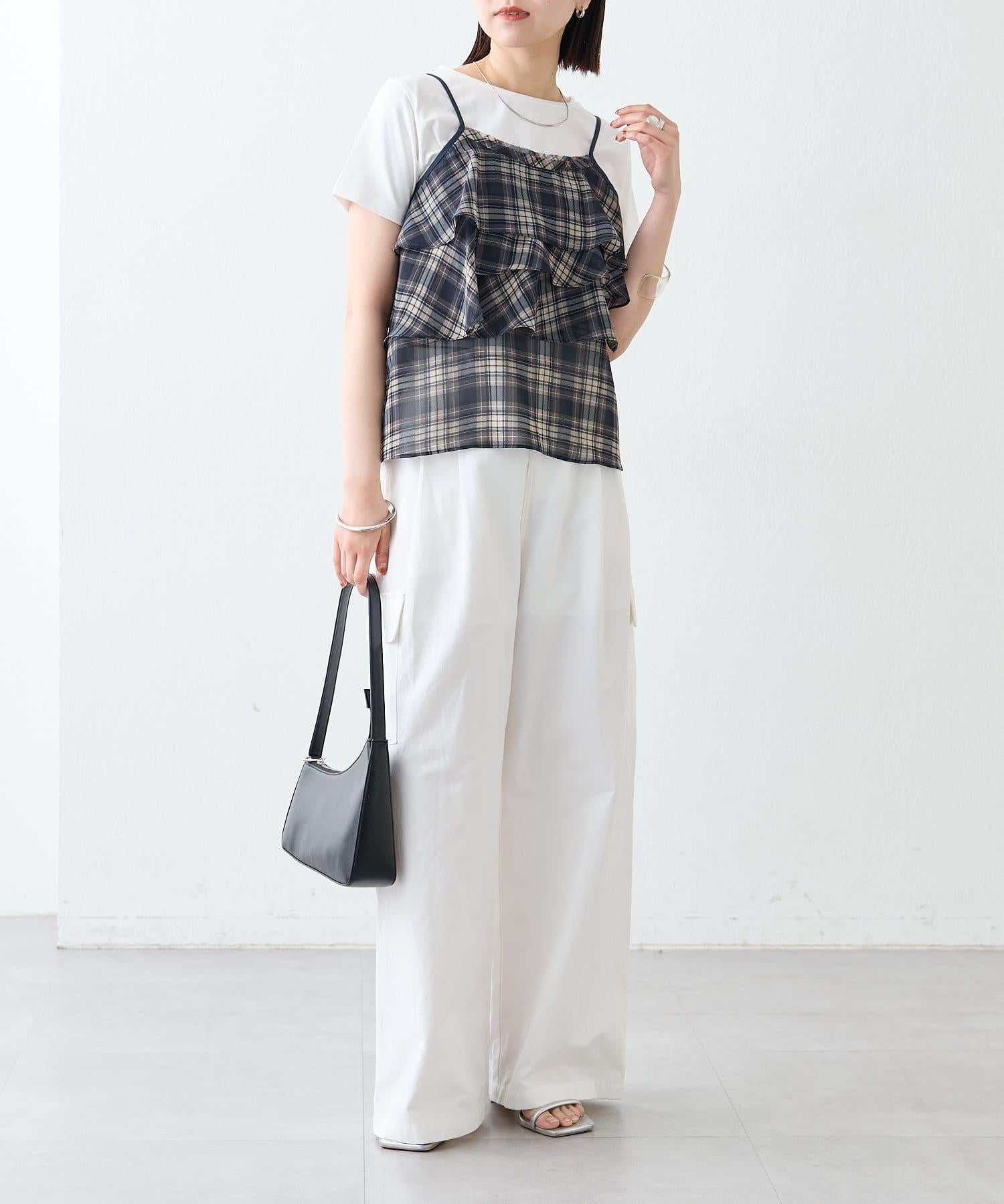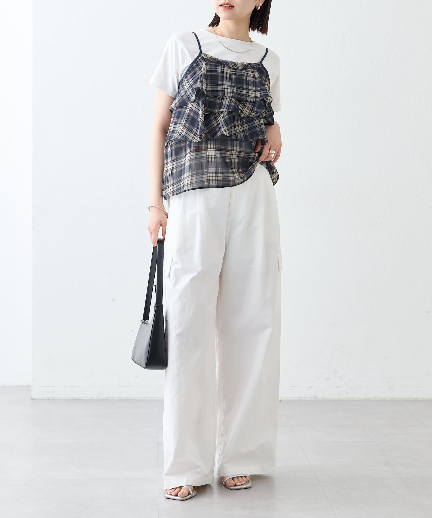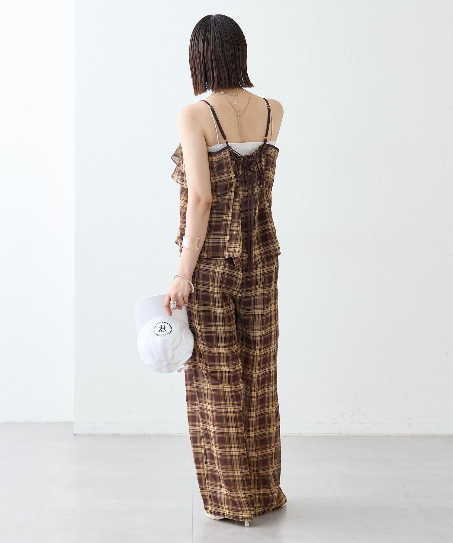 柔軟的面料和褶邊設計給人一種可愛的感覺,而格紋圖案則給人一種休閒的感覺。