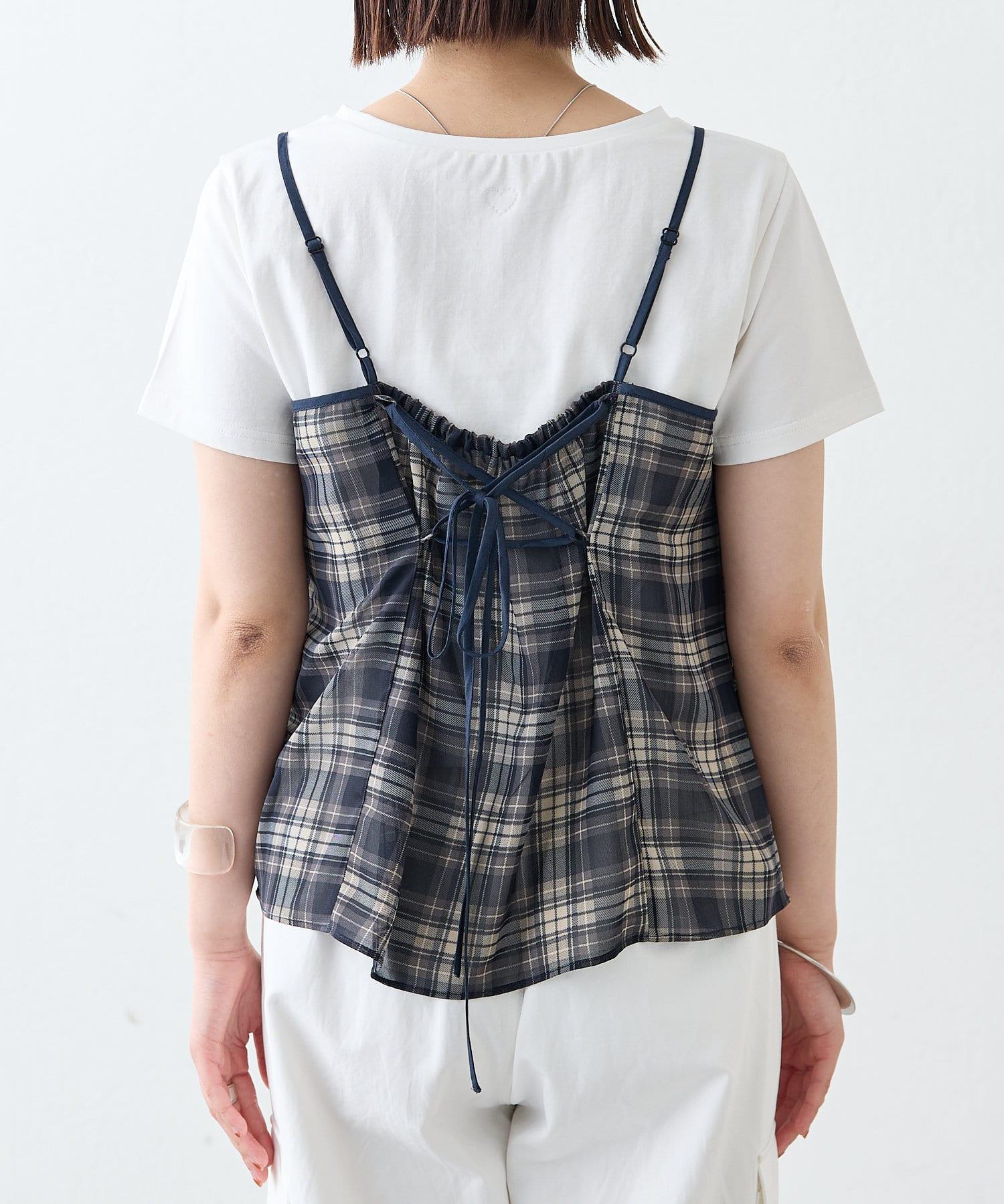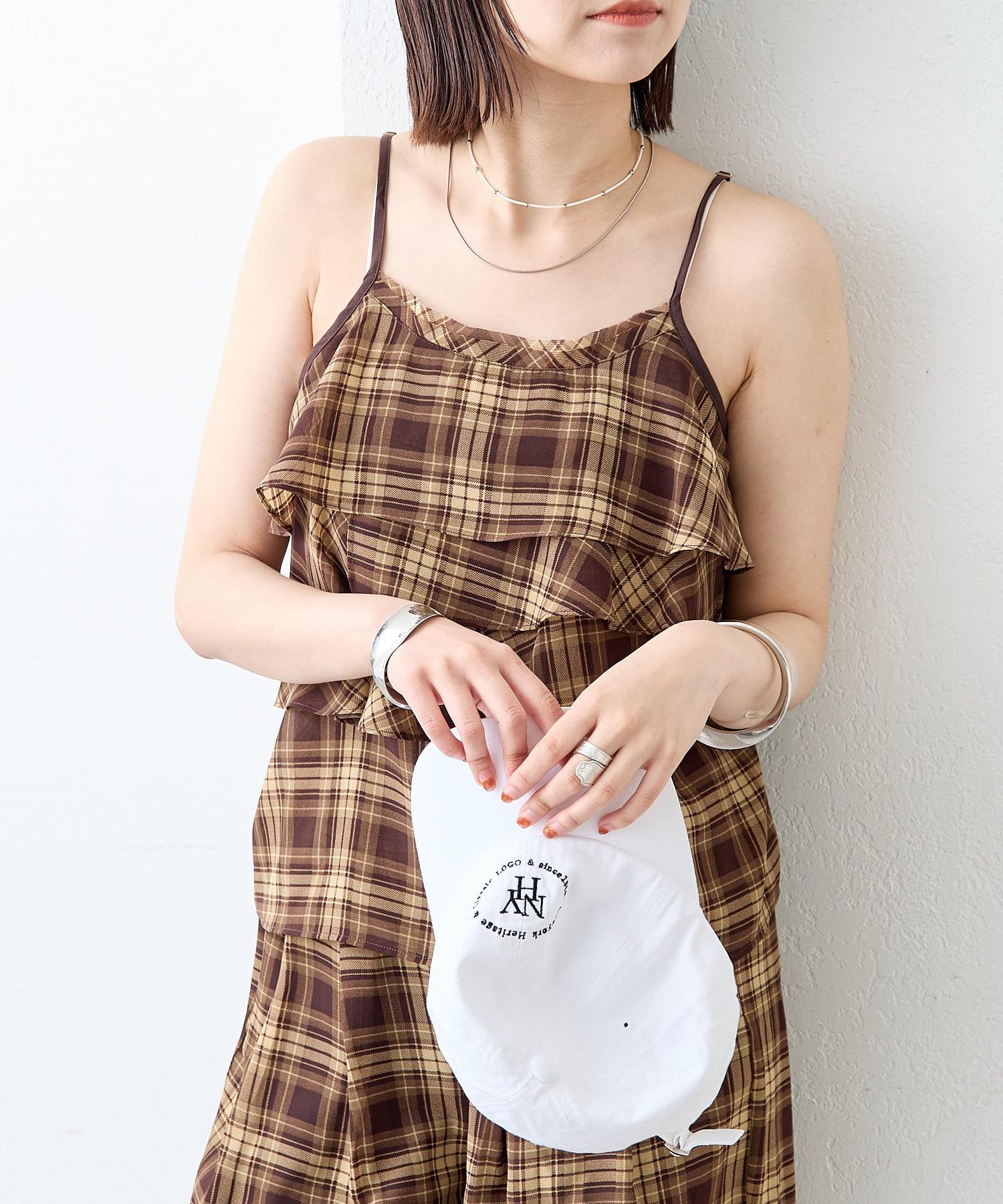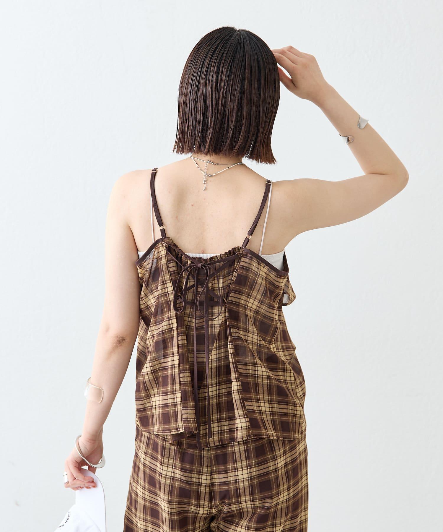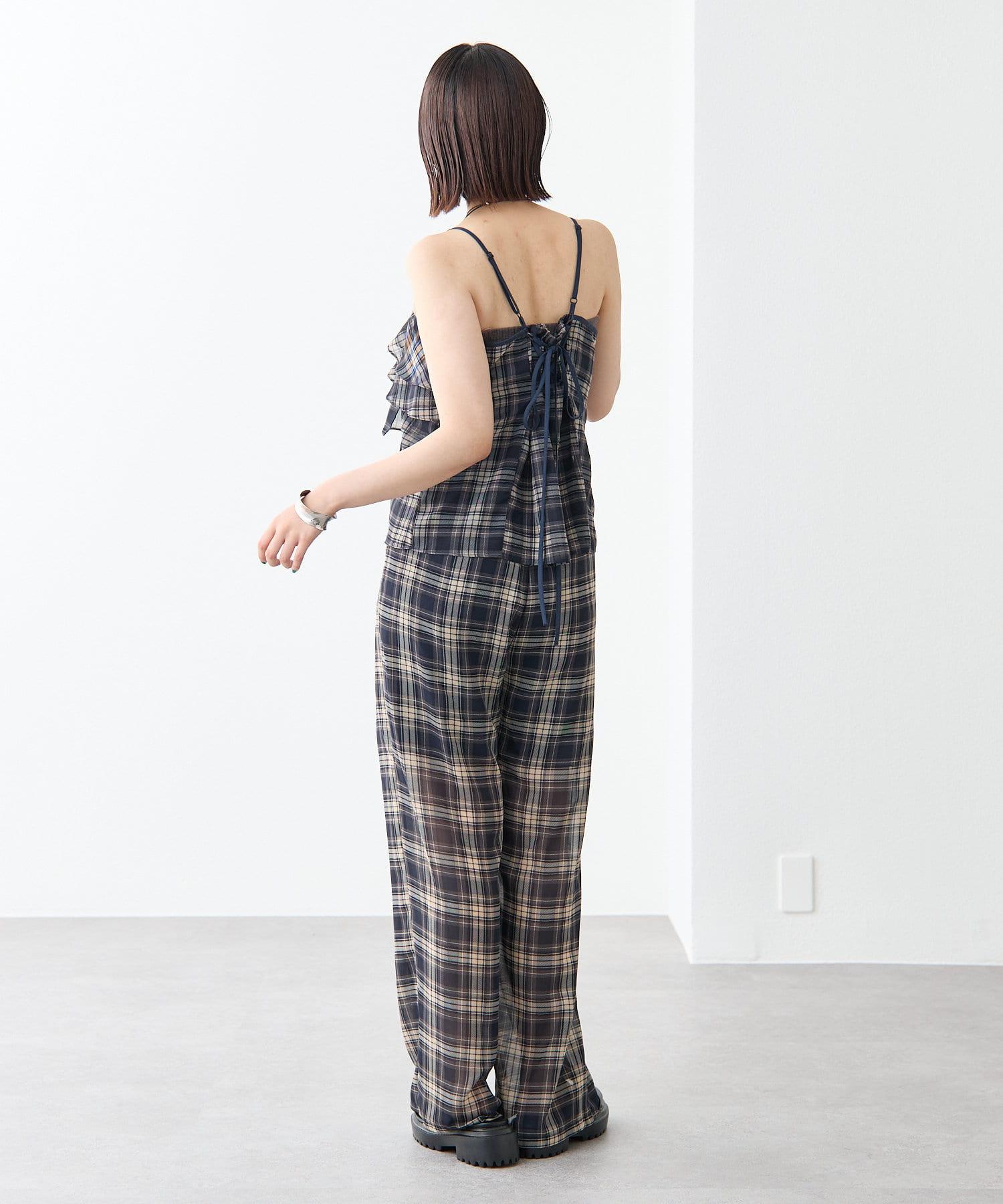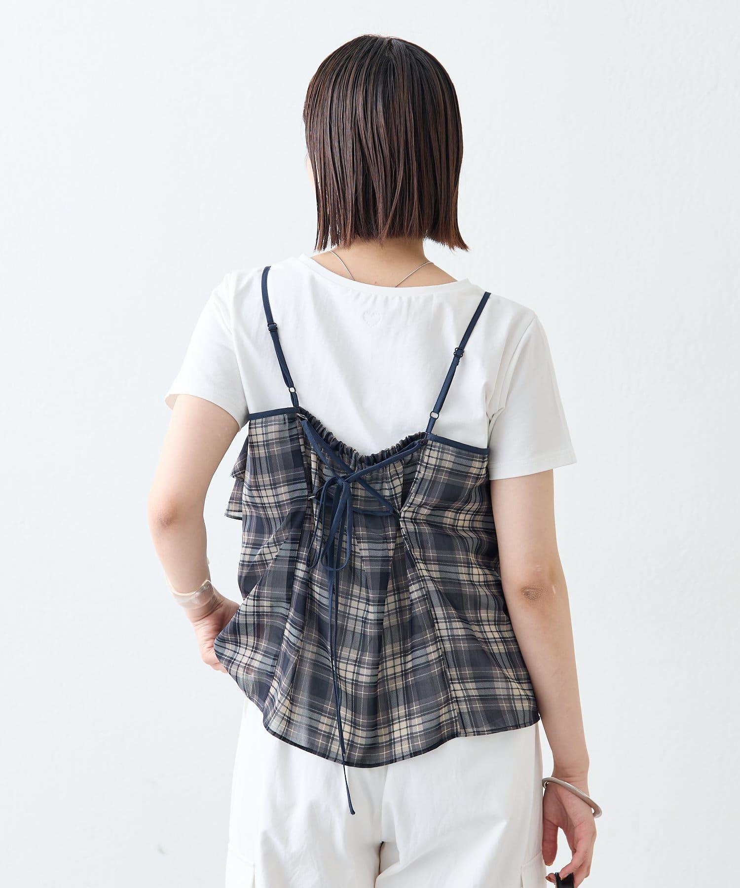 這是一款可愛的吊帶衫,結合了適度蓬鬆的荷葉邊和棋盤格圖案!