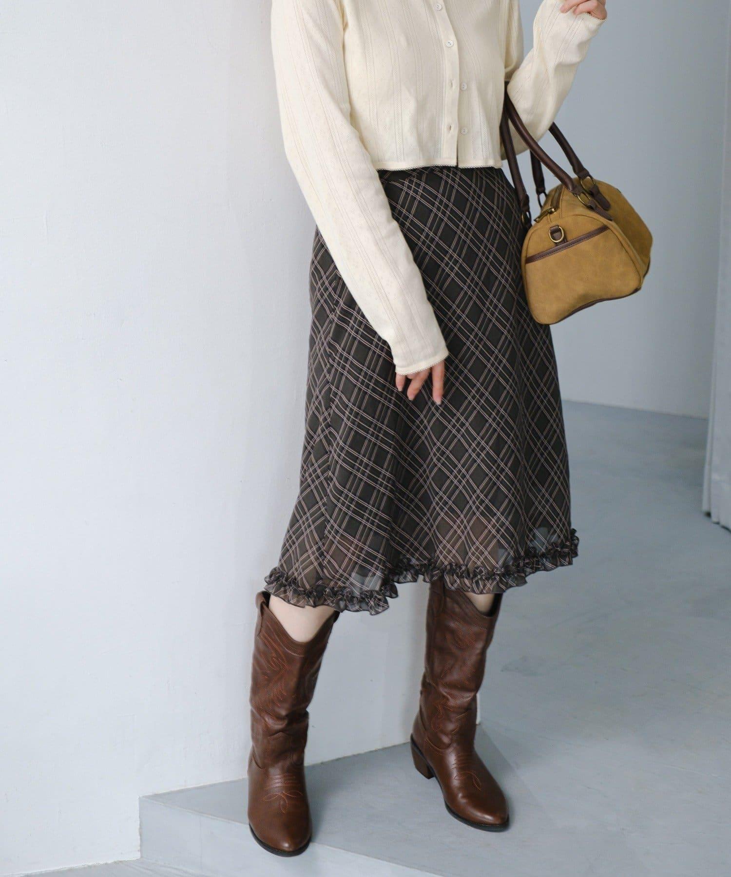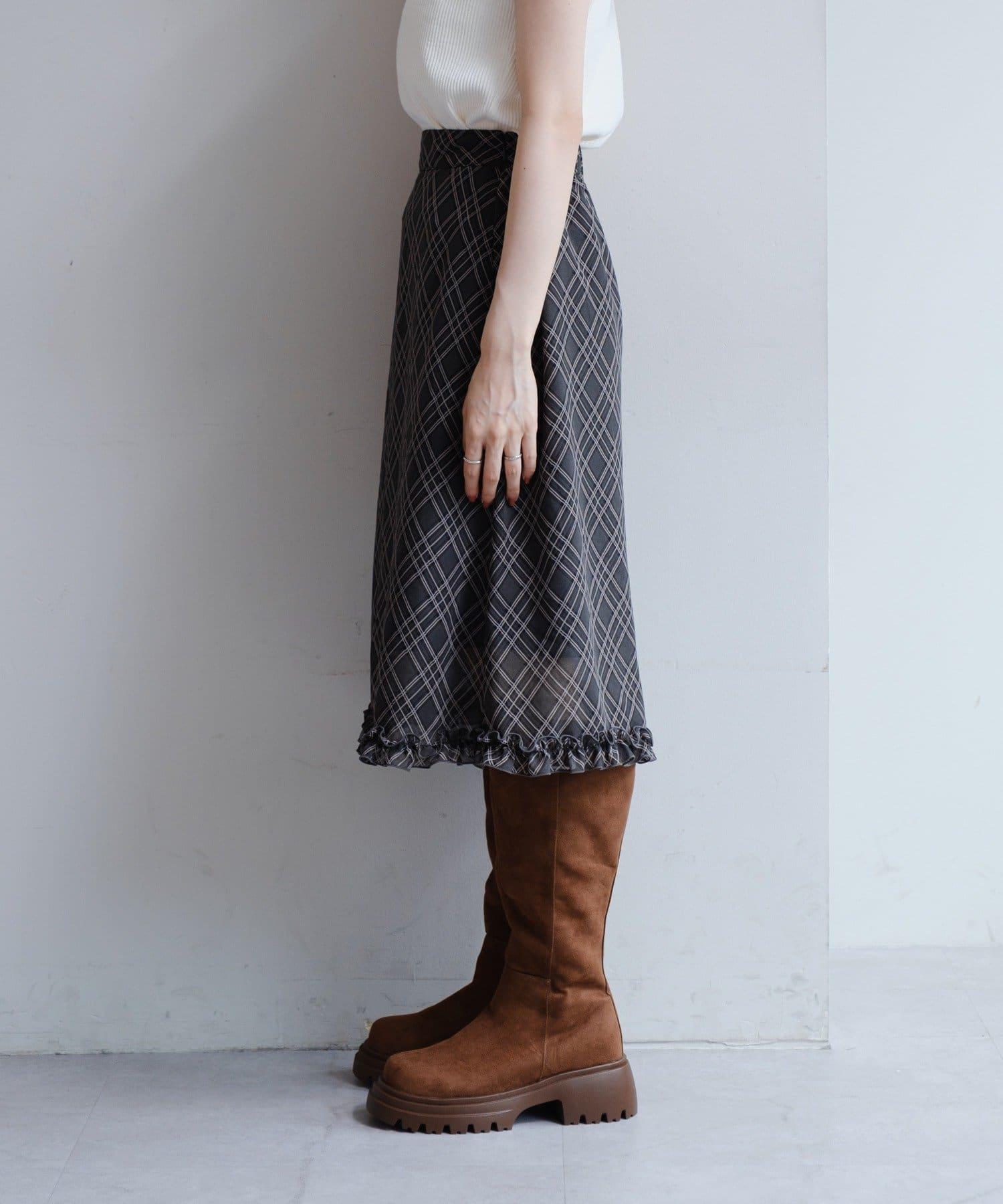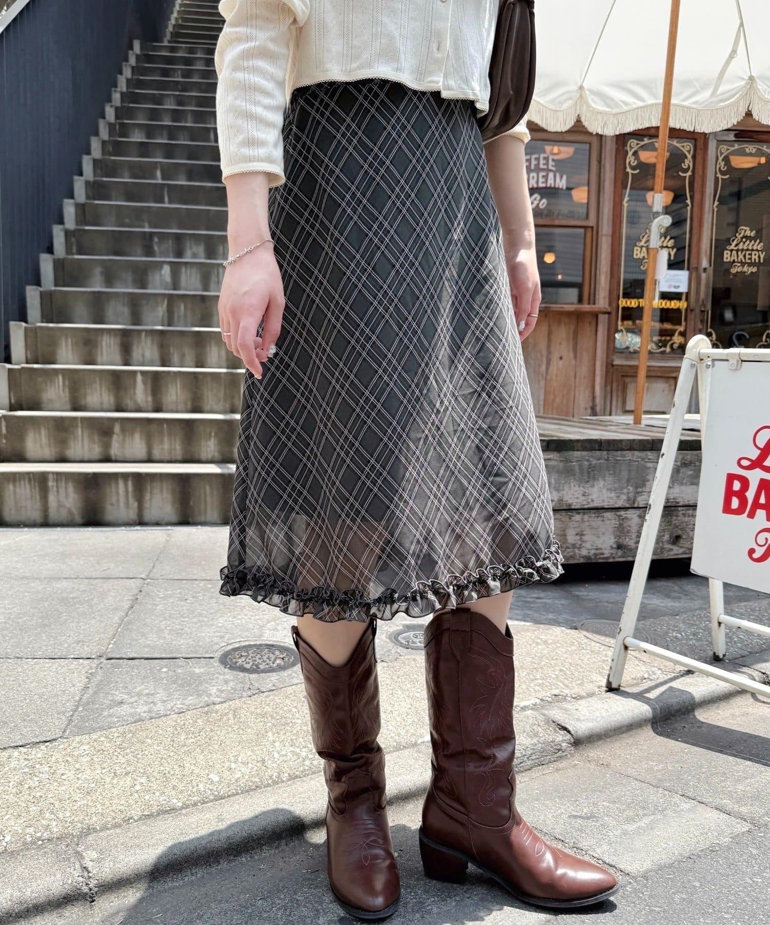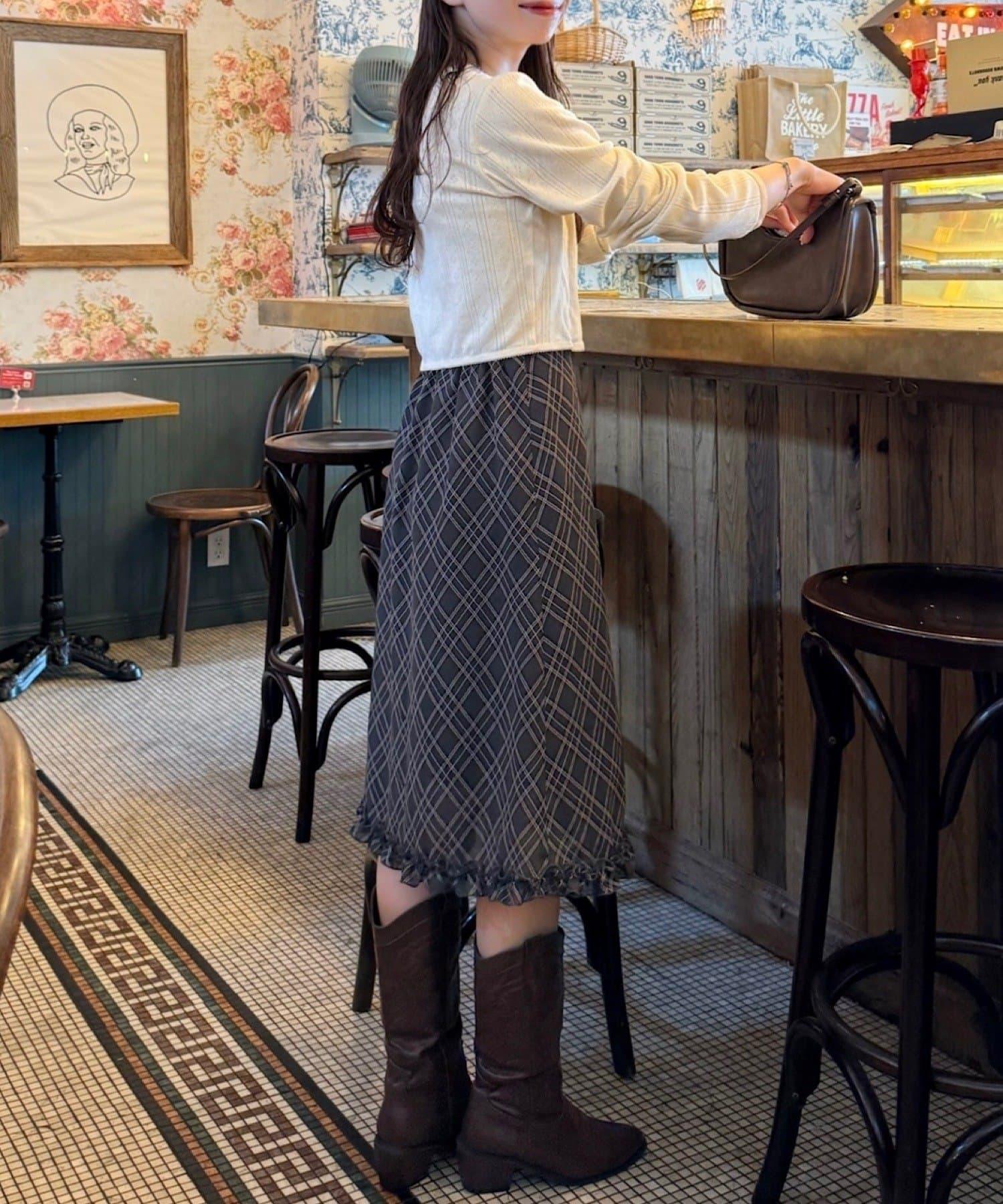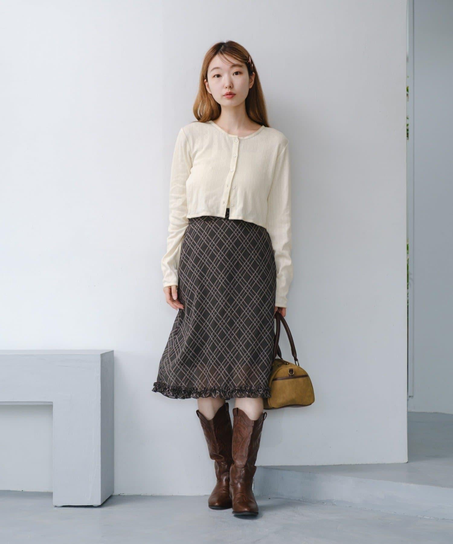 下襬的荷葉邊為色彩沉穩的格紋圖案增添了恰到好處的甜美感。