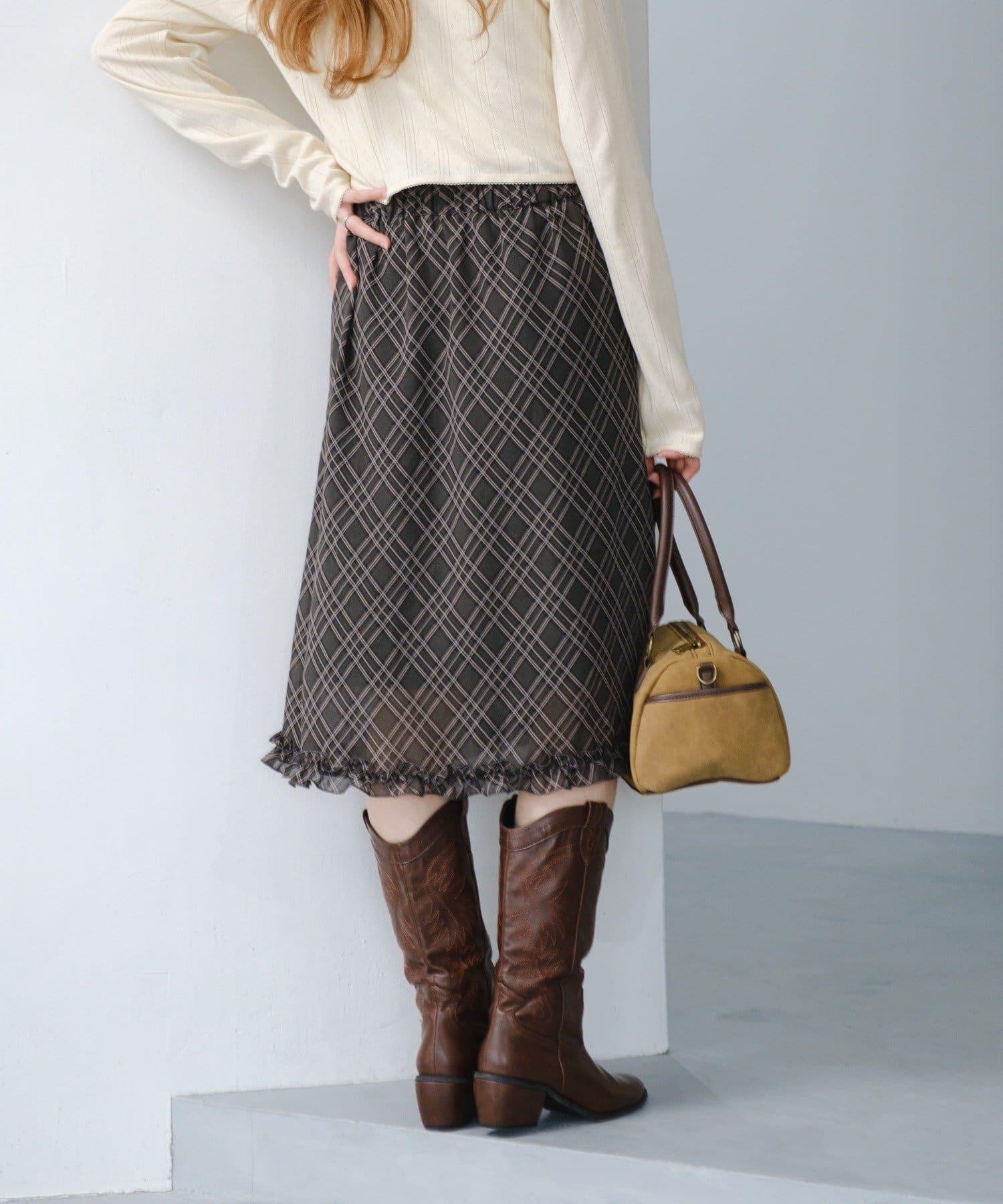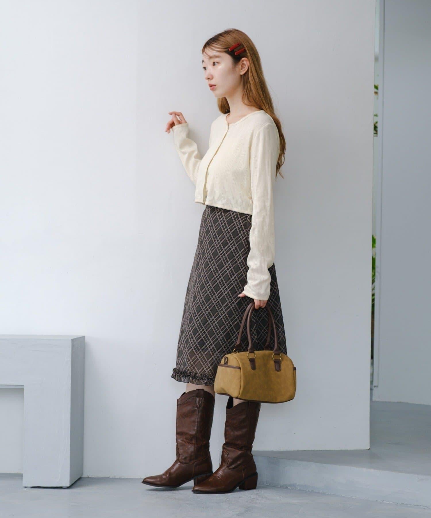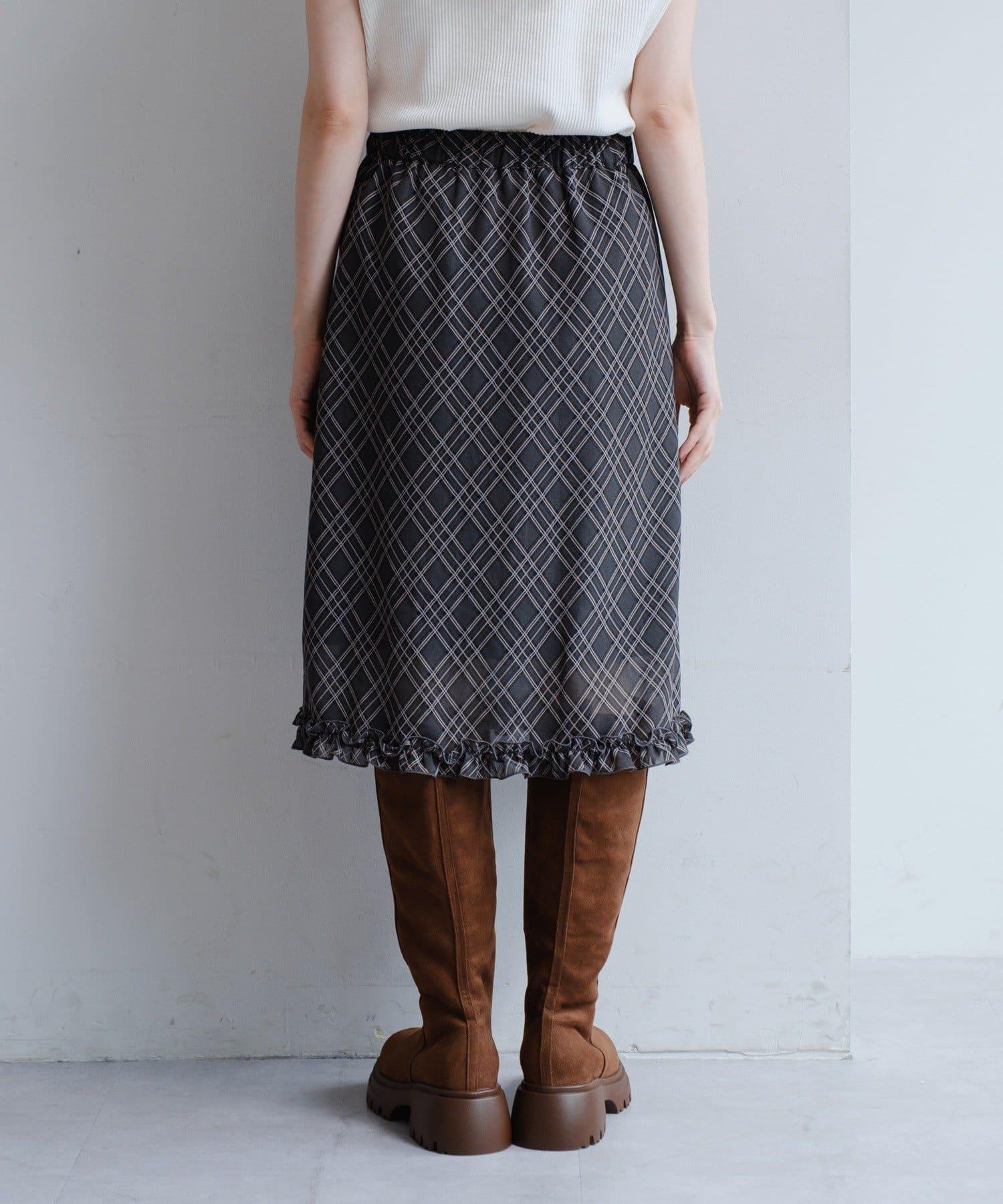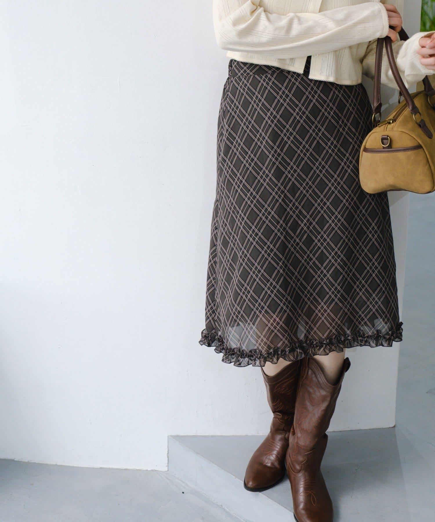下襬的荷葉邊為色彩沉穩的格紋圖案增添了恰到好處的甜美感。