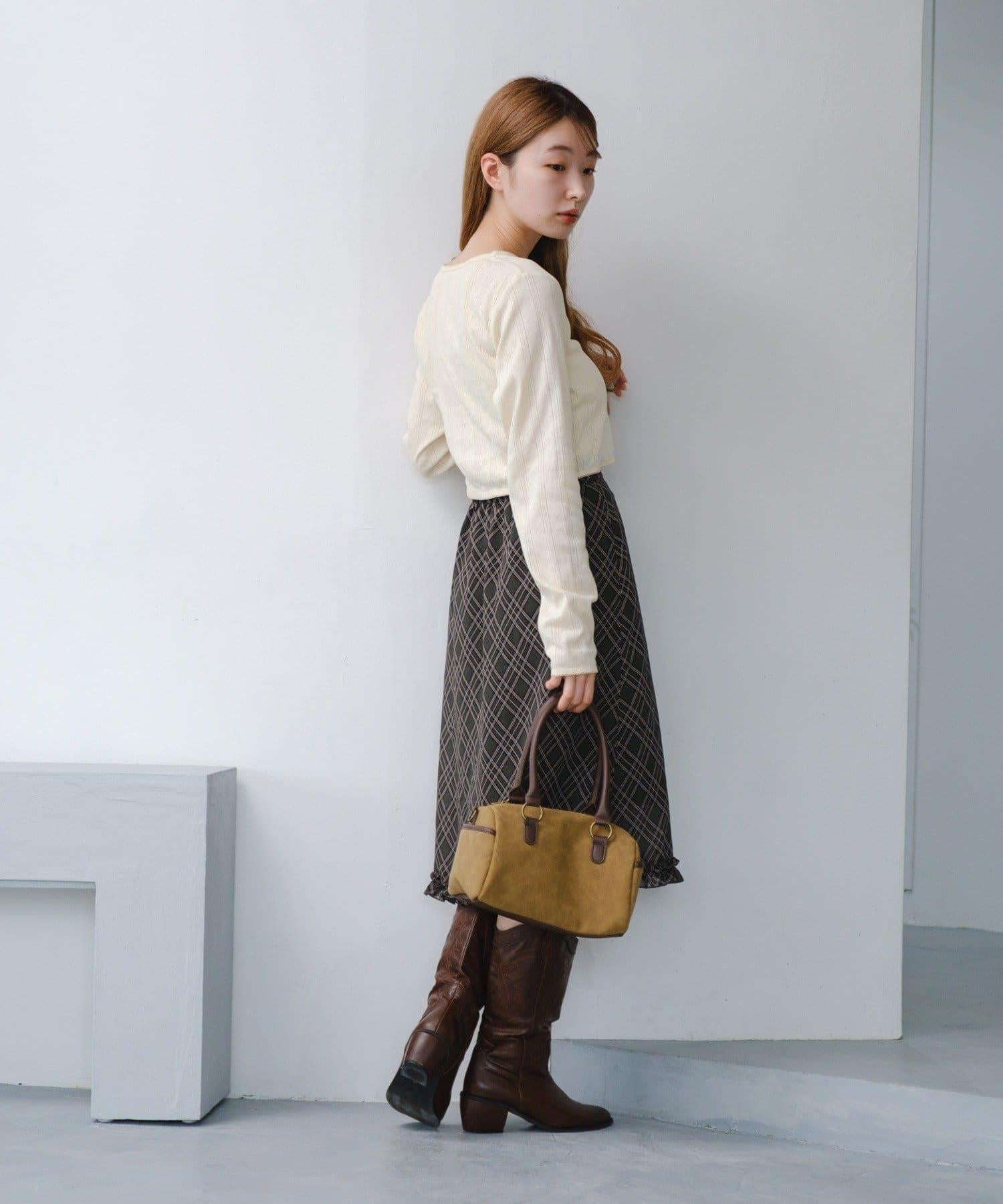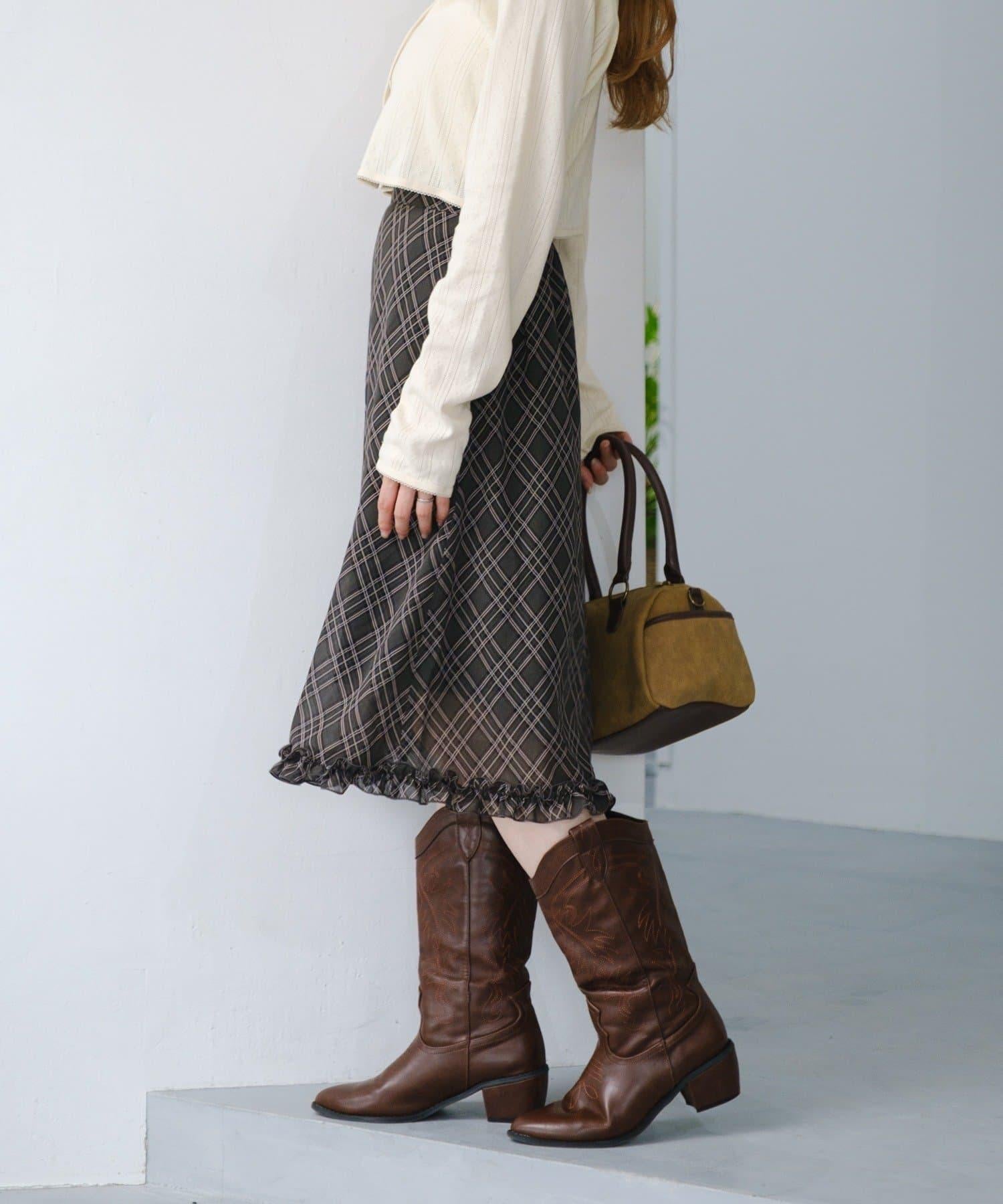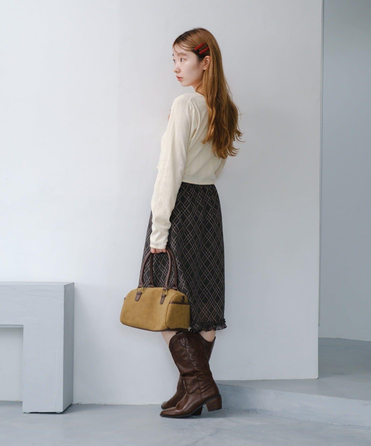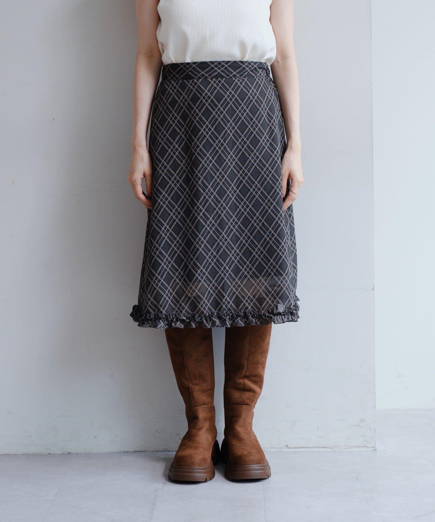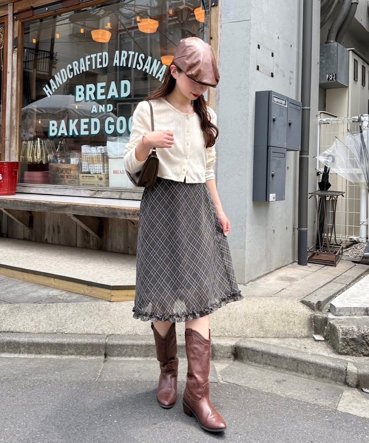 下襬的荷葉邊為色彩沉穩的格紋圖案增添了恰到好處的甜美感。
