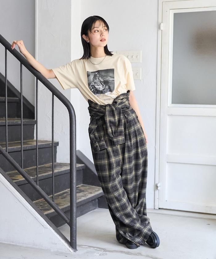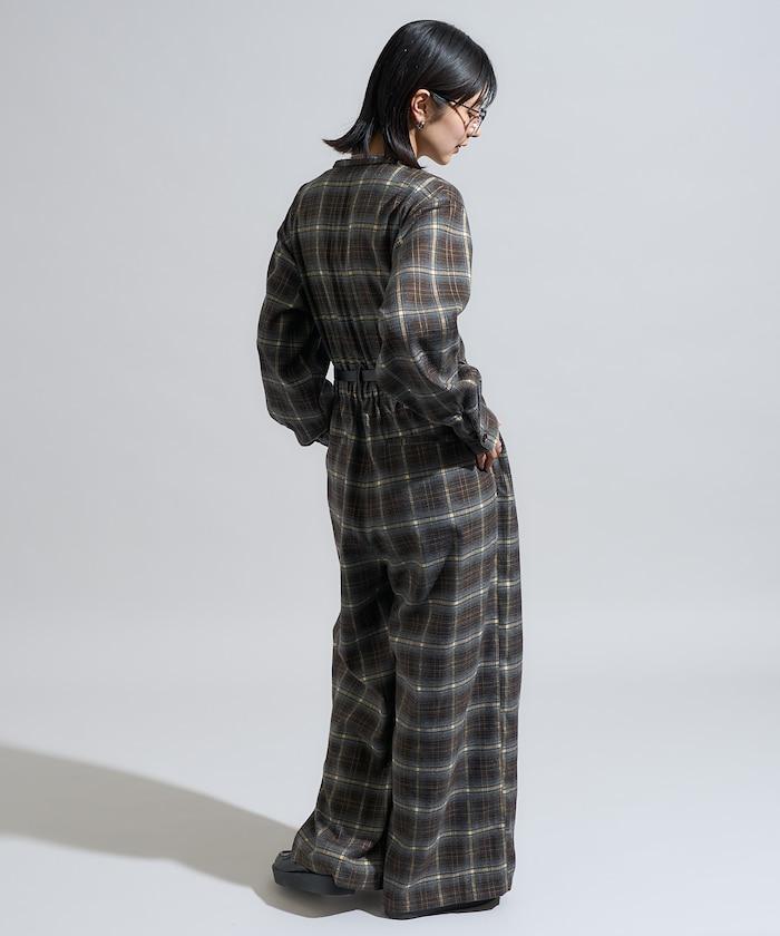 帶有混色格紋的連體褲,在保留工作感的同時,增添了季節感和潮流感。