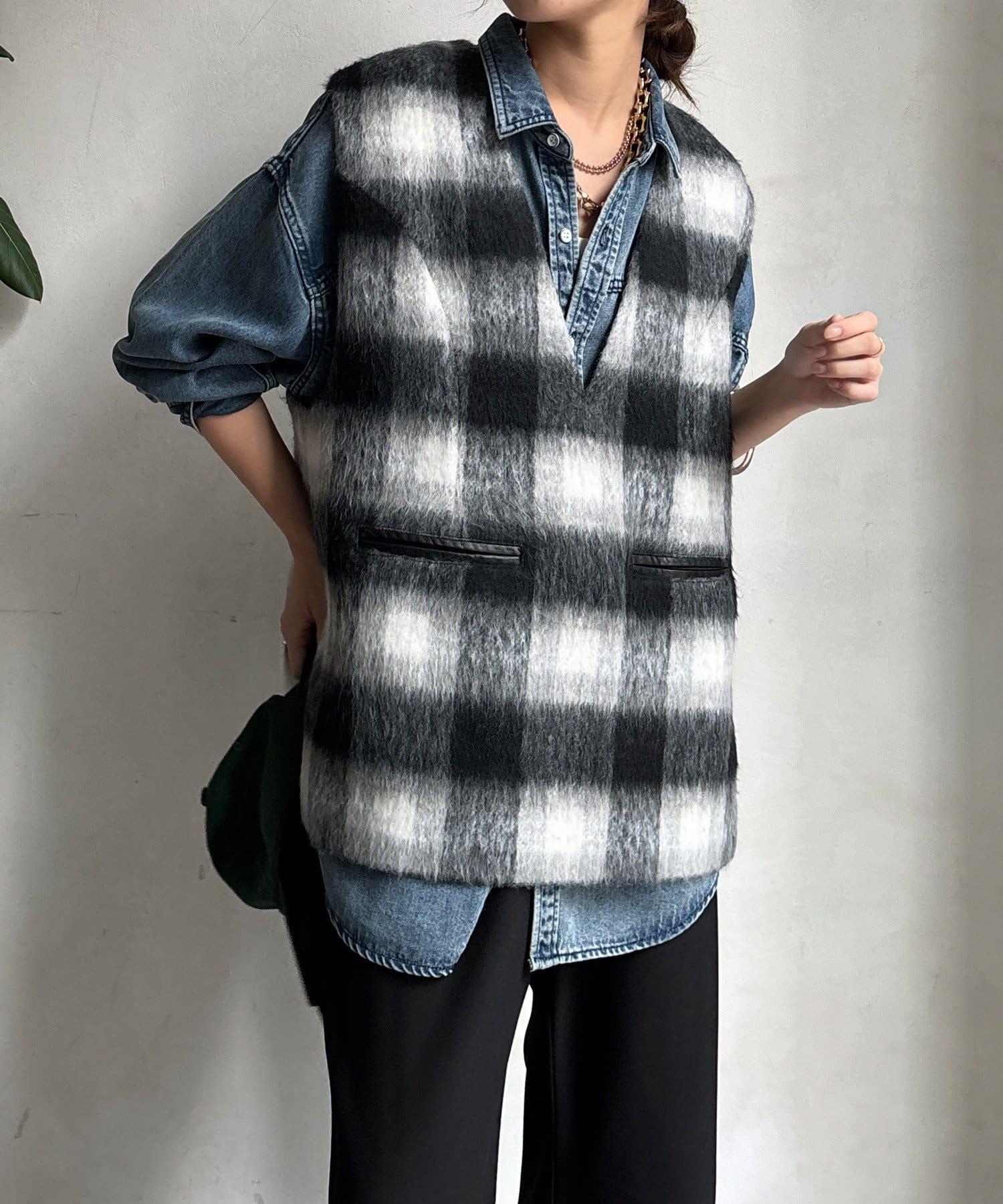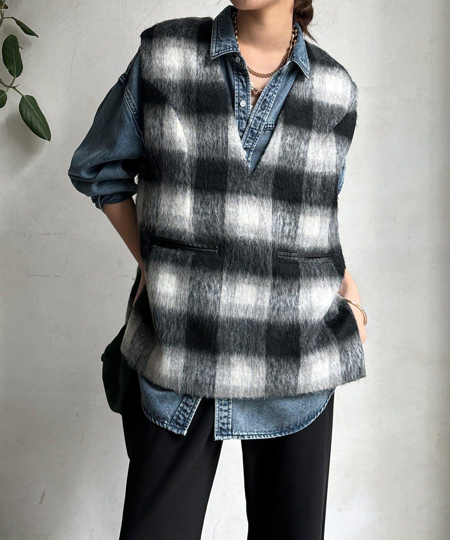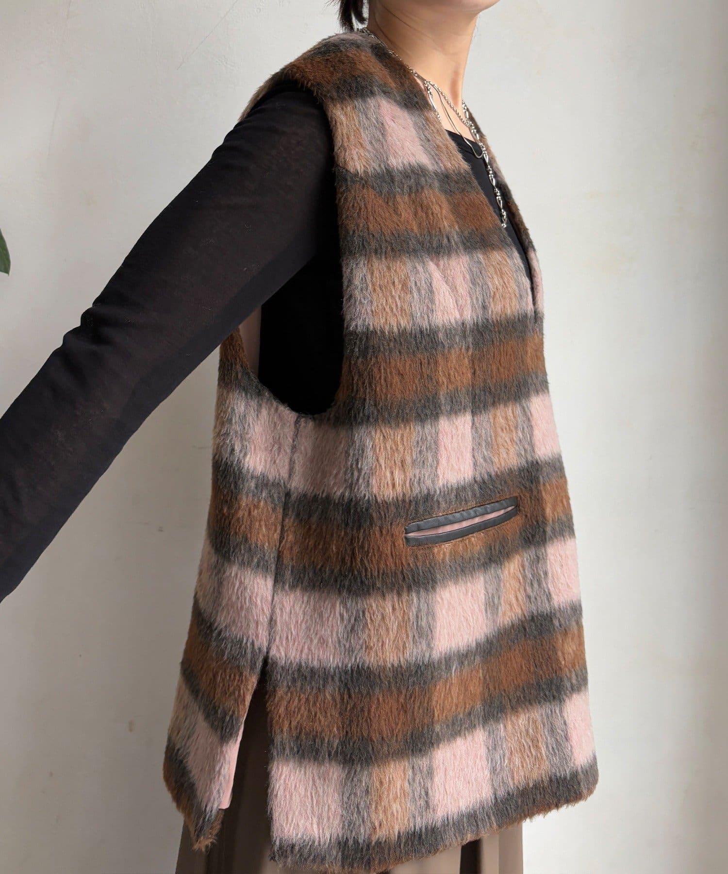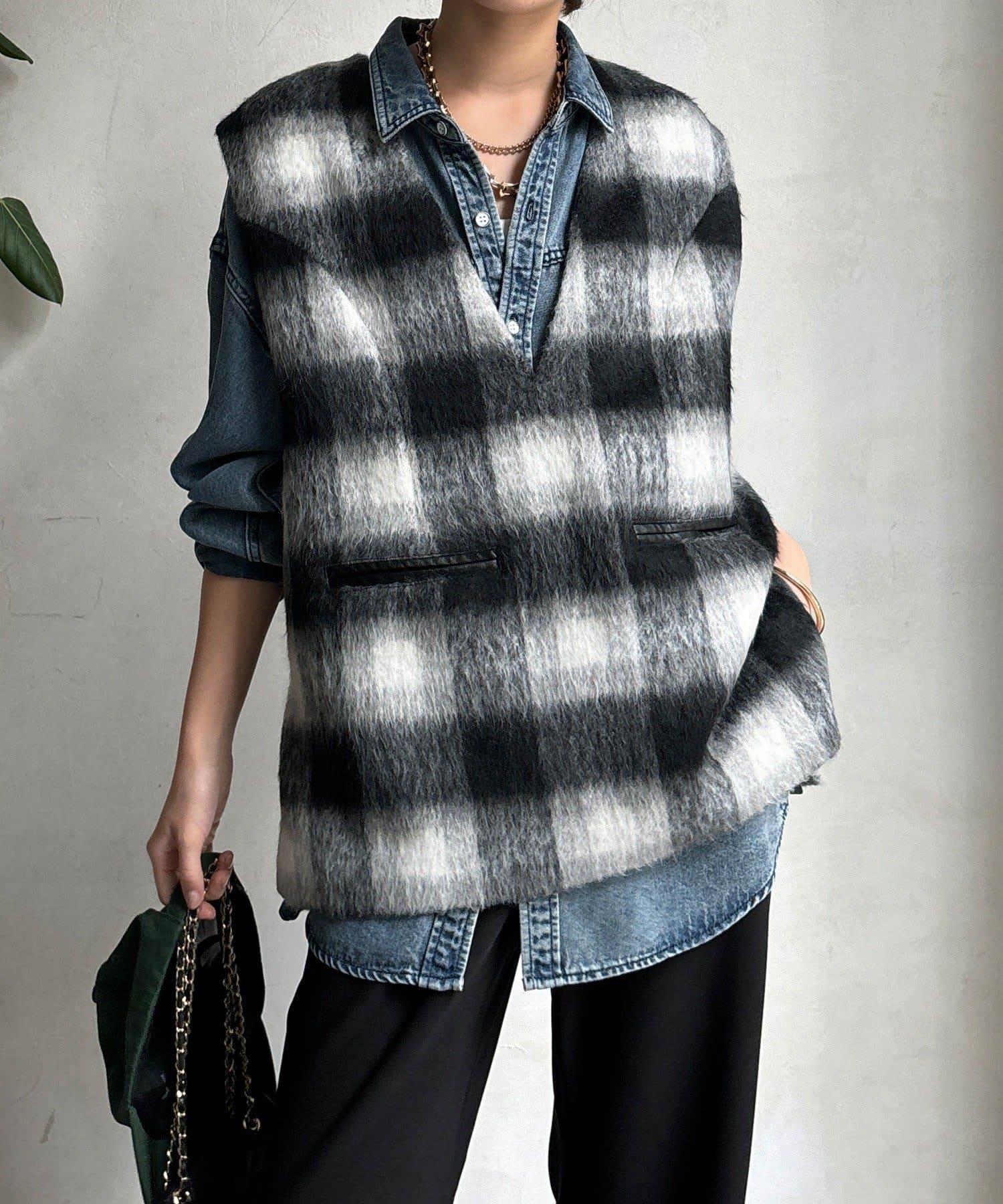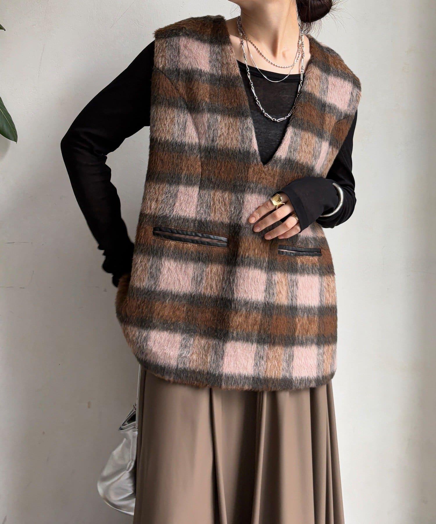 格紋馬甲採用毛茸茸的面料製成,手感蓬鬆舒適。