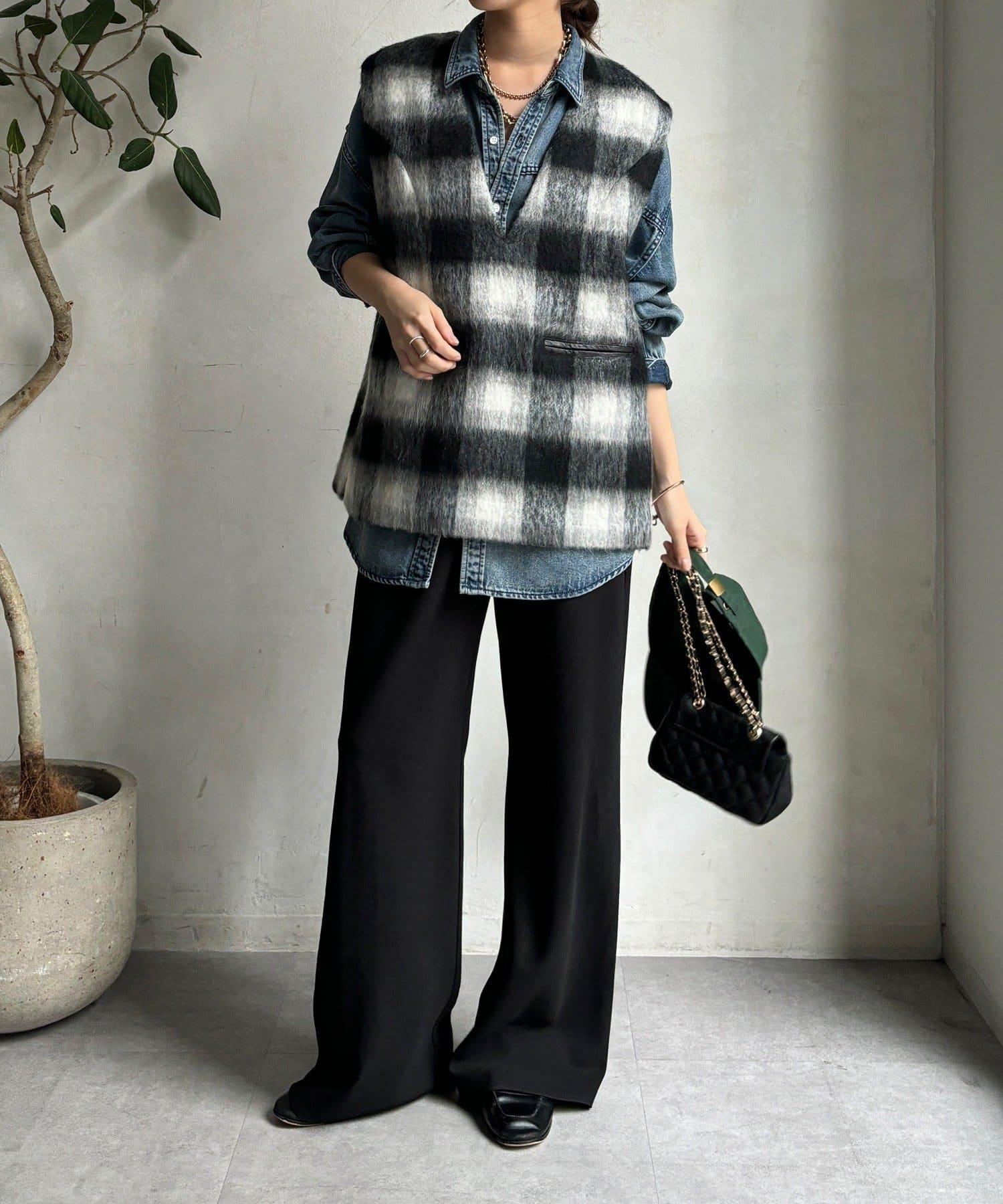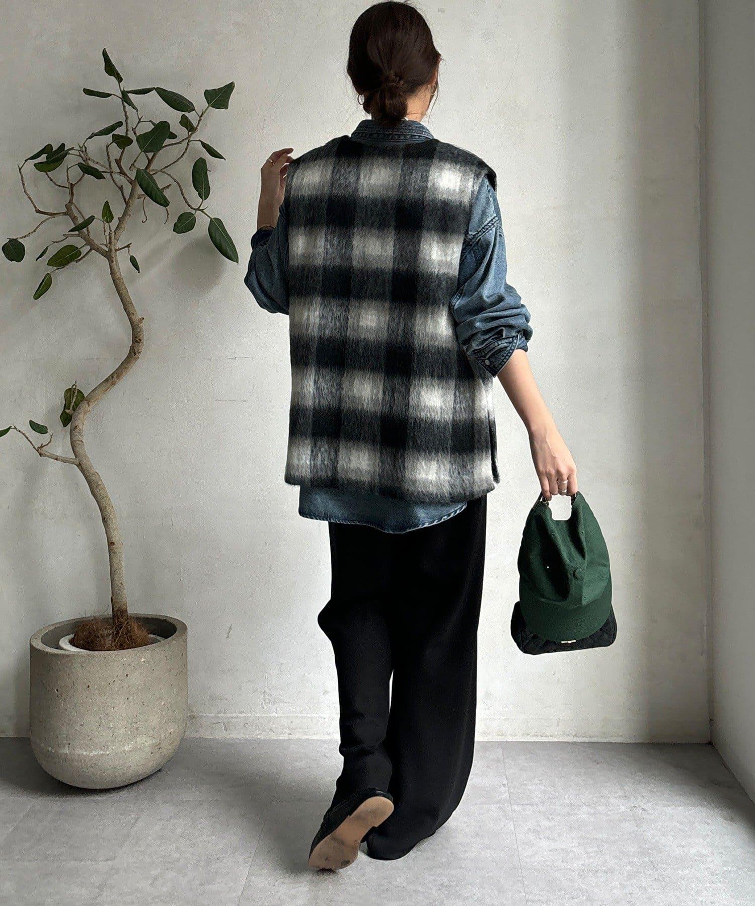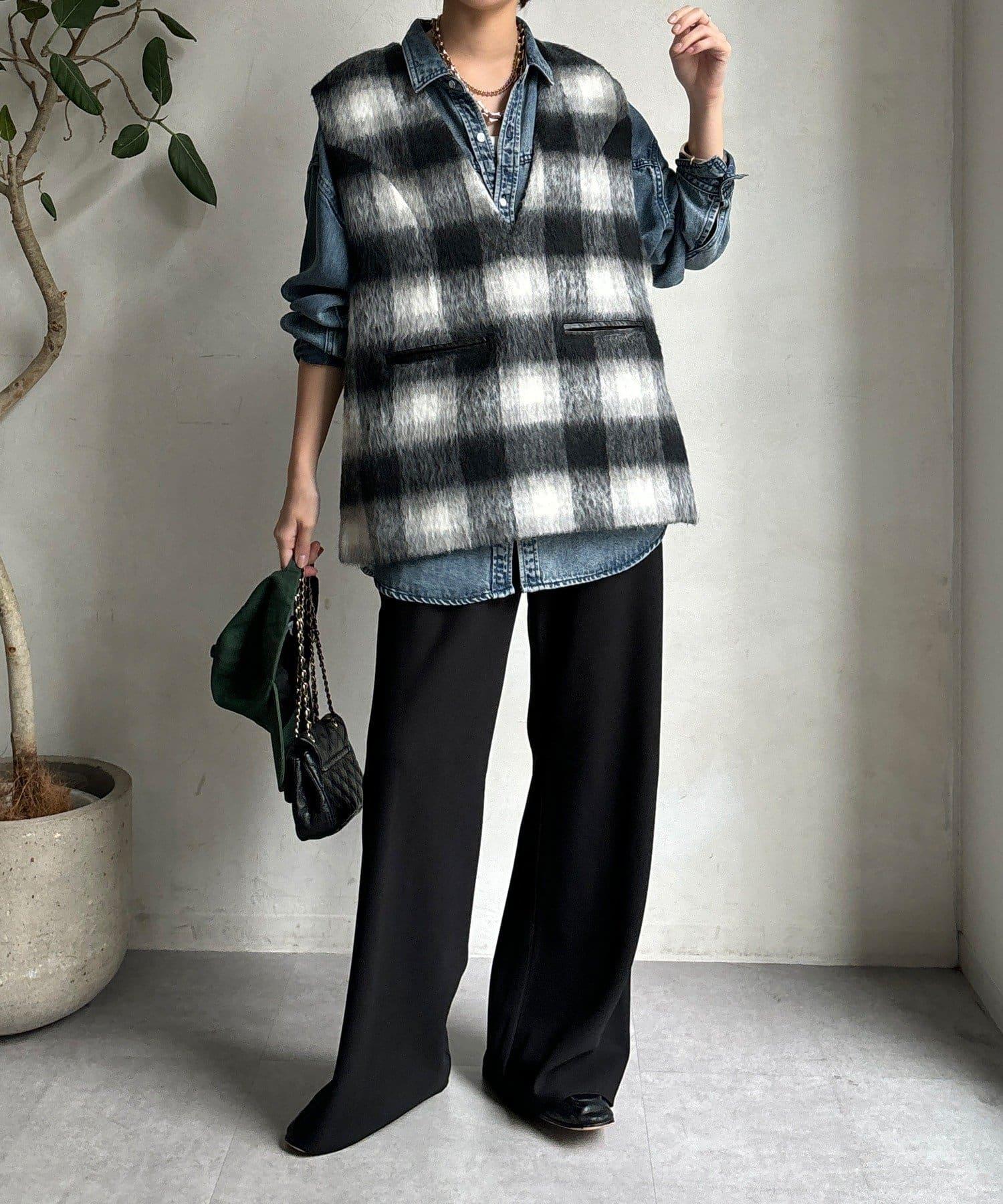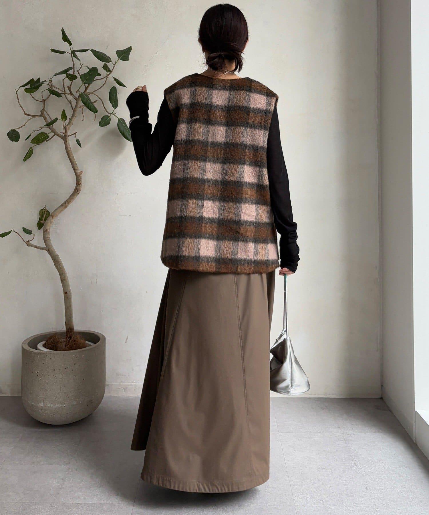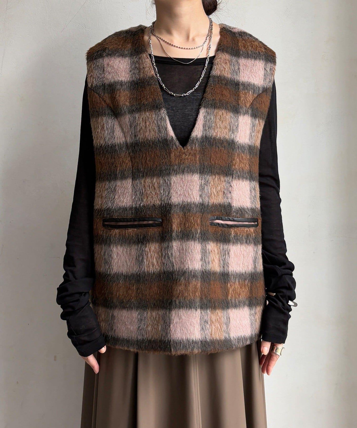 格紋馬甲採用毛茸茸的面料製成,手感蓬鬆舒適。