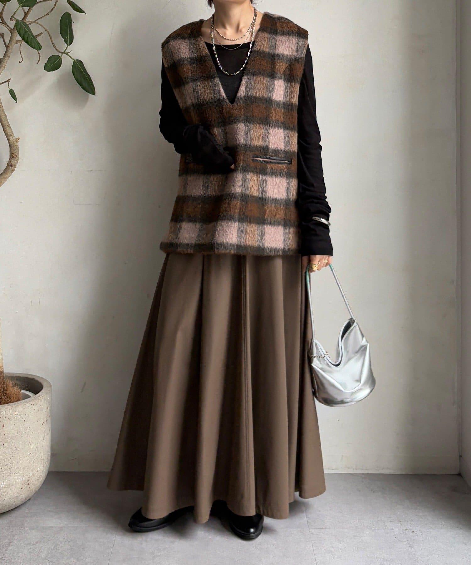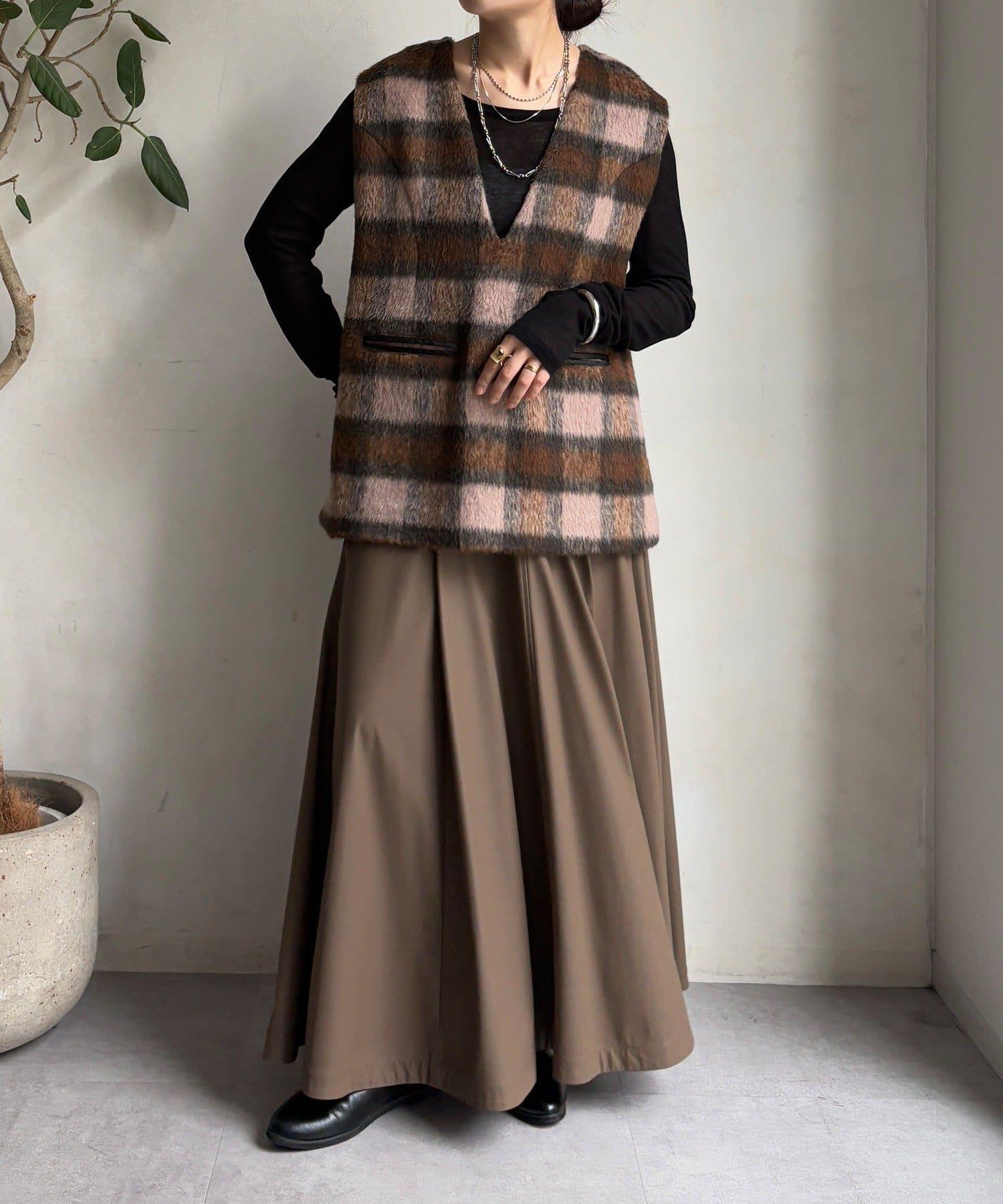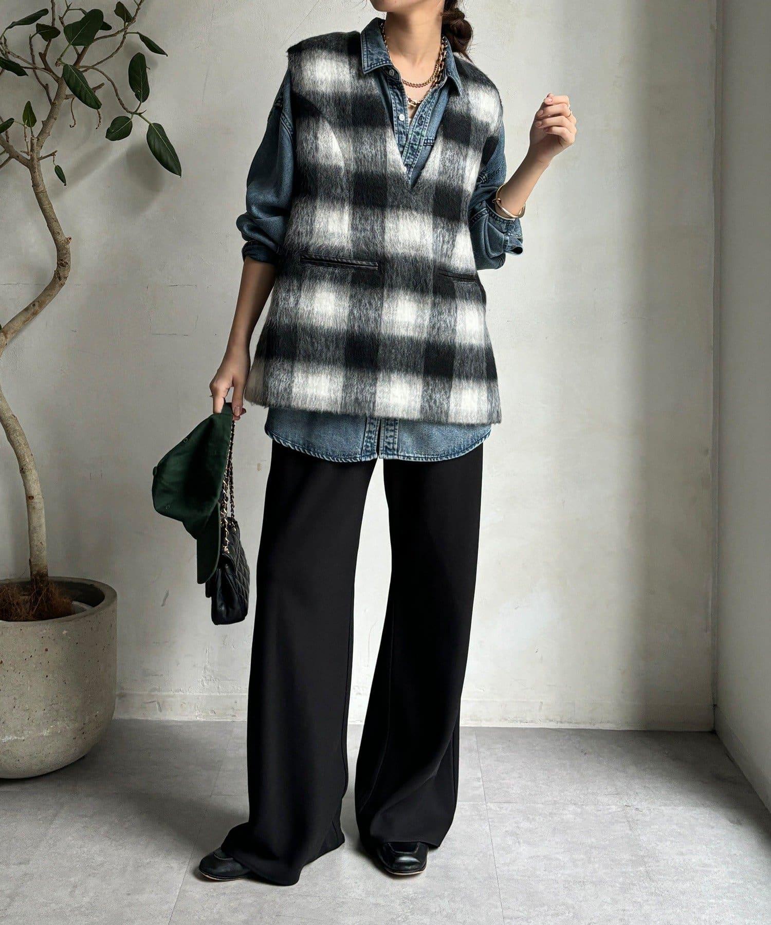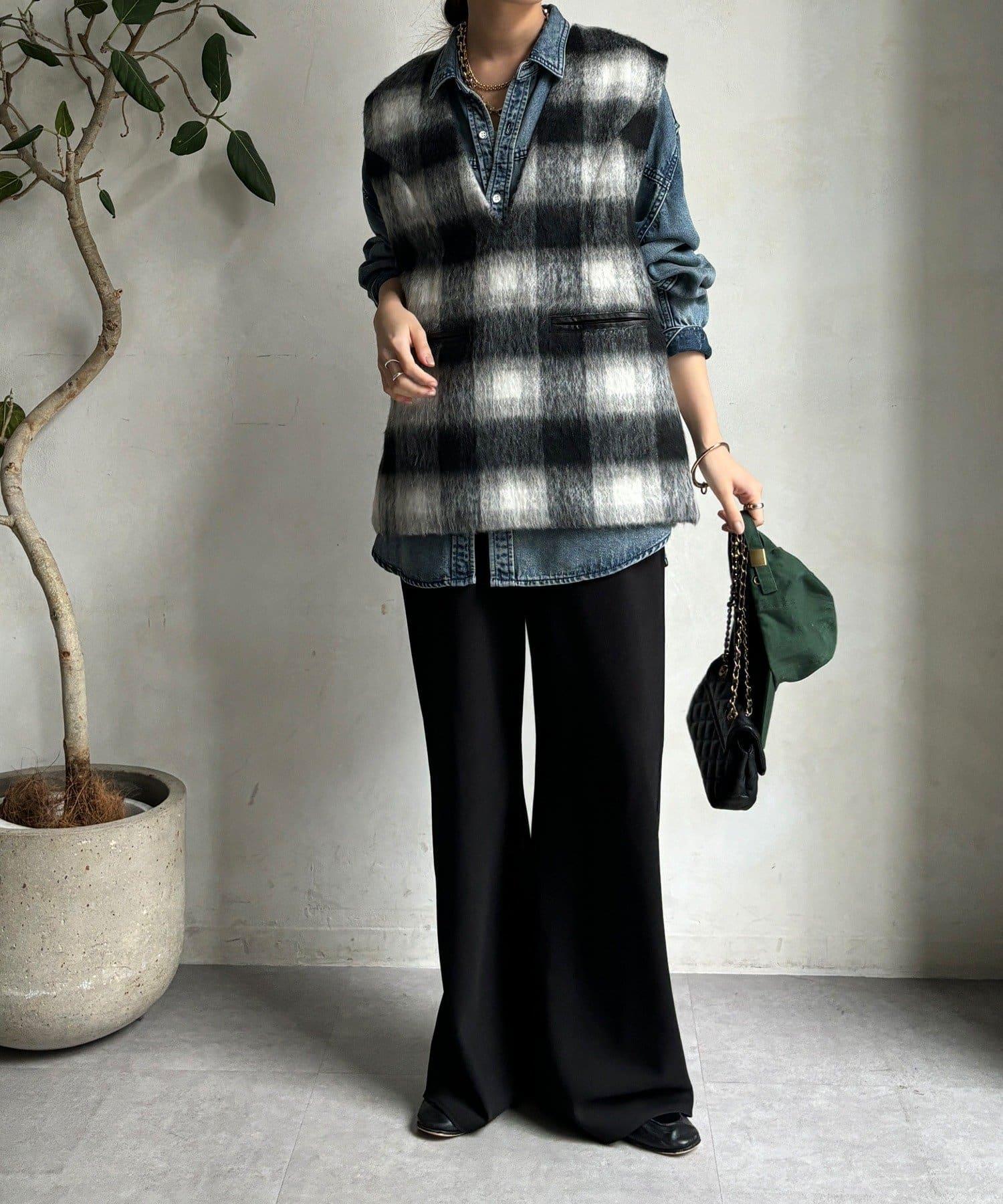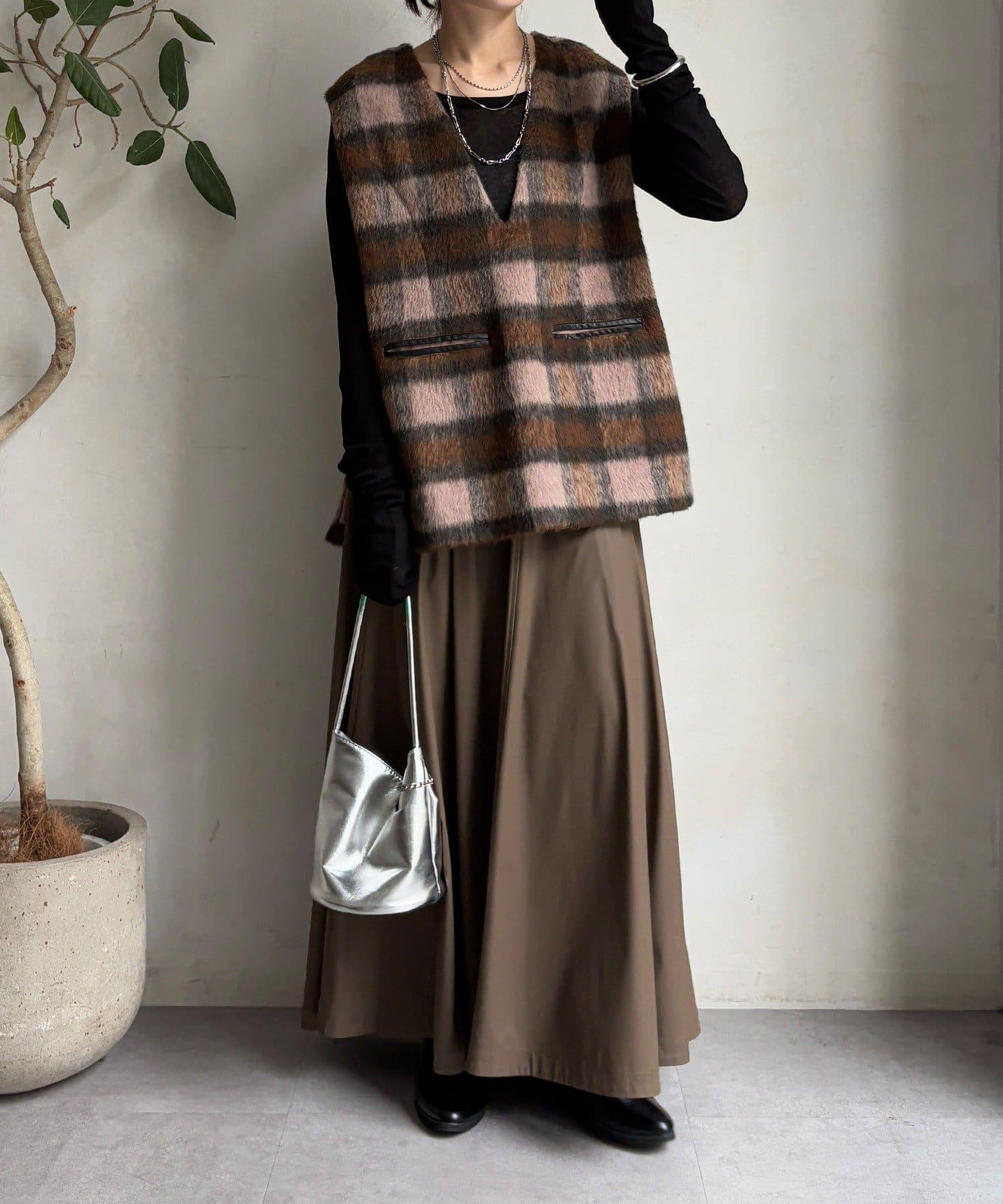 格紋馬甲採用毛茸茸的面料製成,手感蓬鬆舒適。