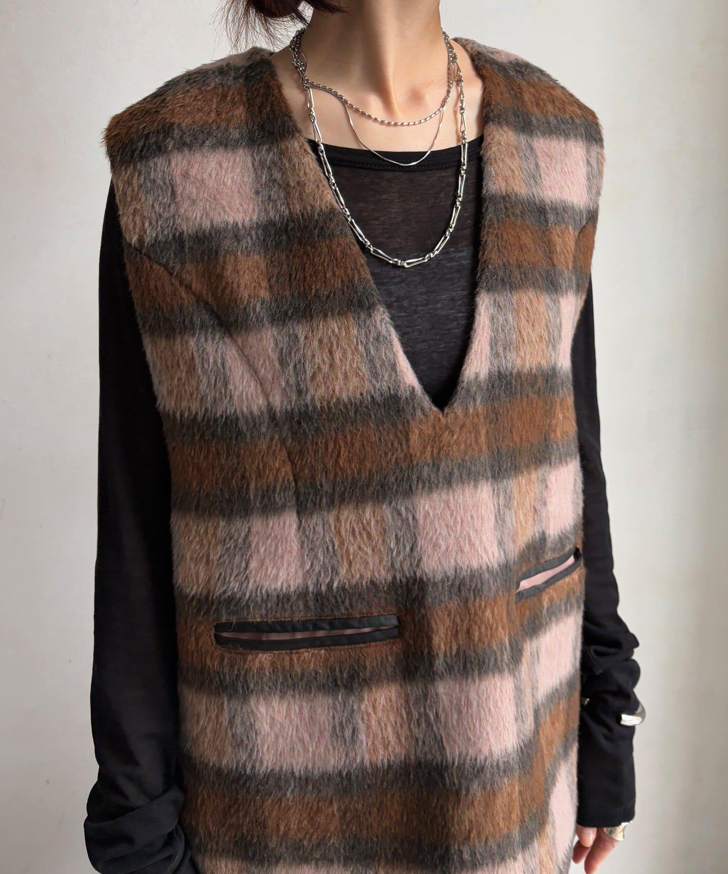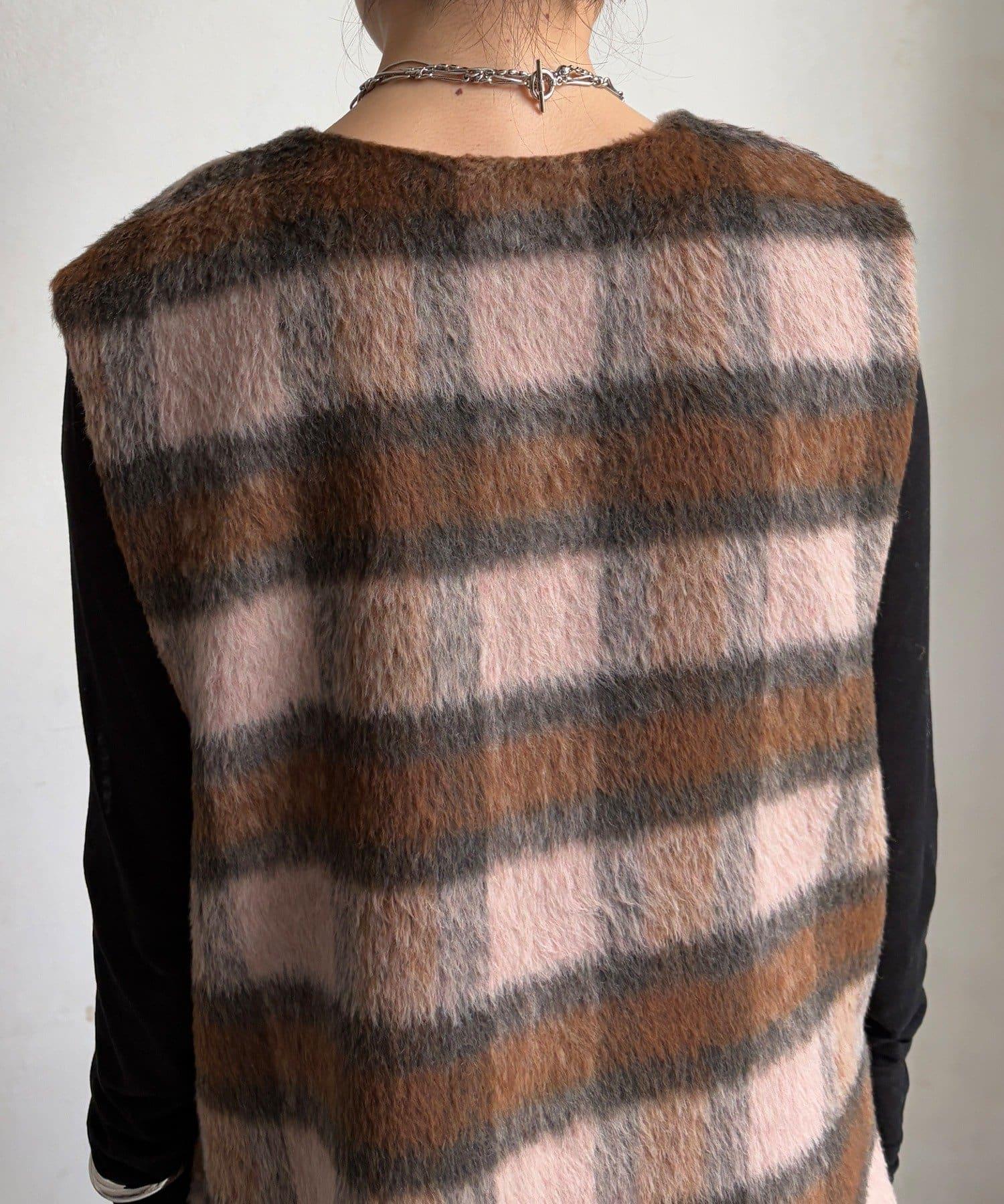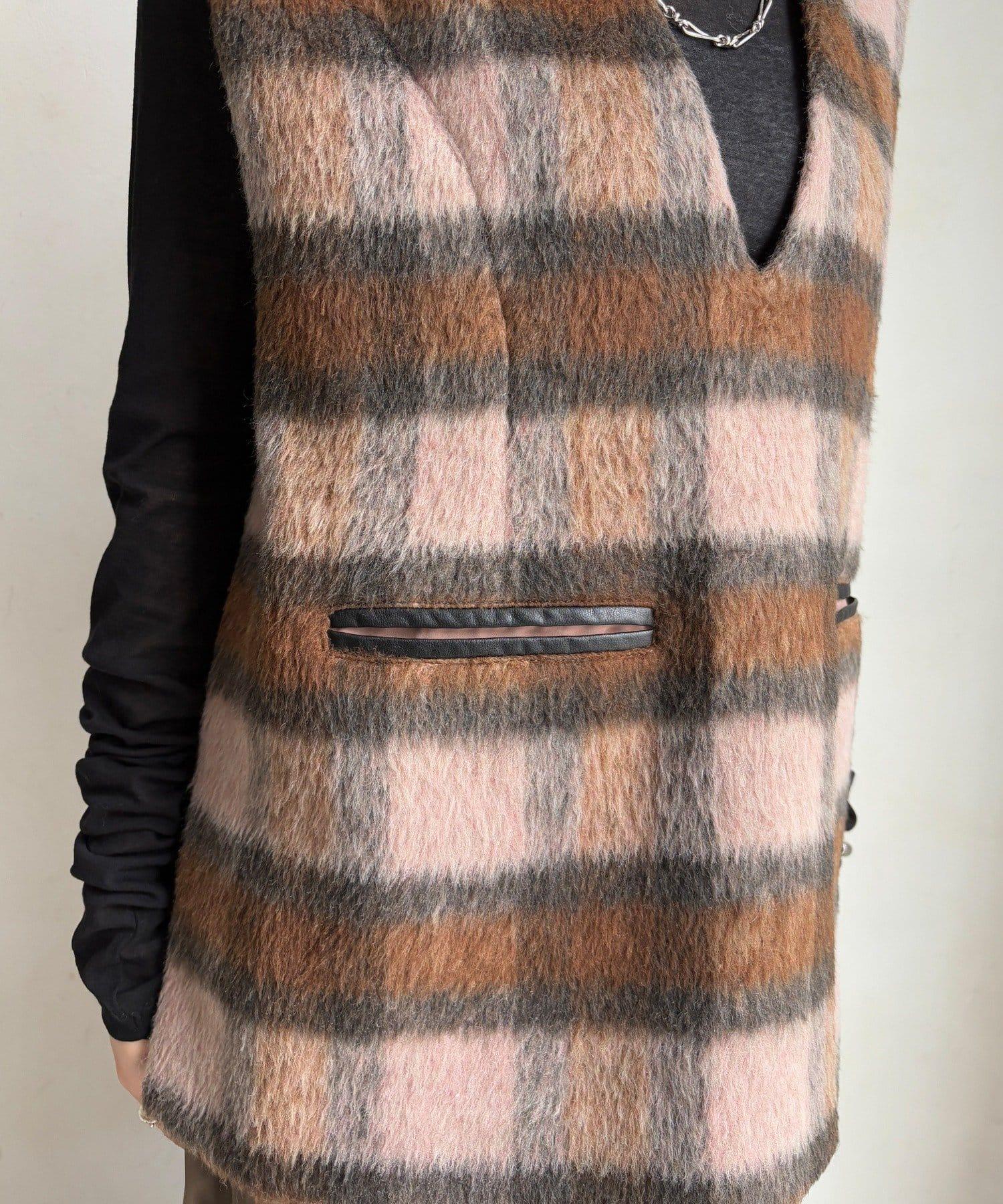 格紋長毛馬甲