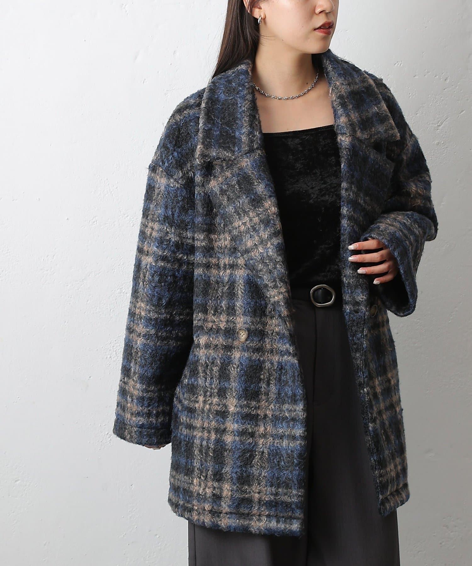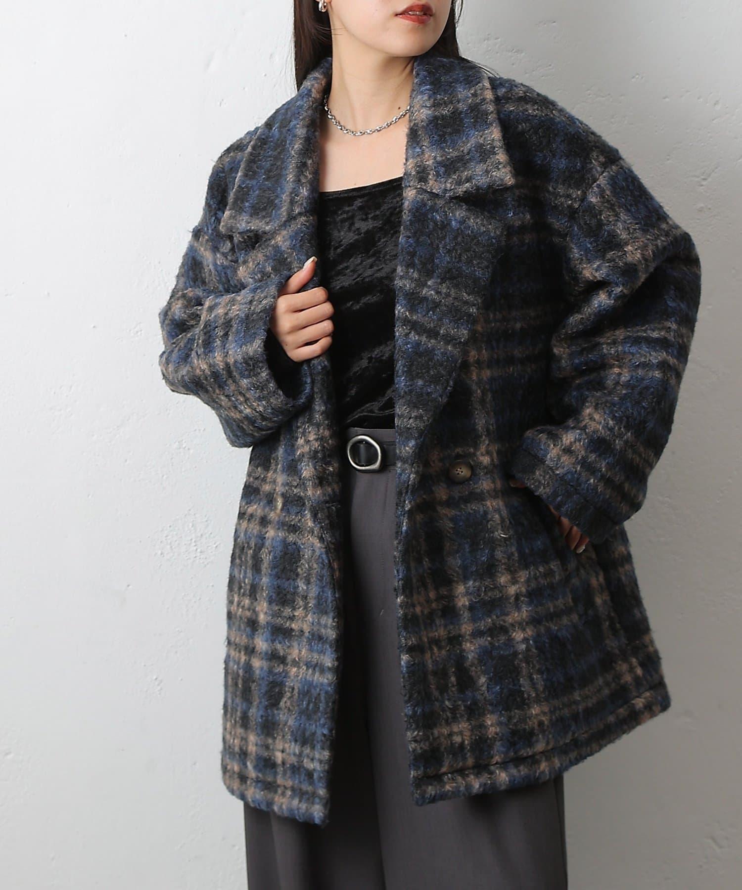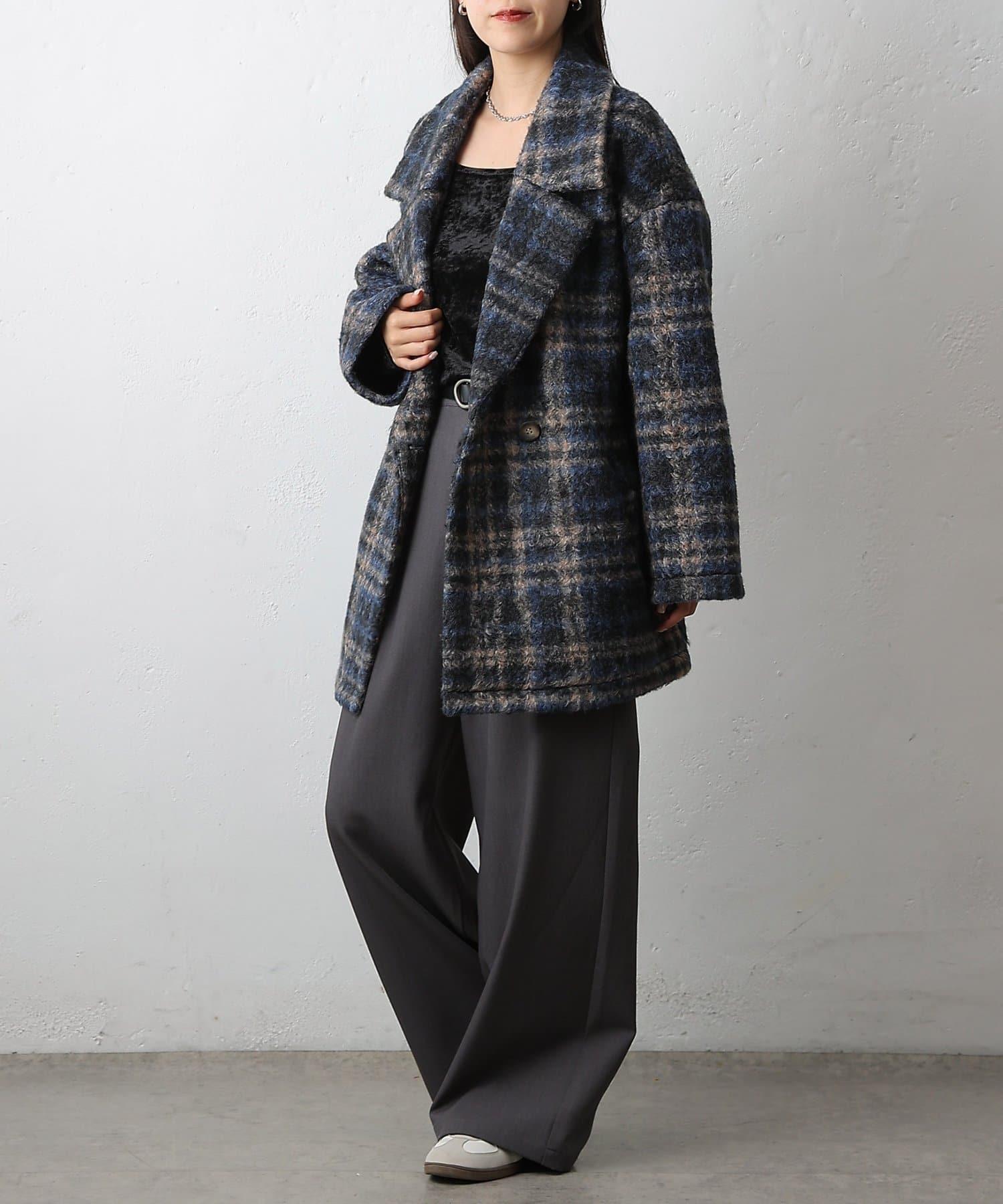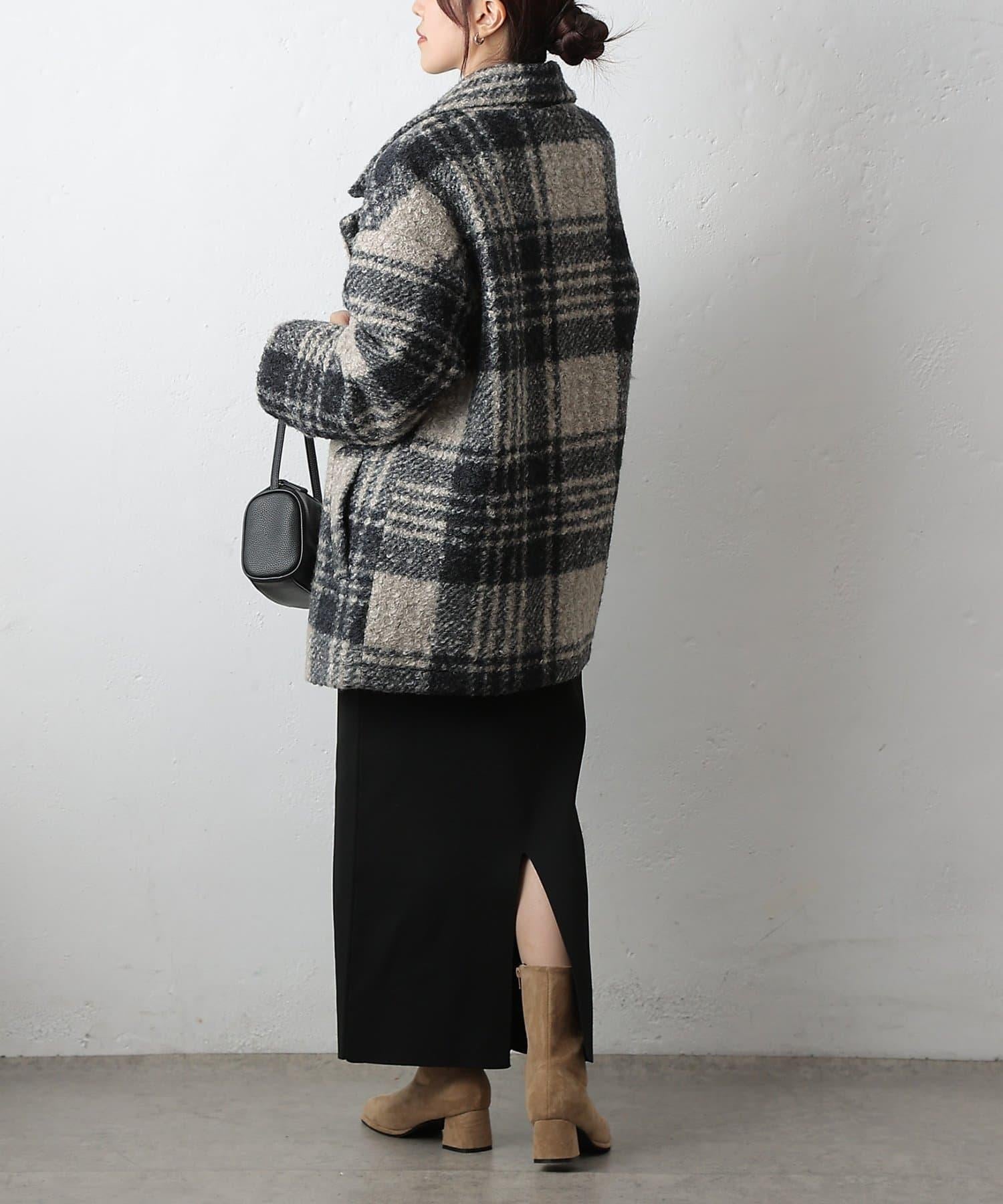 這款長款夾克外套採用經典的棋盤格圖案和整潔的雙剪裁設計。
