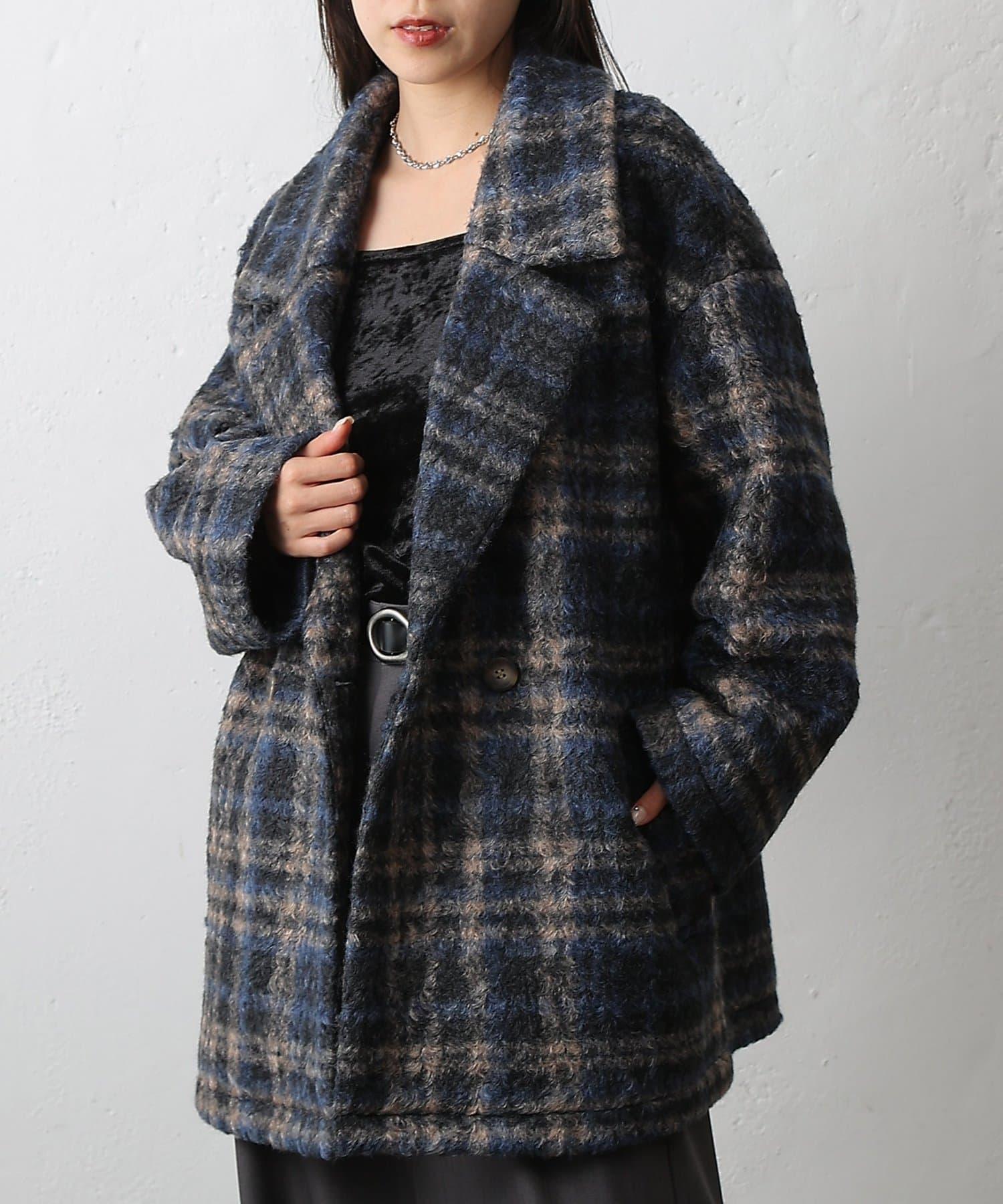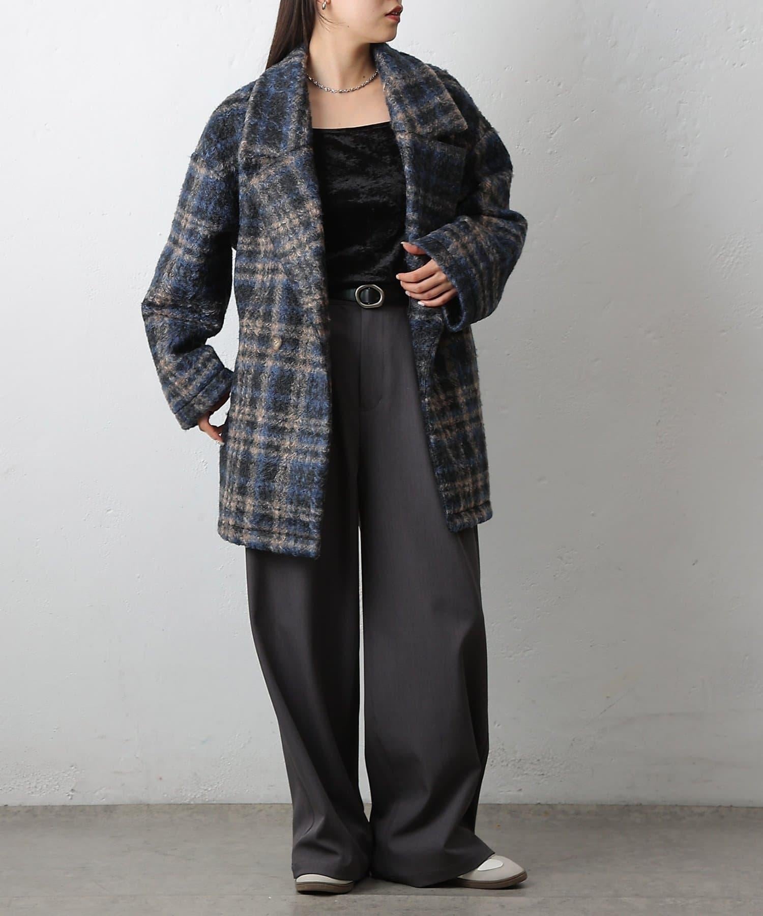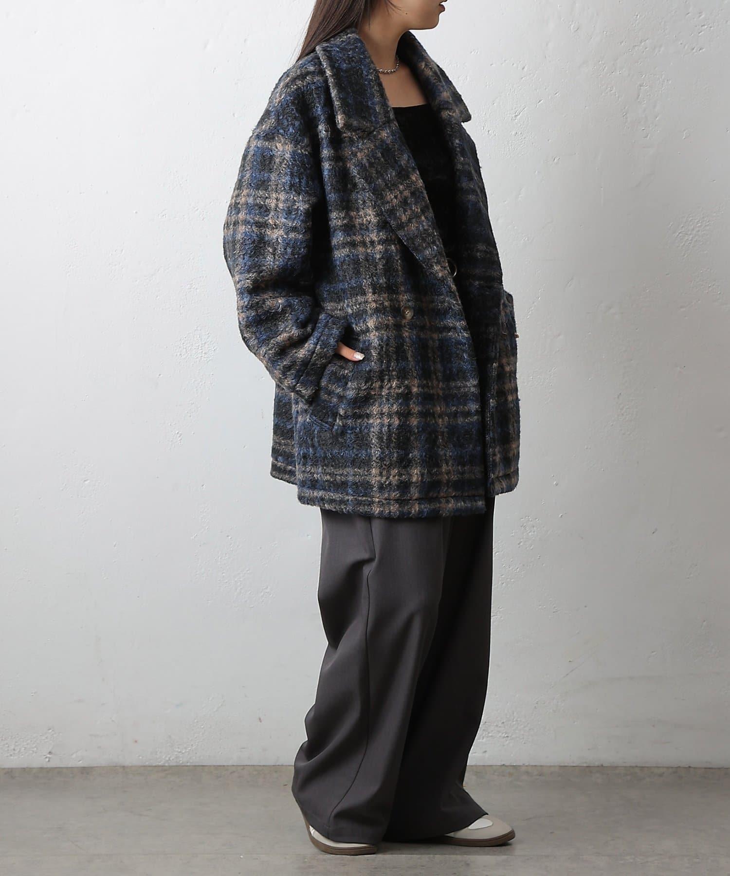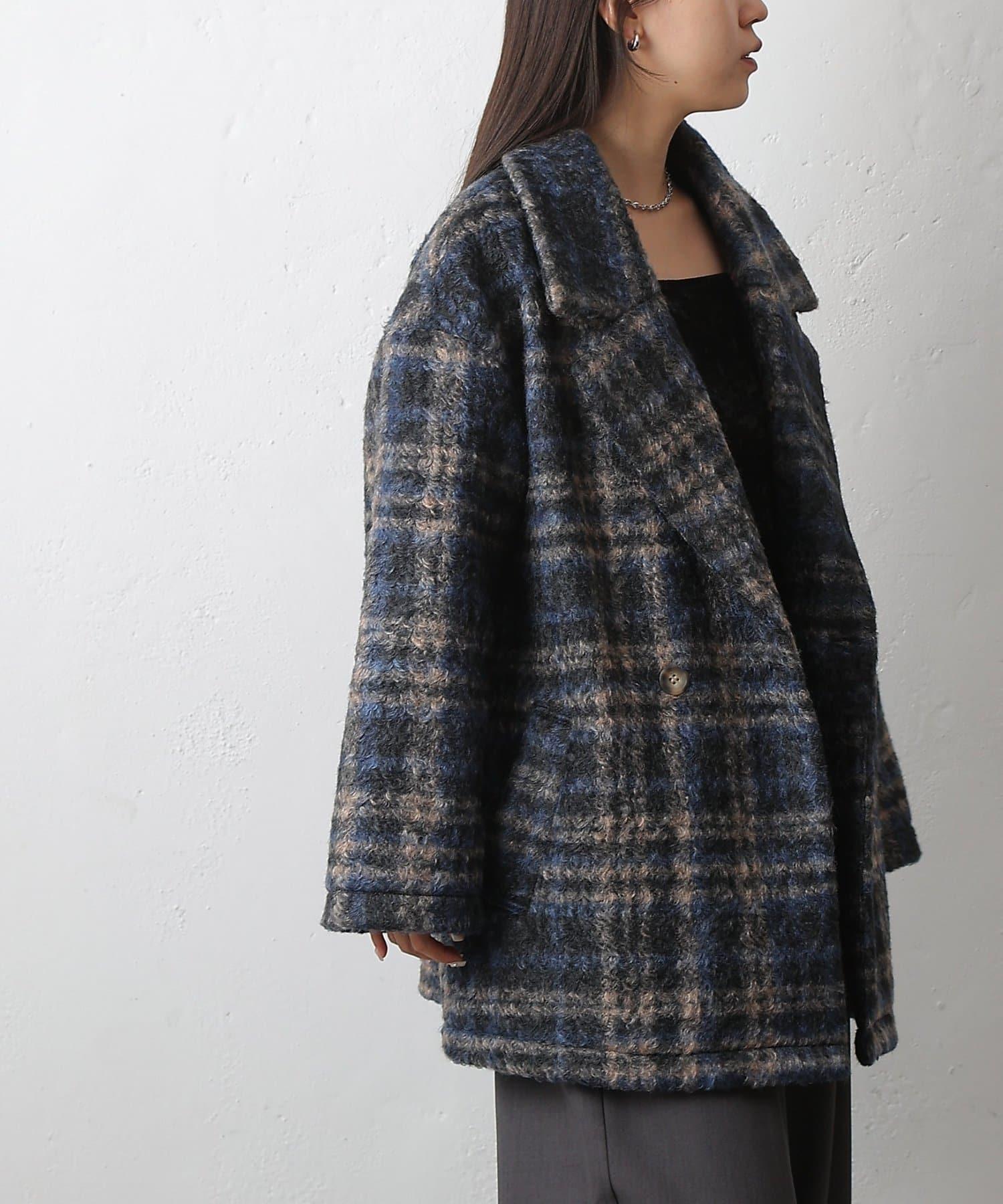 這款長款夾克外套採用經典的棋盤格圖案和整潔的雙剪裁設計。