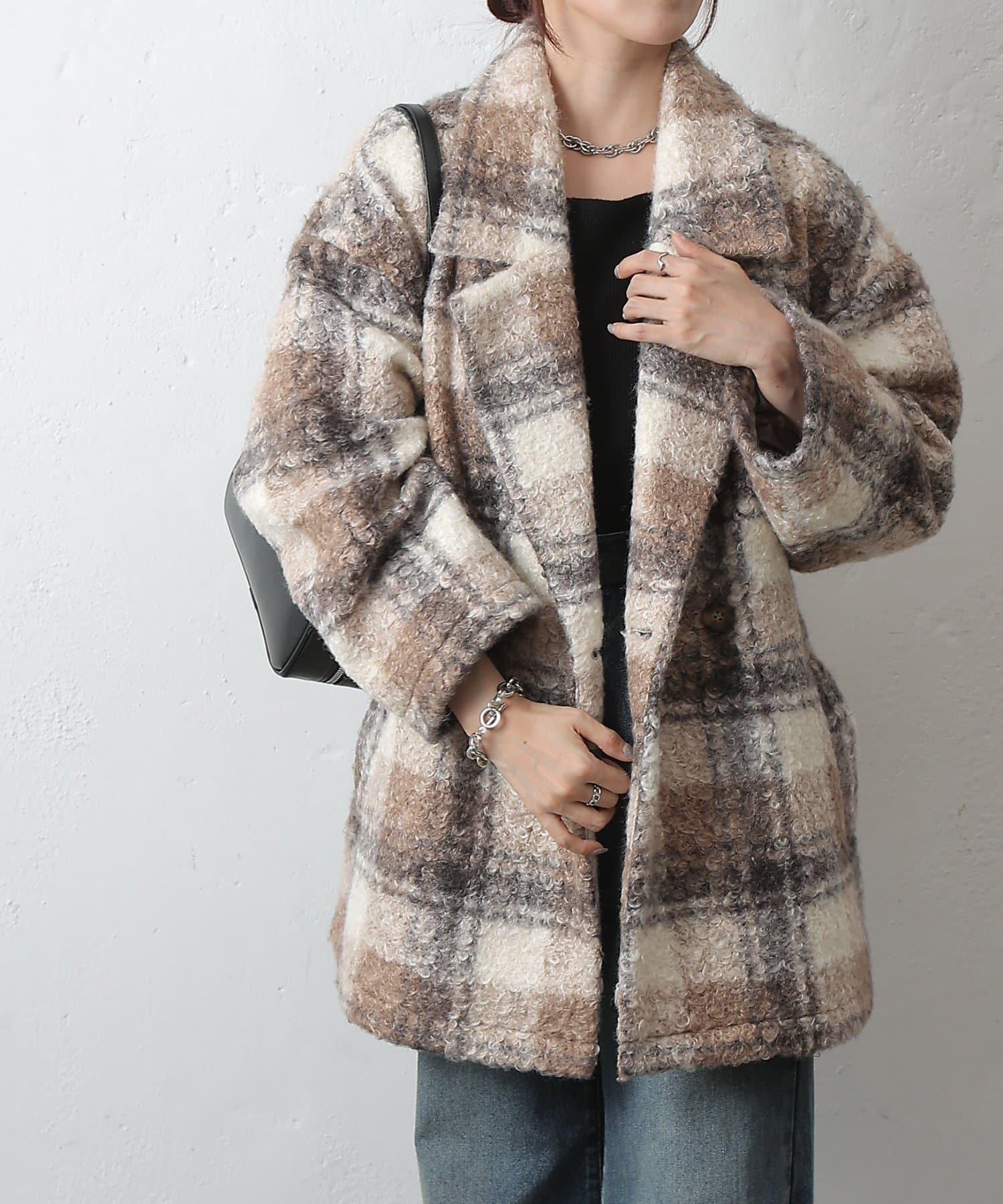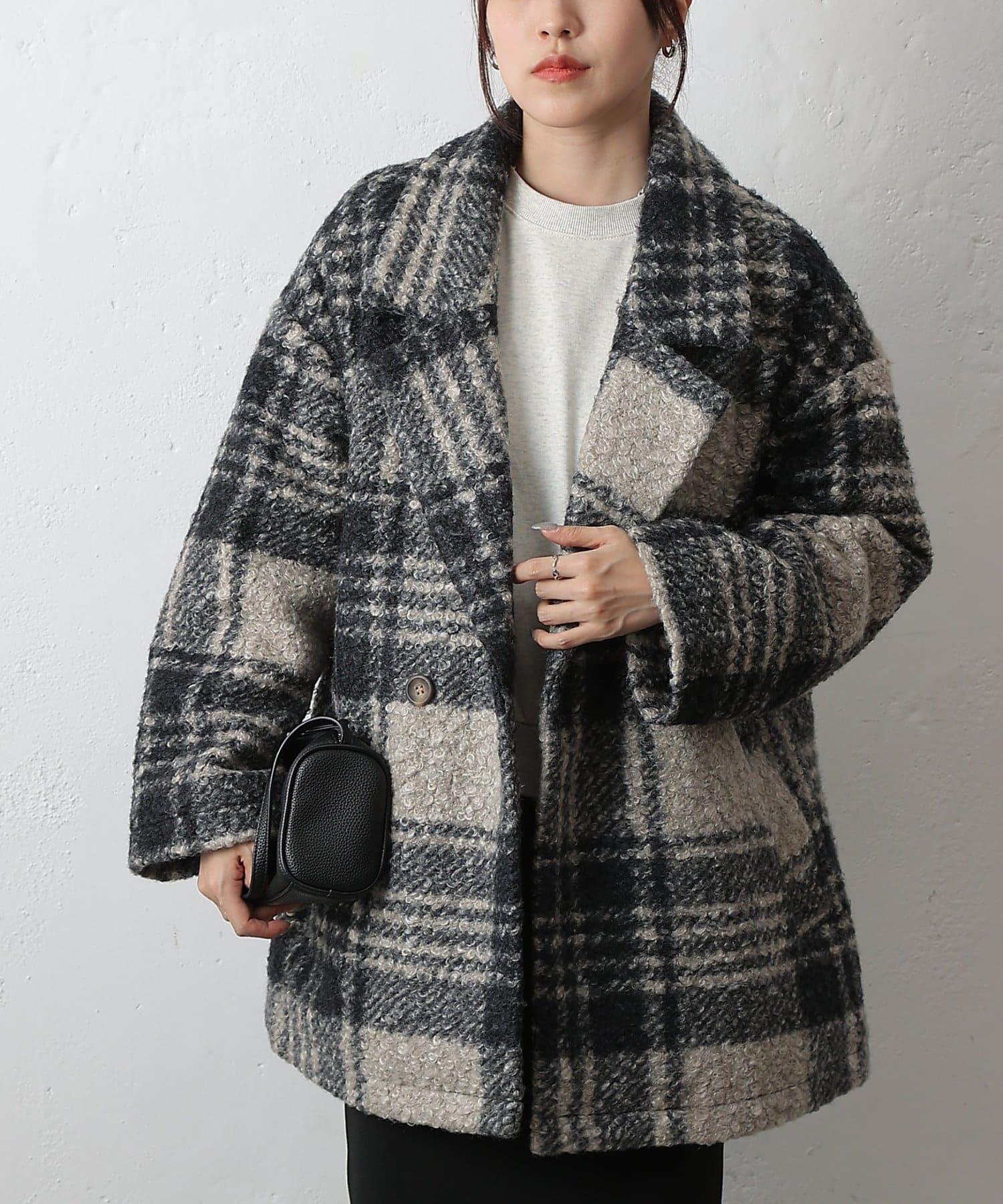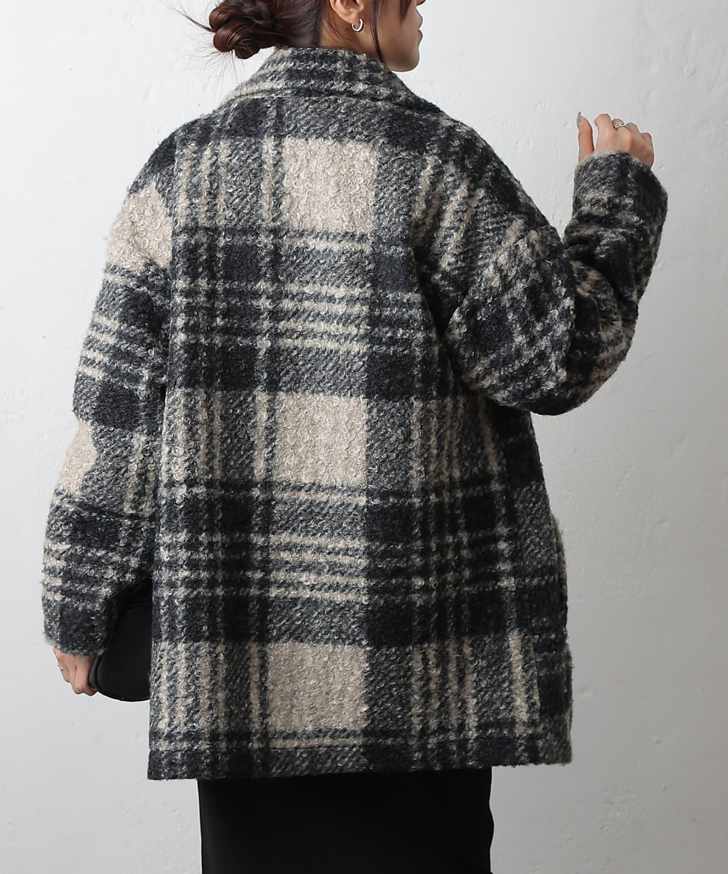 經典棋盤格圖案夾克外套,盡顯優雅氣質。