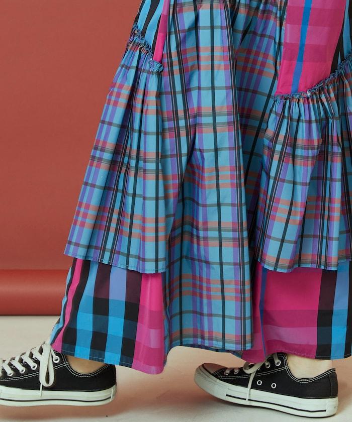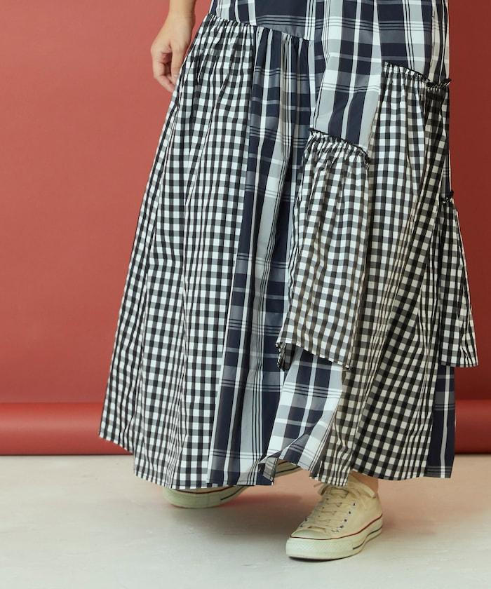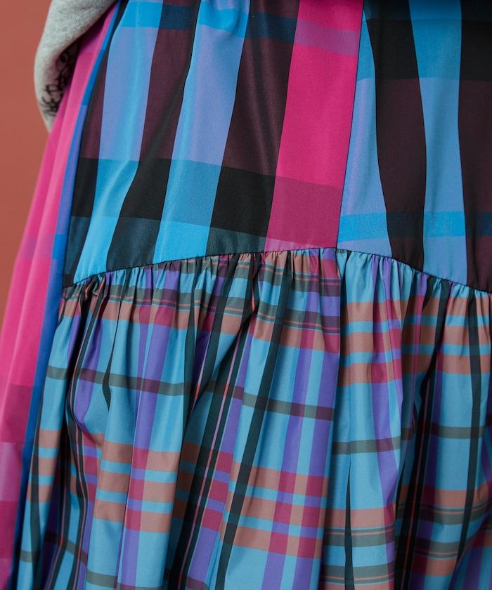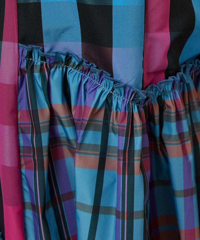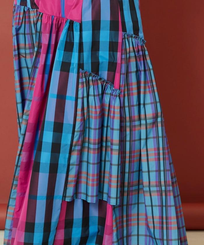 這款裙裝採用了獨特的拼接色彩和圖案,打造出一款甜美又不失俏皮的裙裝。