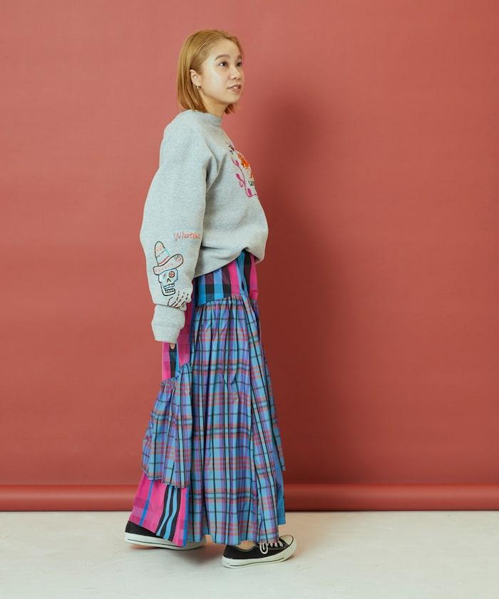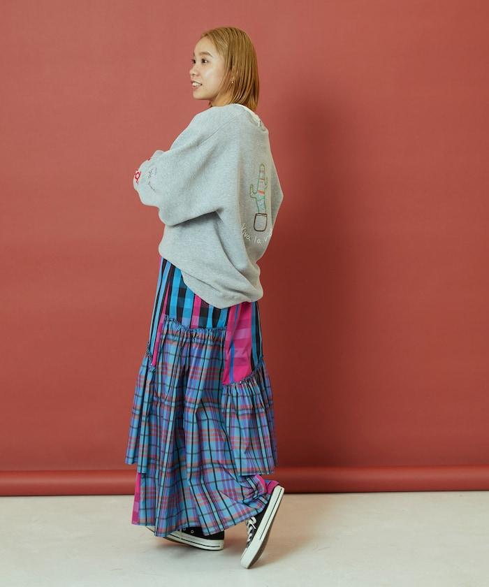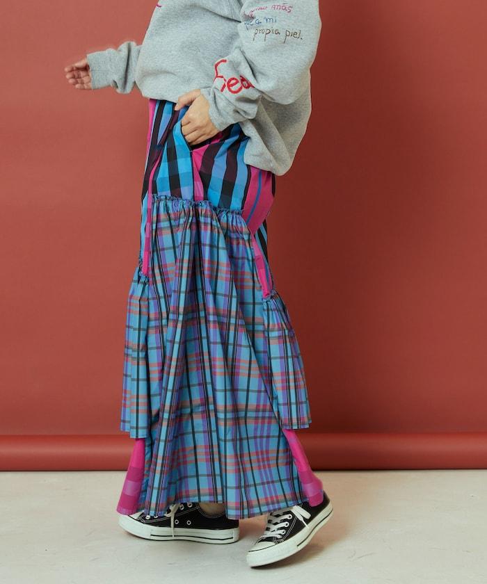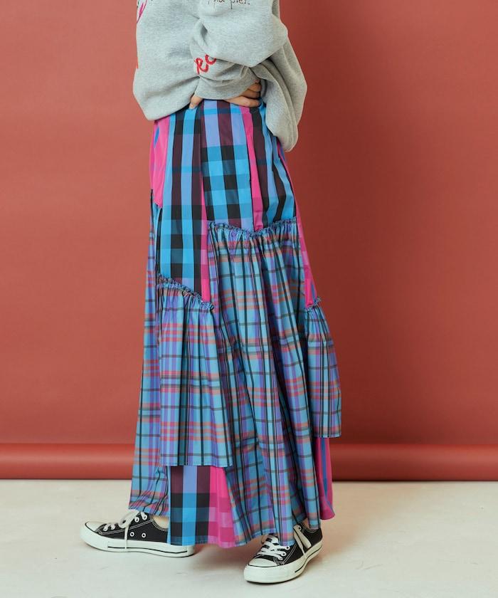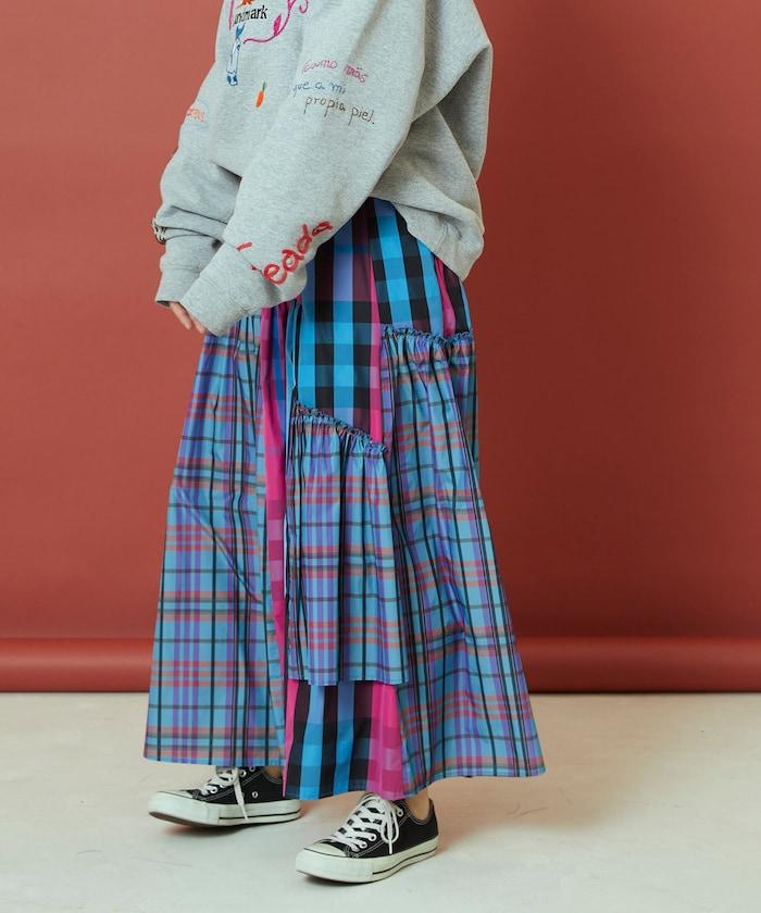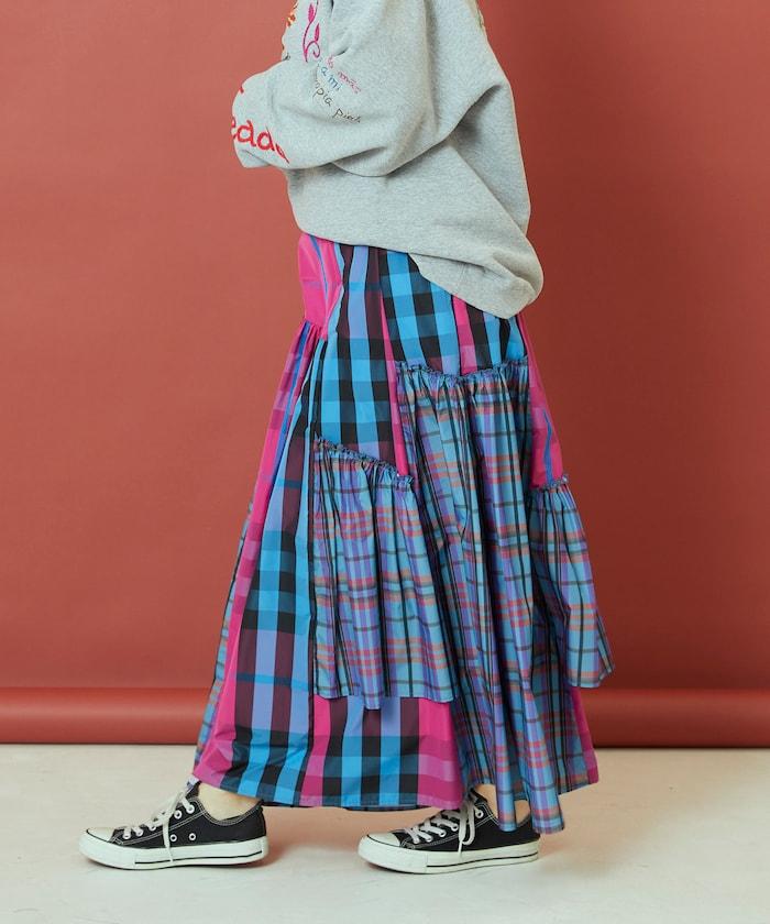 這款裙裝採用了獨特的拼接色彩和圖案,打造出一款甜美又不失俏皮的裙裝。