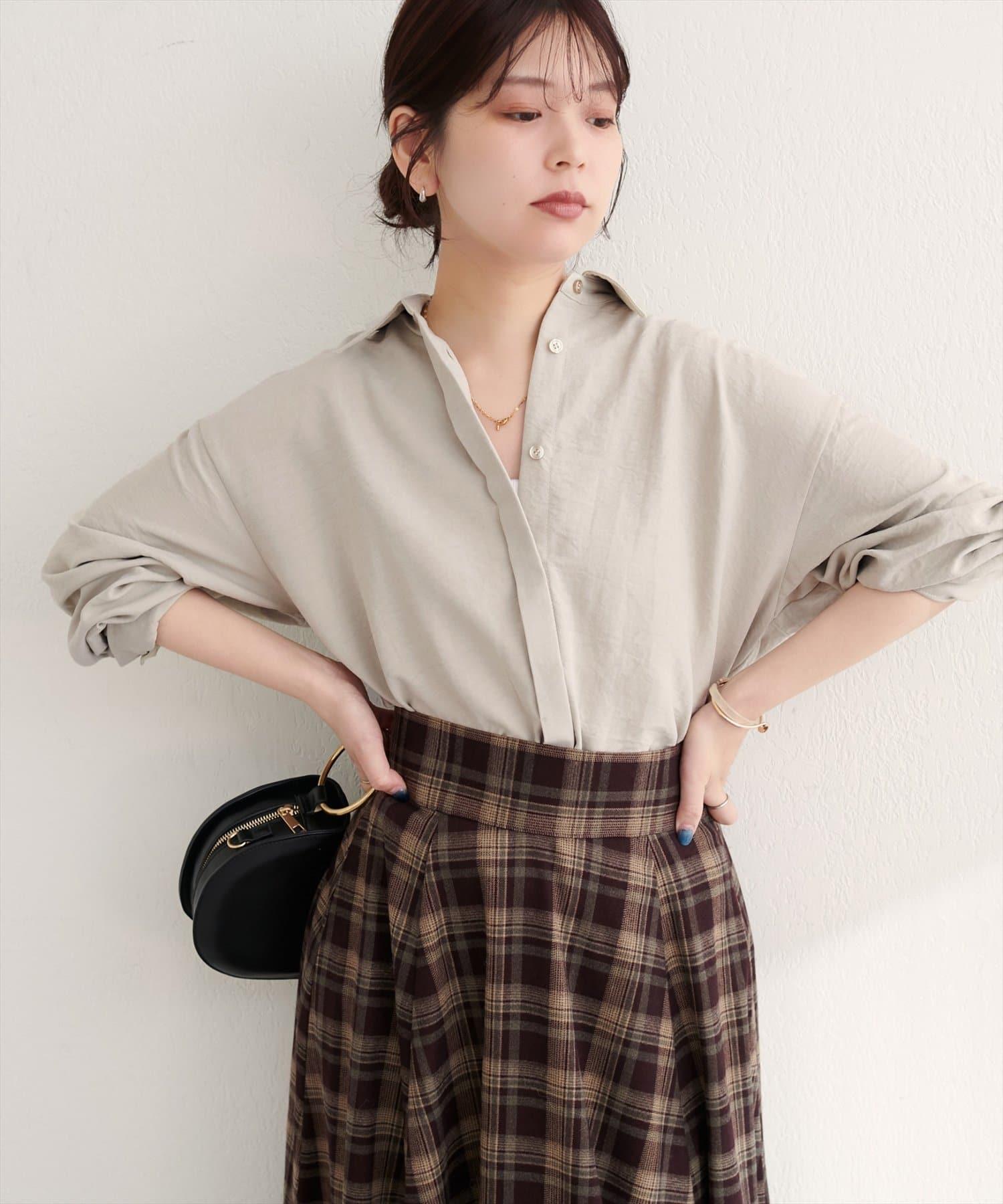 由於它是一件簡單的襯衫,因此可以與項鍊和圍巾等配飾搭配,打造出更高級的協調造型。