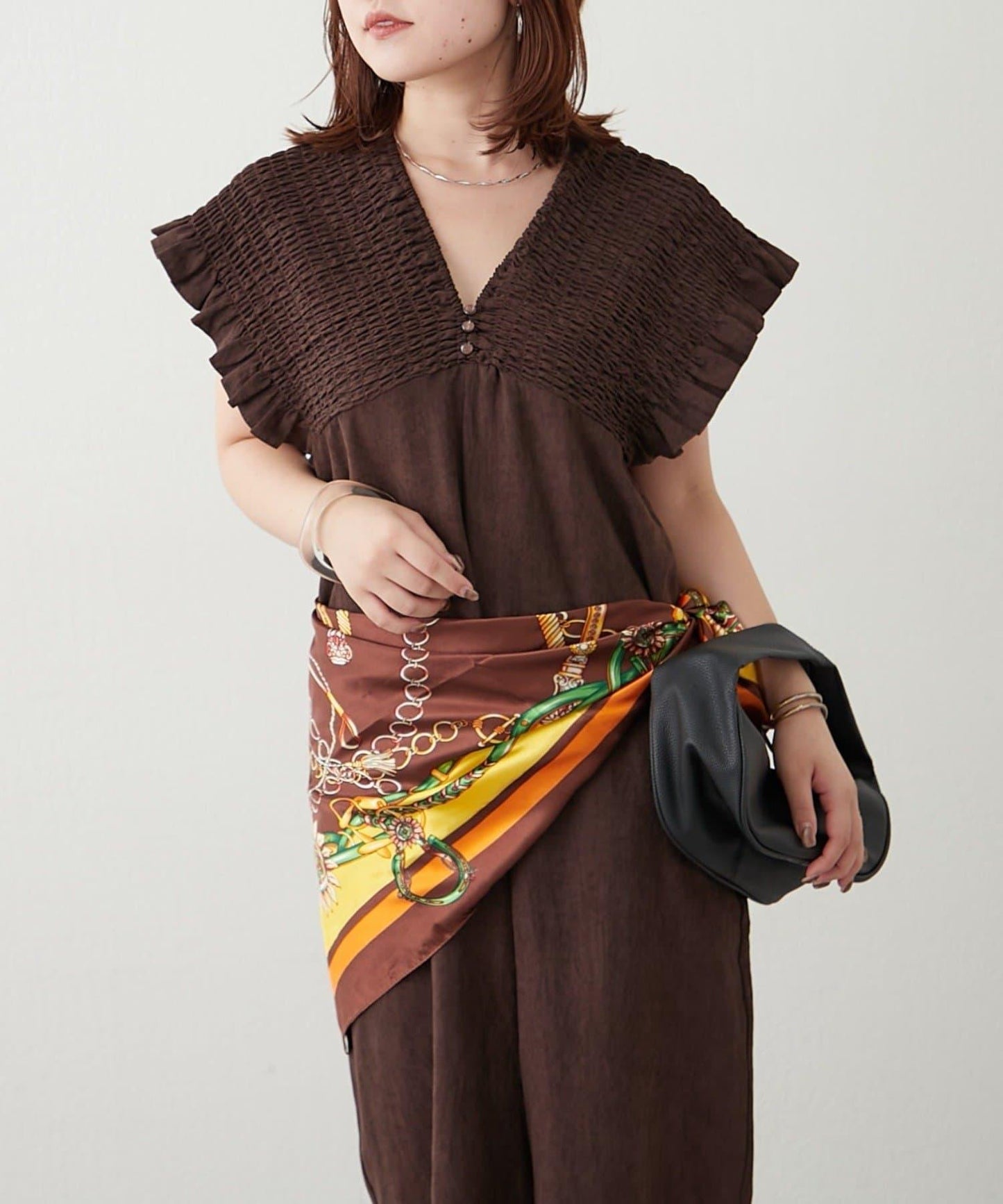 肩帶可以放下,打造露肩造型。