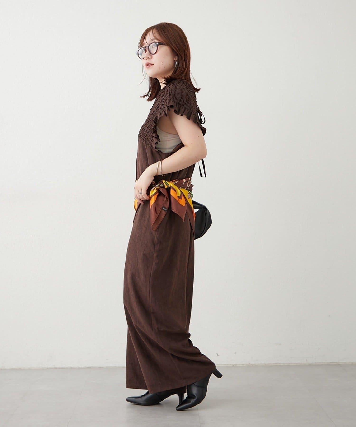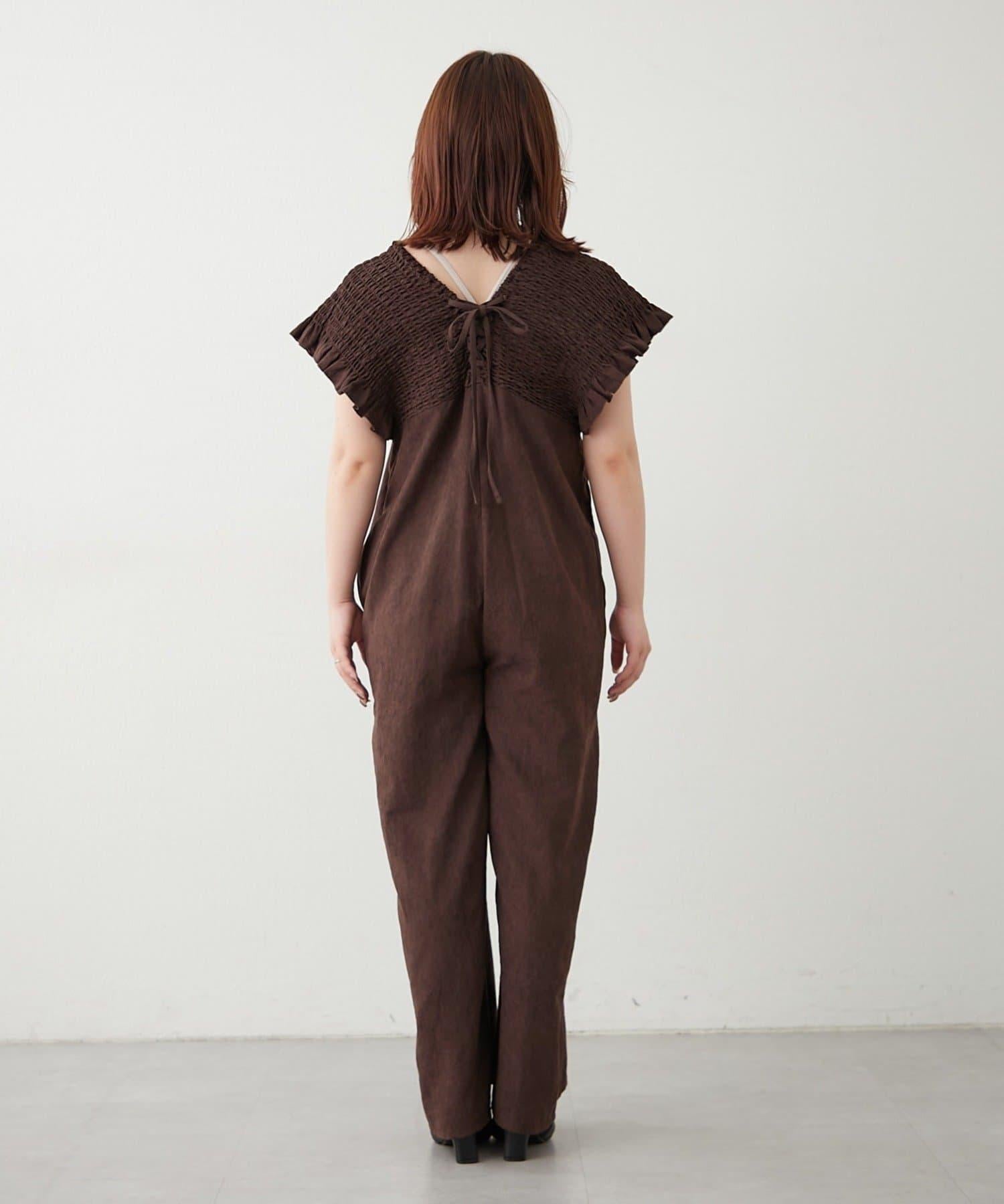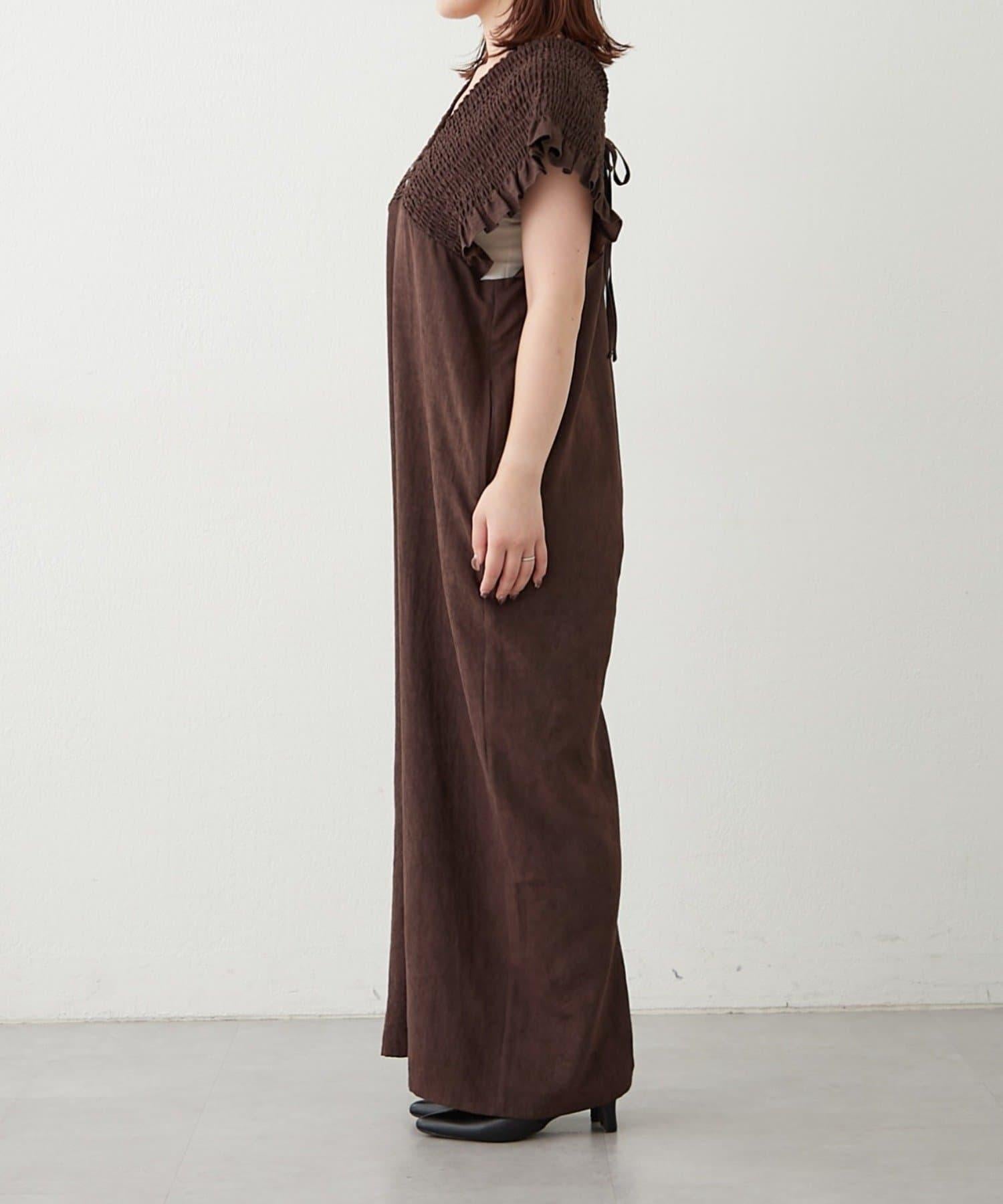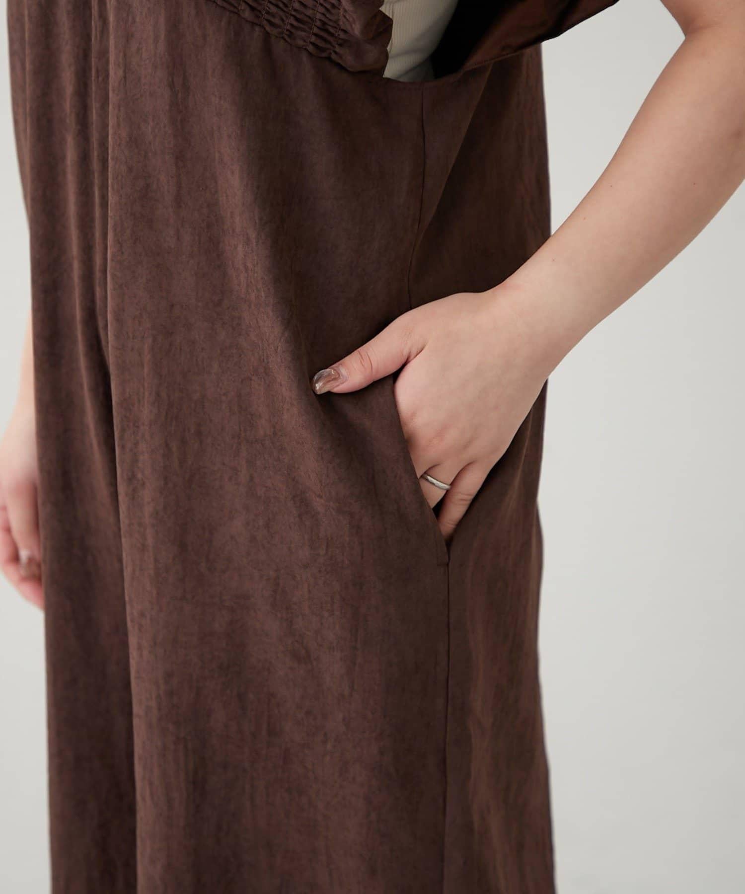 桃色磨毛褶皺揹帶褲