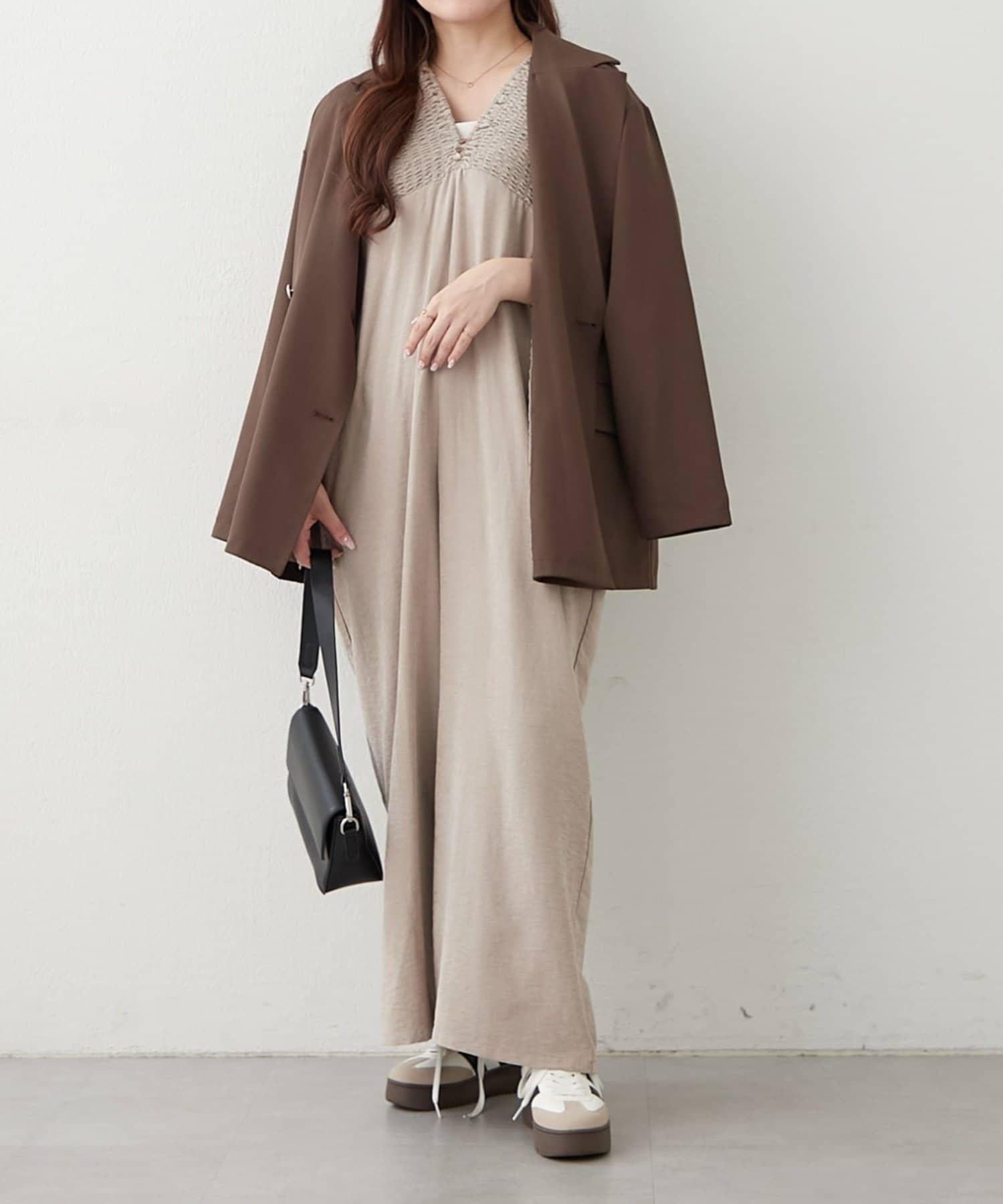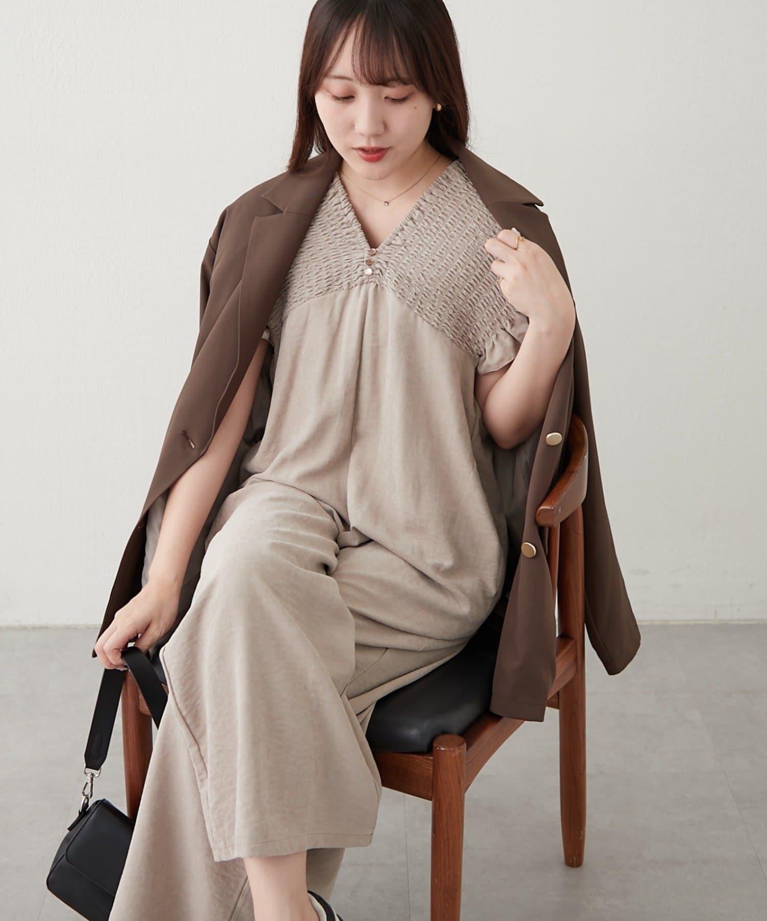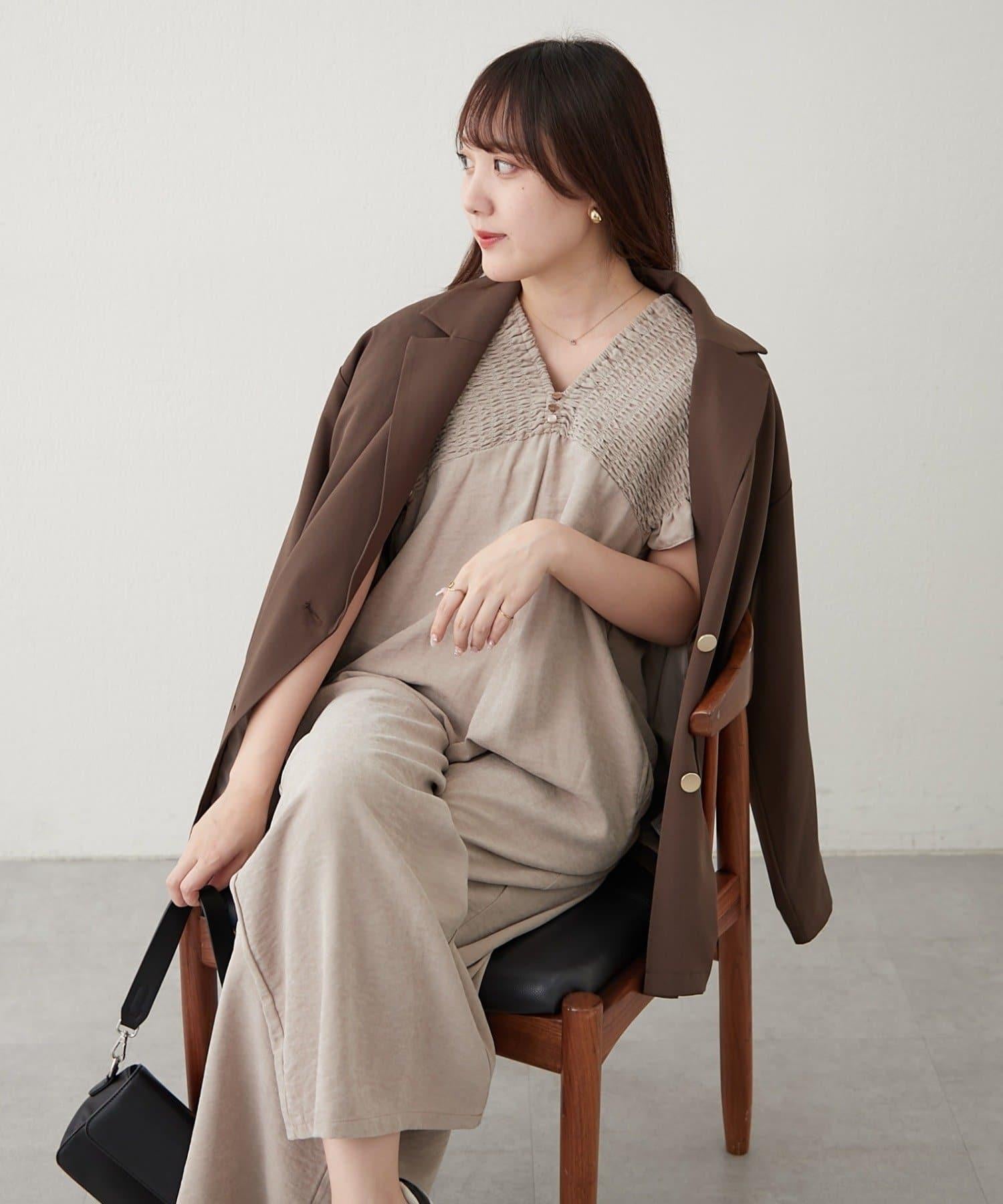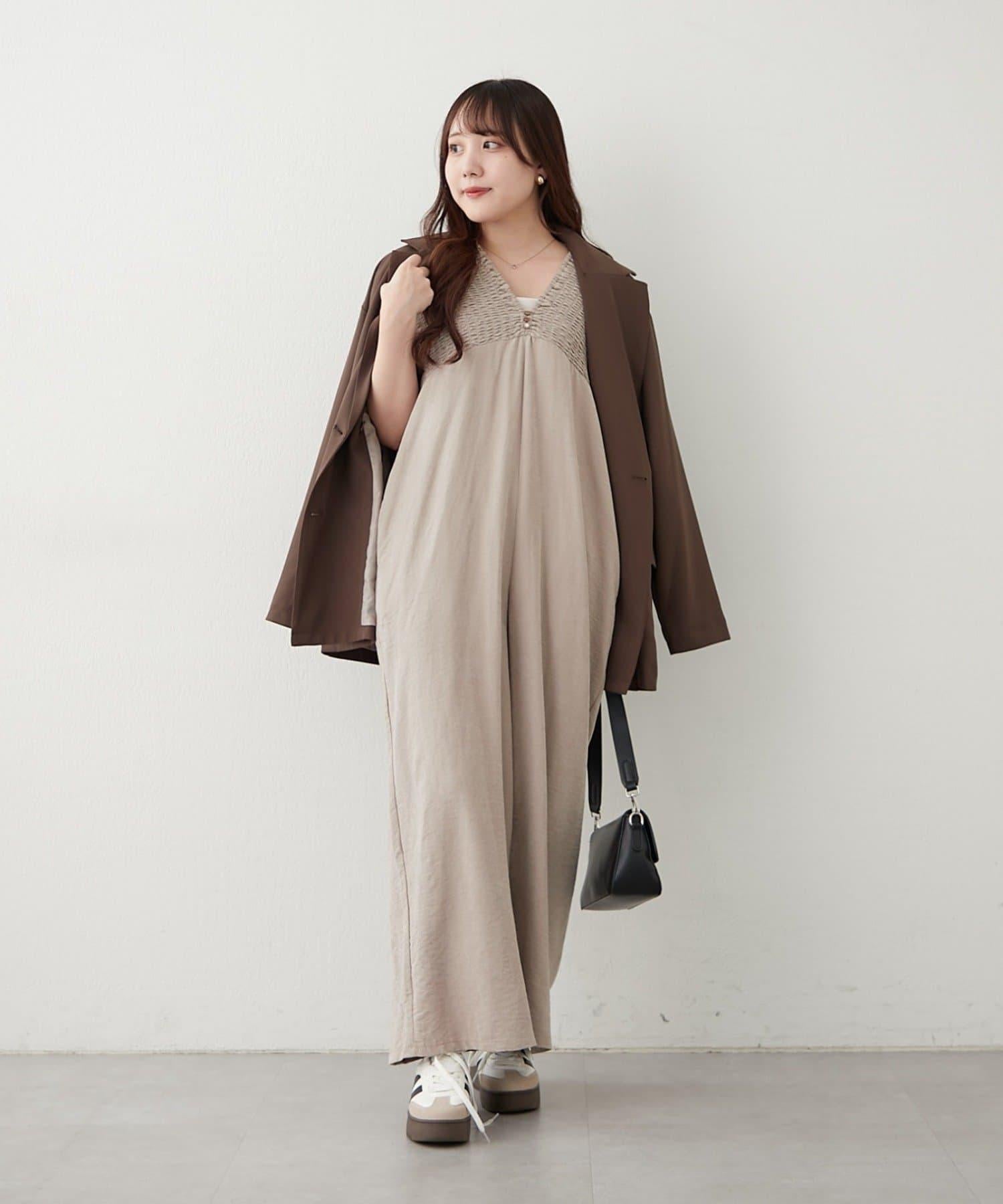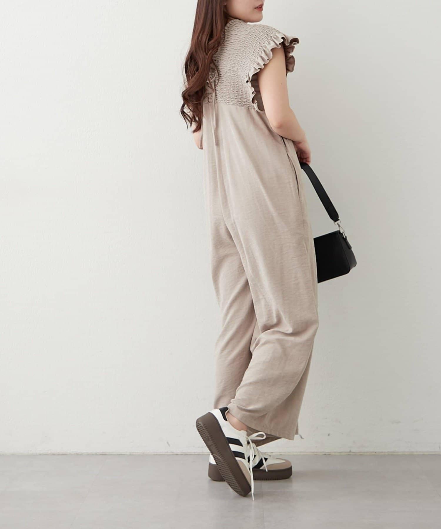 桃色磨毛褶皺揹帶褲