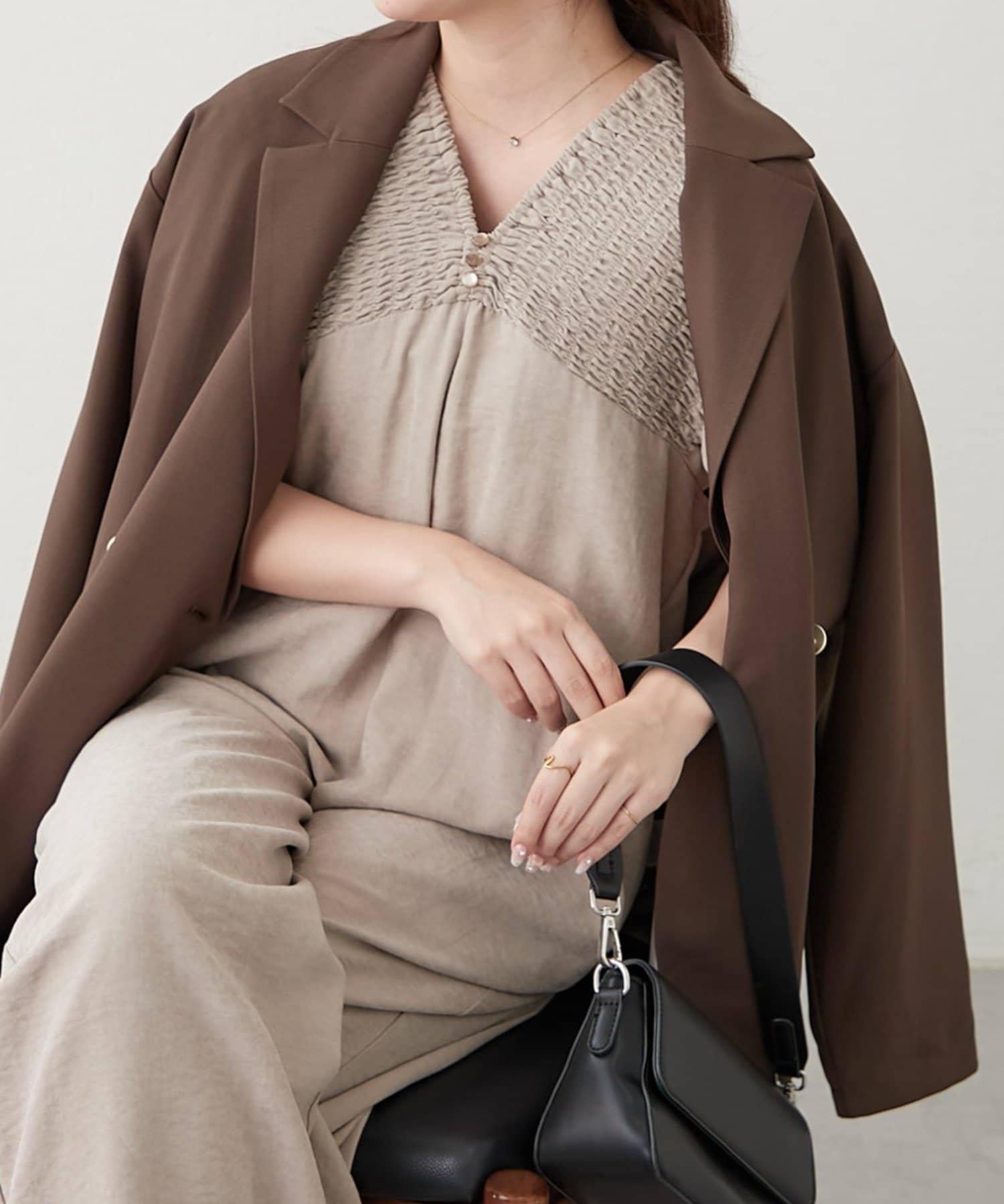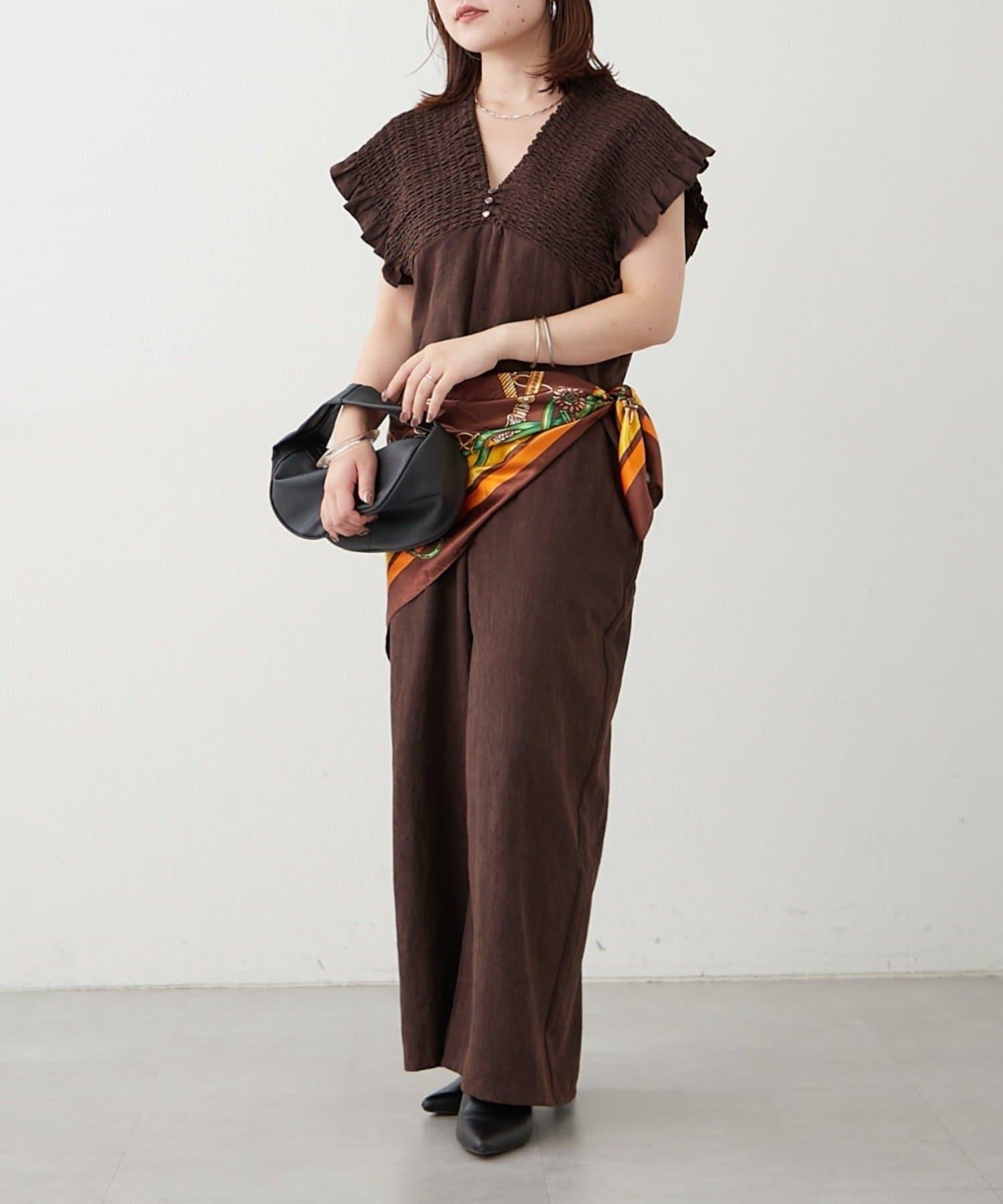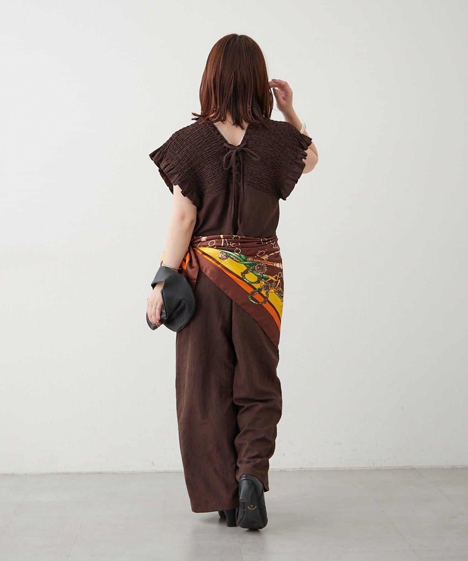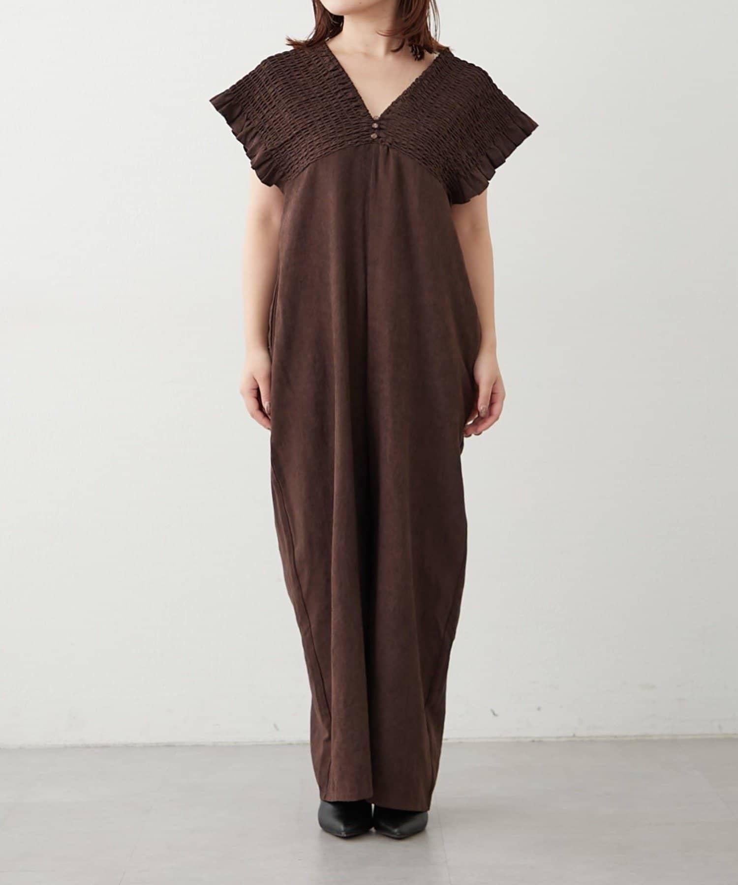 桃色磨毛褶皺揹帶褲