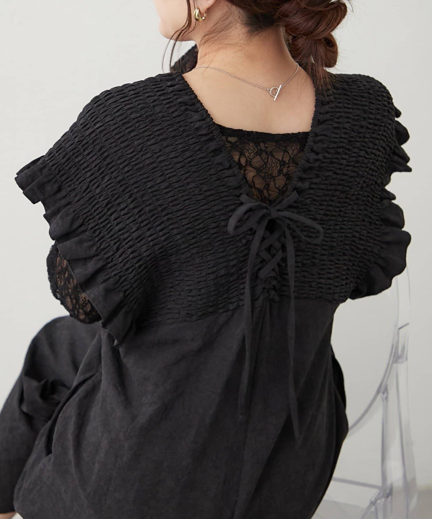 背部的繫帶設計讓後背款式更顯嫵媚。