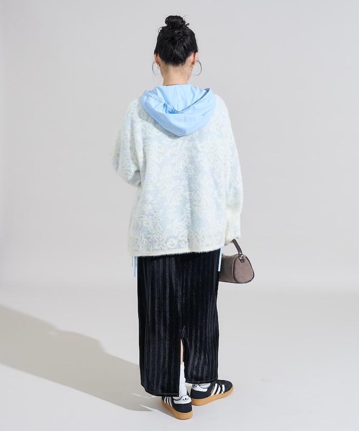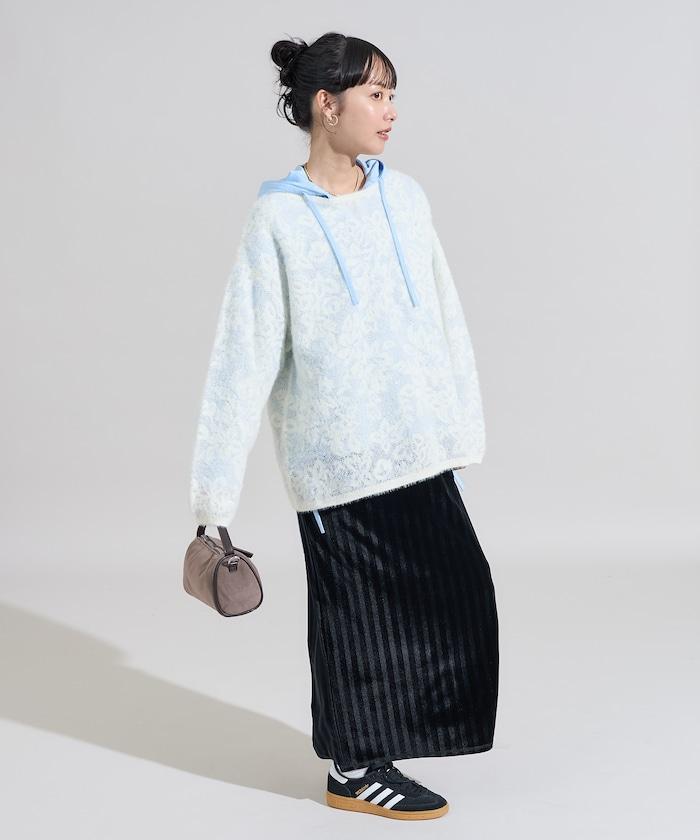 同色系的條紋圖案以絲絨面料表現。每當您移動時,圖案都會微妙地顯現出來,給人一種細緻入微的感覺。